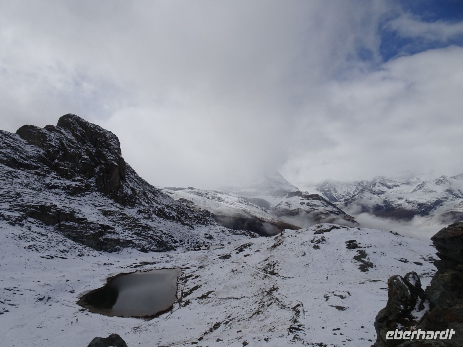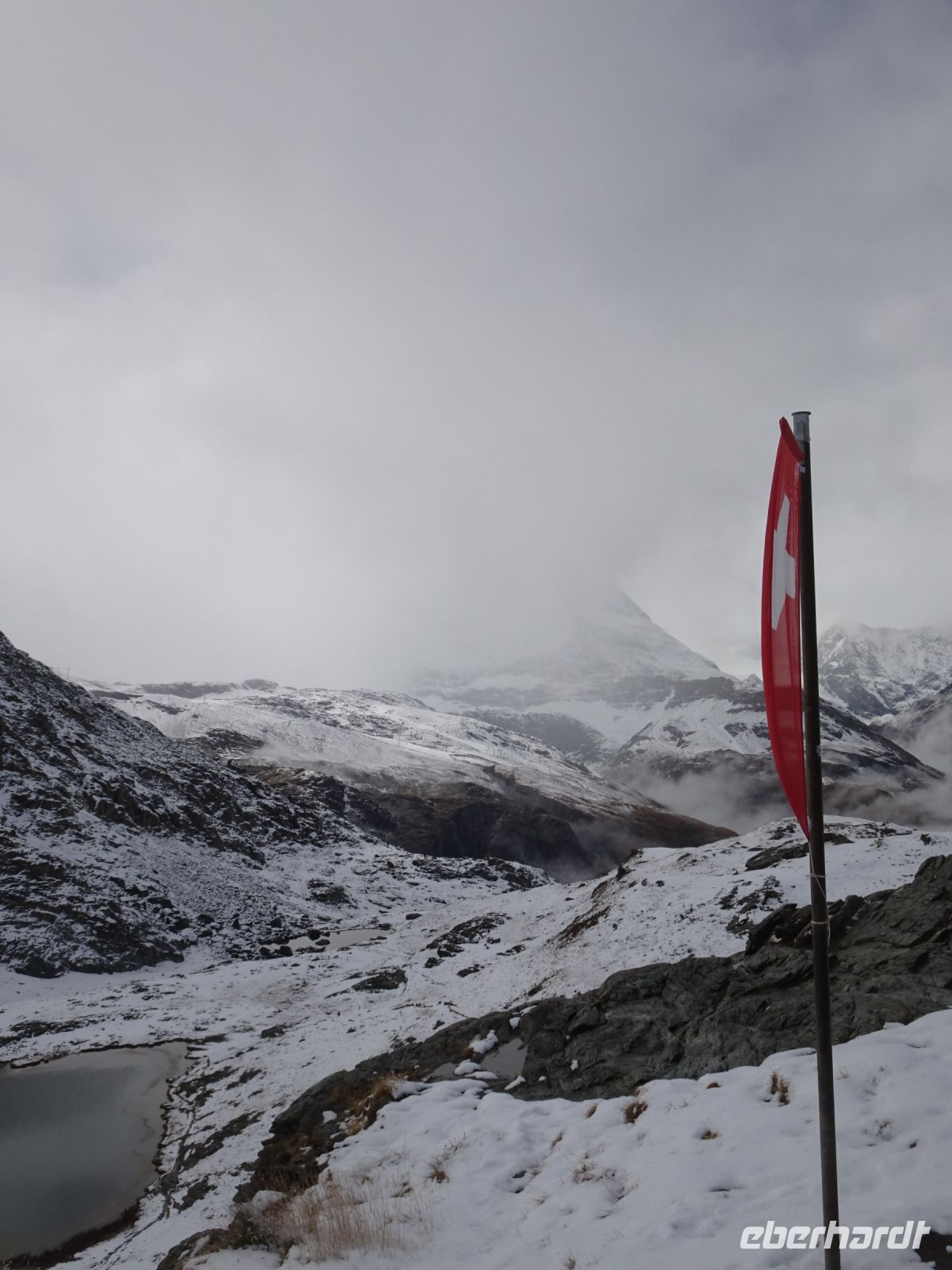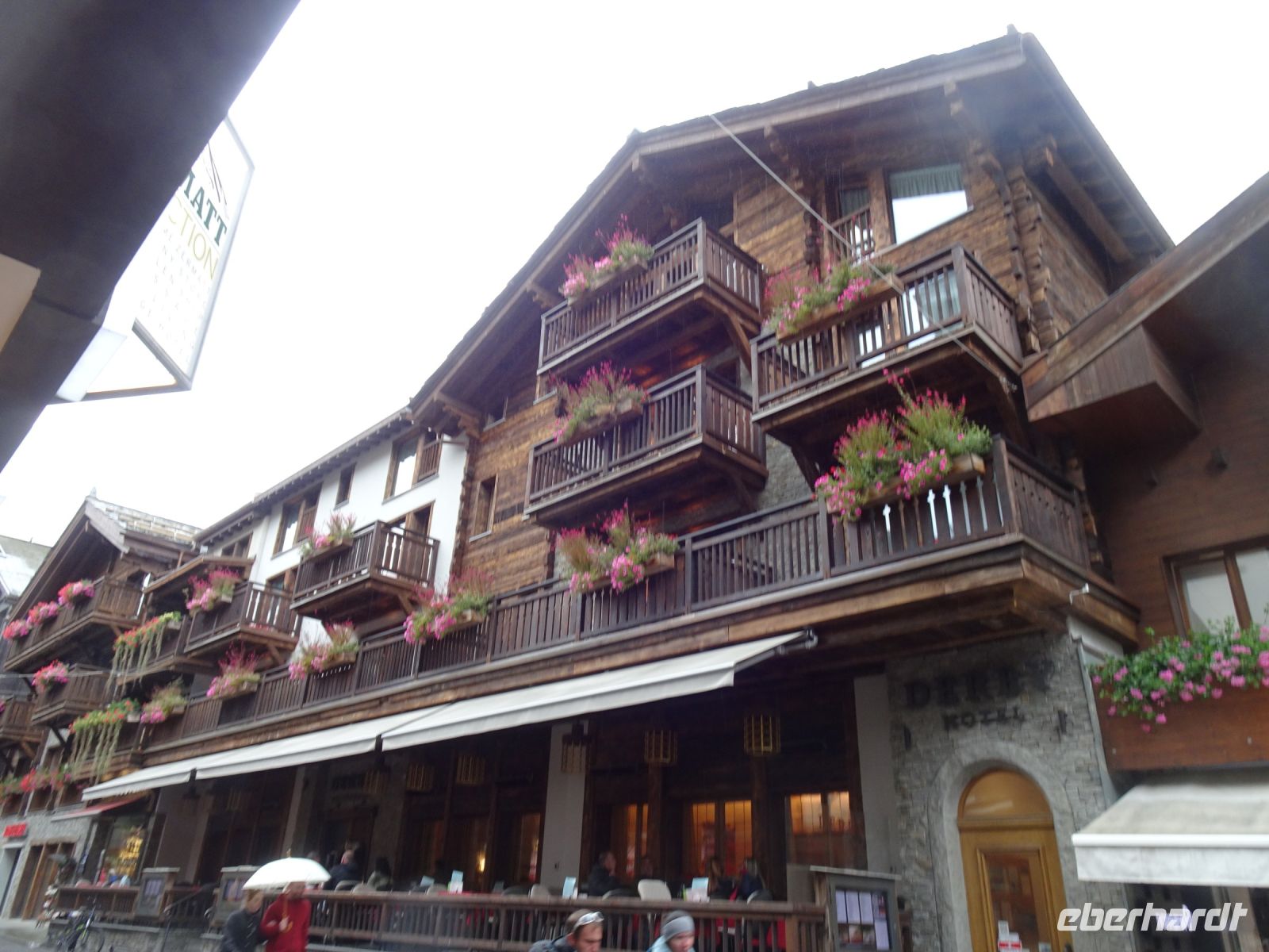 Im autofreien Zermatt erwartete uns eine kurze Wolkenlücke - wir hatten nur einen einzigen Blick auf das Matterhorn.