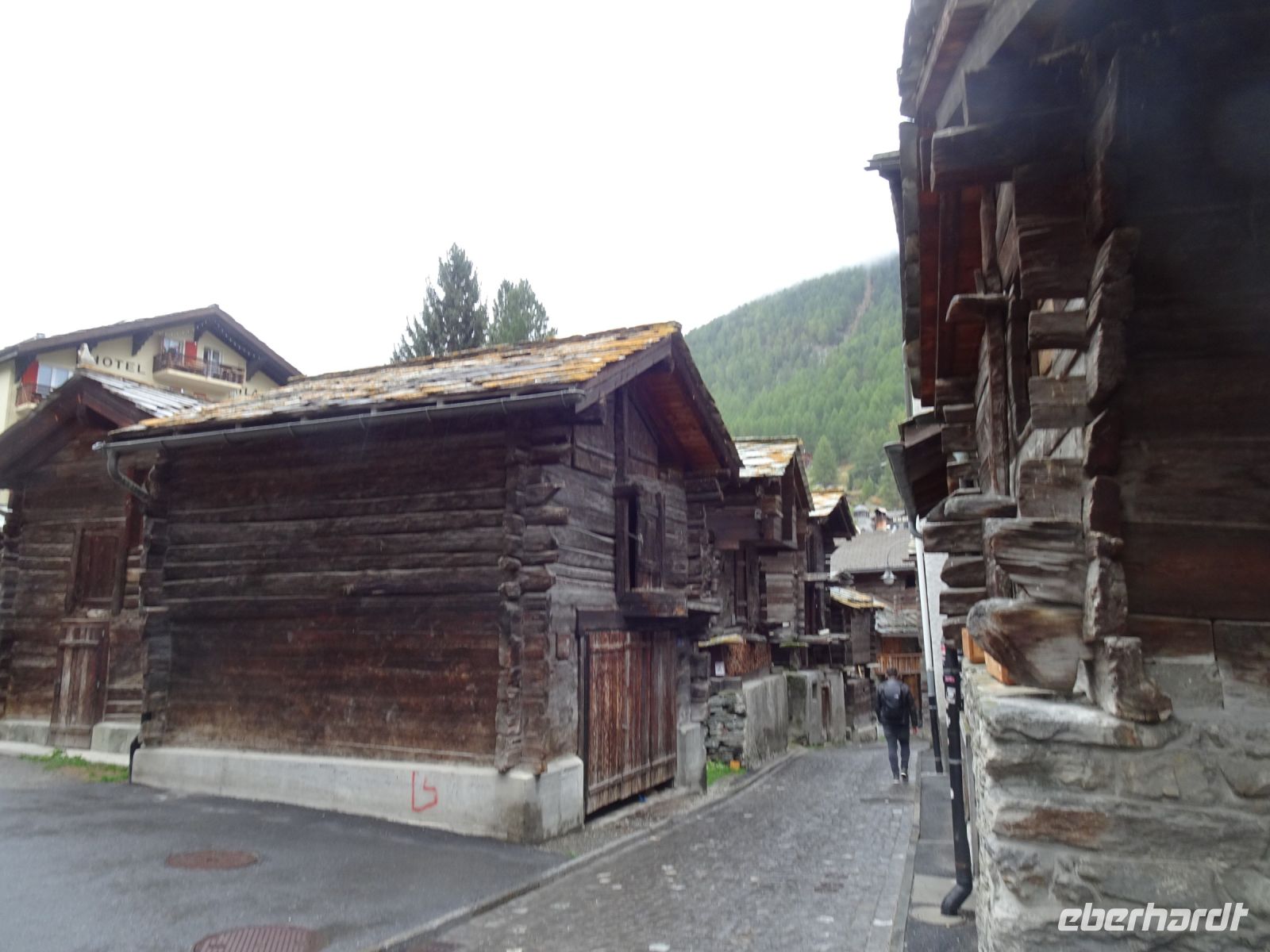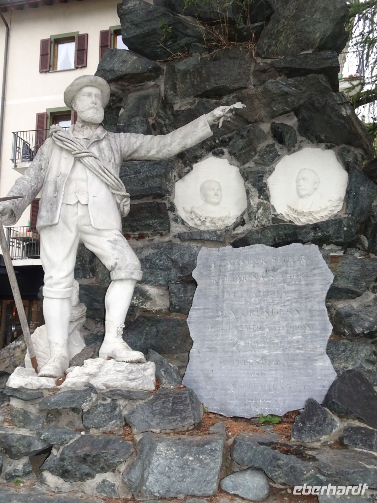 Auf der von unserem Reiseleiter angebotenen Ortsführung durch Zermatt konzentrierten wir uns vor allem auf das altehrwürdige Zermatt: Speicherdorf, größter Speicher, Plaketten für die Erstbesteiger um Edward Whymper. Und natürlich: Bersteiger- und Bergführerfriedhof. Der Murmeltierbrunnen lädt wieder zum Streicheln der possierlichen Tiere ein. Auch ich habe es mir nicht verkneifen können, eines der Tiere wieder zu streicheln. Es heißt, dann kommt man auch wieder.... Bei mir hat das bisher immer geklappt!