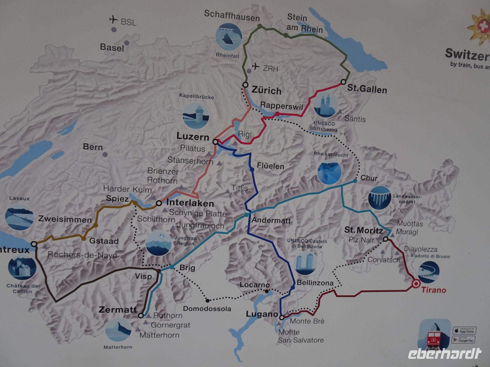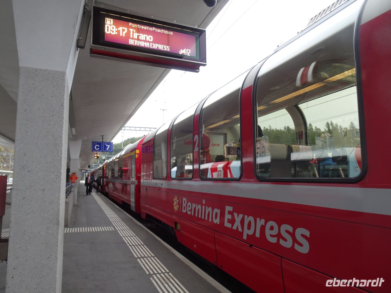 Leider war die Zeit zwischen abendlicher Ankunft und der am nächsten Tag vogesehenen Fahrt mit dem Bernina Express nach Tirano für ein näheres Kennenlernen von St. Moritz nicht ausreichend. Aber es gibt ja bei Eberhardt TRAVEL auch noch viele Schweizreisen, bei denen dies nachgeholt werden kann...