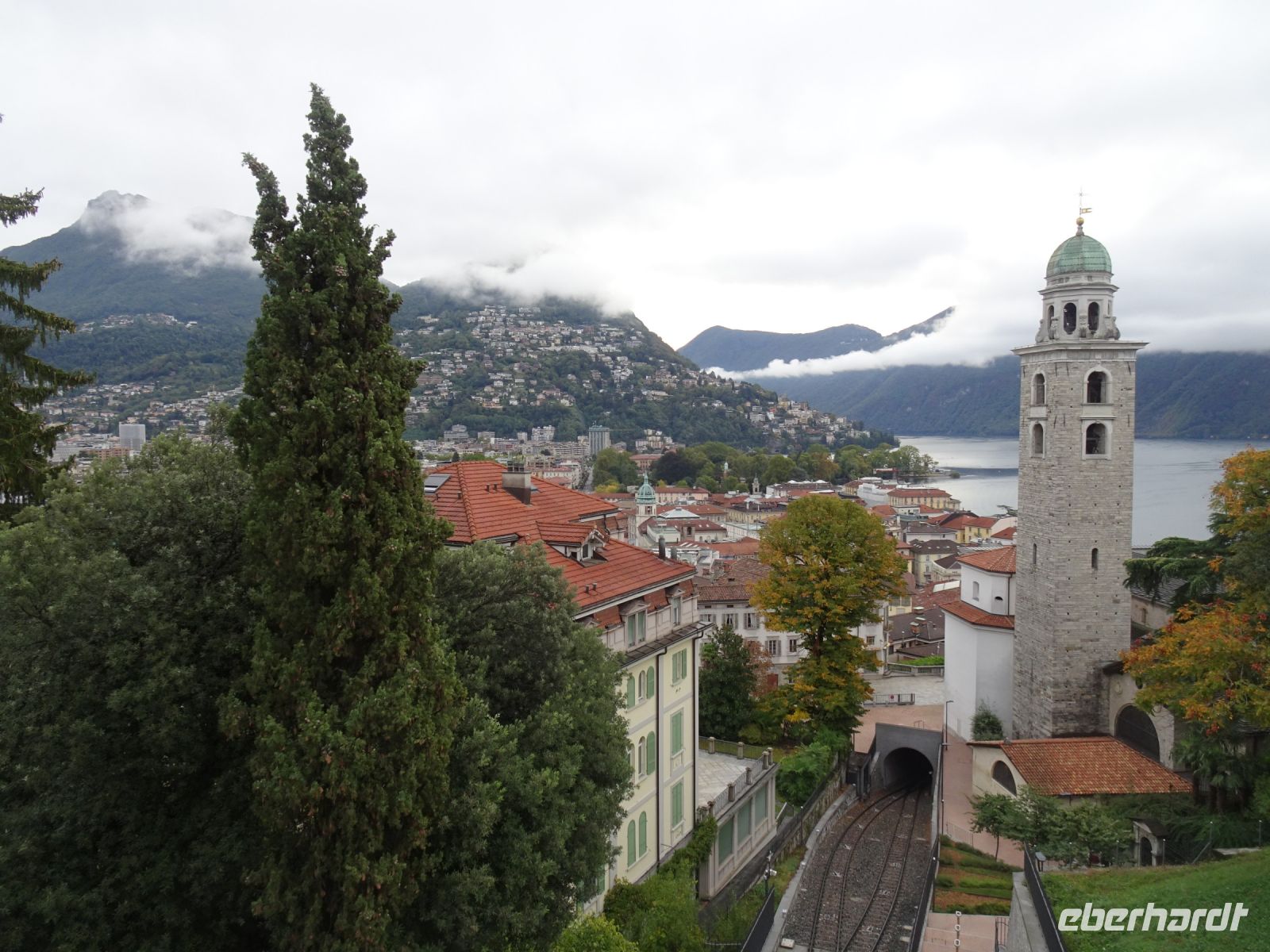 Aber wir wollten ja wieder zurück in die Schweiz, konkret nach Lugano am Luganer See. Da der reguläre Expressbus zwischen Tirano und Lugano unsere Riesegruppe nicht mehr vollzählig mitnehmen konnte, stand für uns ein Extrabus bereit. Nach 2 1/2 stündiger Fahrt durch das Veltlin und die kurvenreichen italienischen Straßen, entlang auch am Nordufer der Comer und Luganersees, lernten wir unsere bequemen Zugreisen in der zweiten und im Gotthardt Panorama Express auch ersten Klasse, umsomehr schätzen.