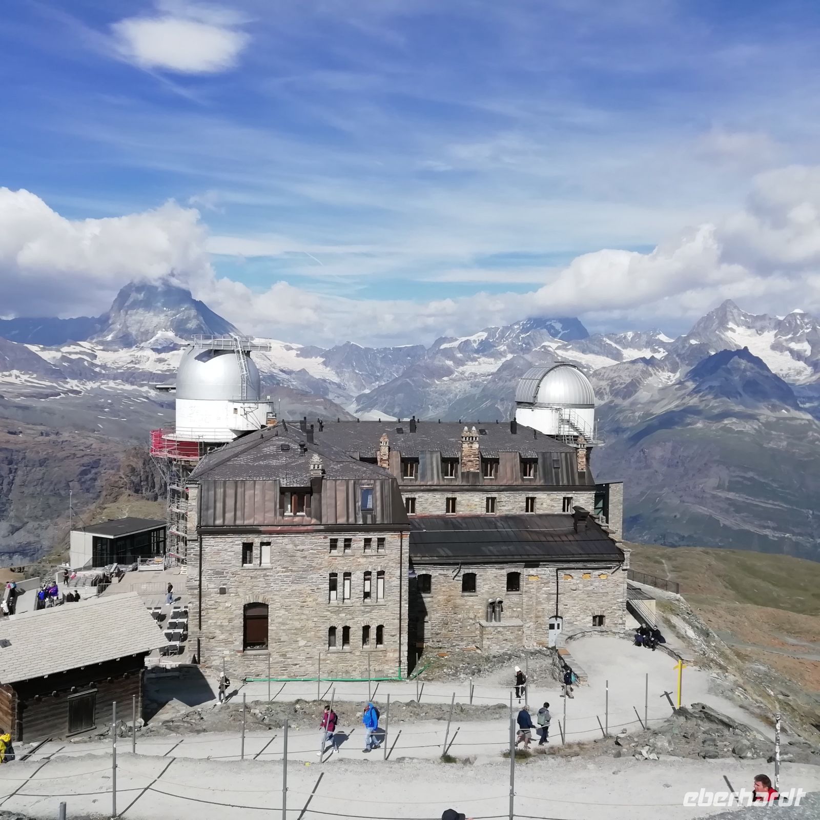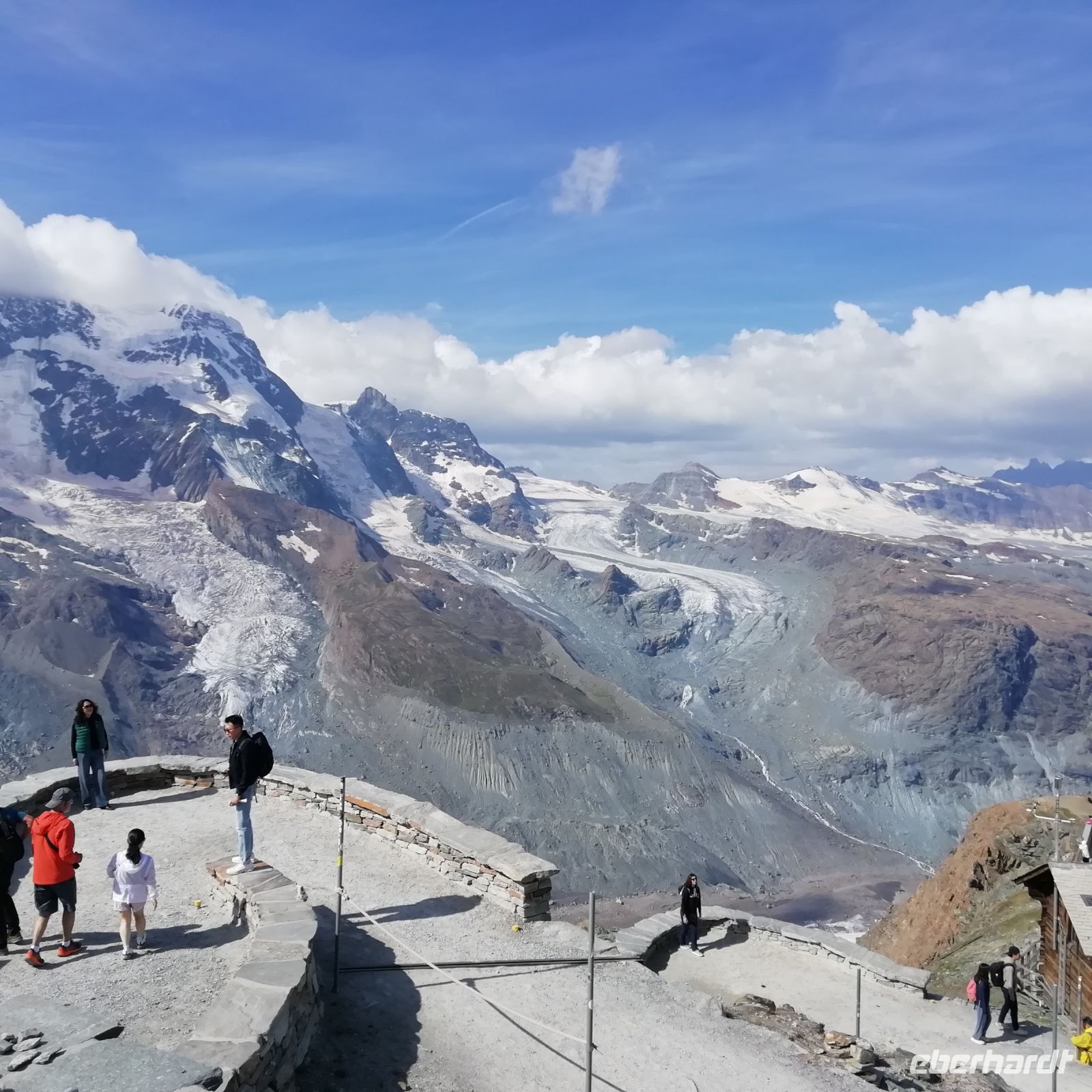 Der heutige Tag steht zur freien Verfügung, und alle von uns entscheiden sich für die spektakuläre Fahrt mit der höchsten im Freien angelegten Zahnradbahn Europas auf den Gipfel des Gornergrats. Diese bringt uns vom Bahnhof Zermatt in einer guten halben Stunde auf die höchstgelegene Bergstation Europas (3089 m). Von der sonnigen Aussichtsplattform aus genießen wir das atemberaubende Panorama, das Matterhorn scheint zum Greifen nah, der Blick auf die italienischen und französischen Bergriesen ist nicht minder beeindruckend. Zurück geht es dann wieder über eindrucksvolle Brücken, durch Galerien und Tunnel und vorbei an Kühen, die sich auf den Almwiesen von dem Zug nicht stören lassen. Einige Gäste nutzen auch das schöne Wetter am Vormittag zu einer Talwanderung.