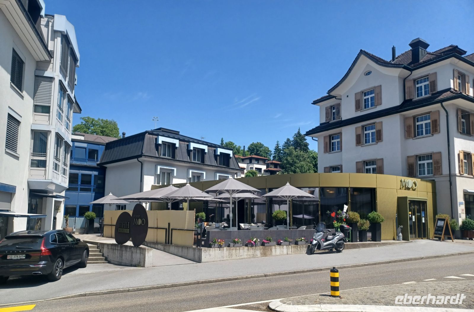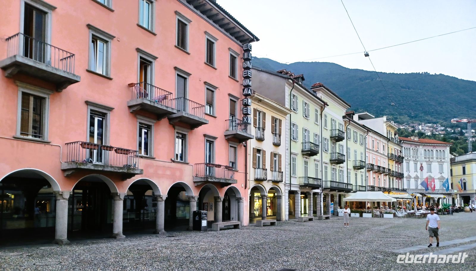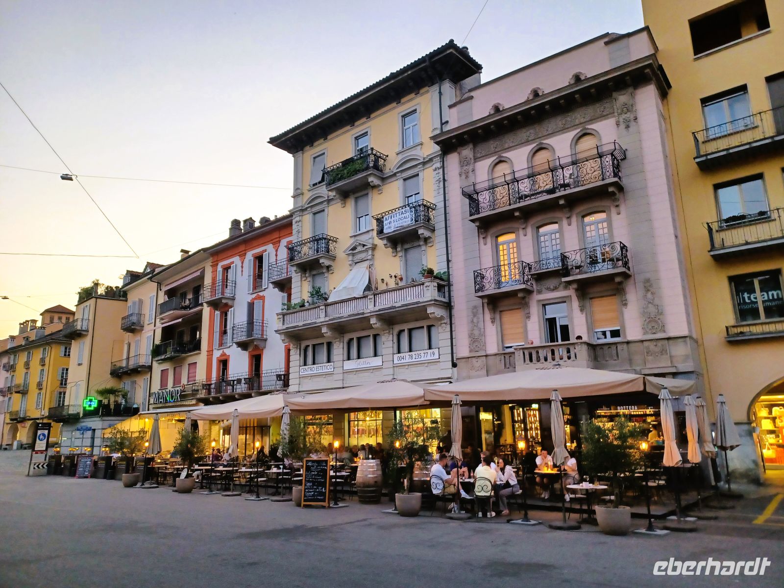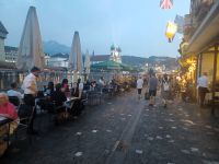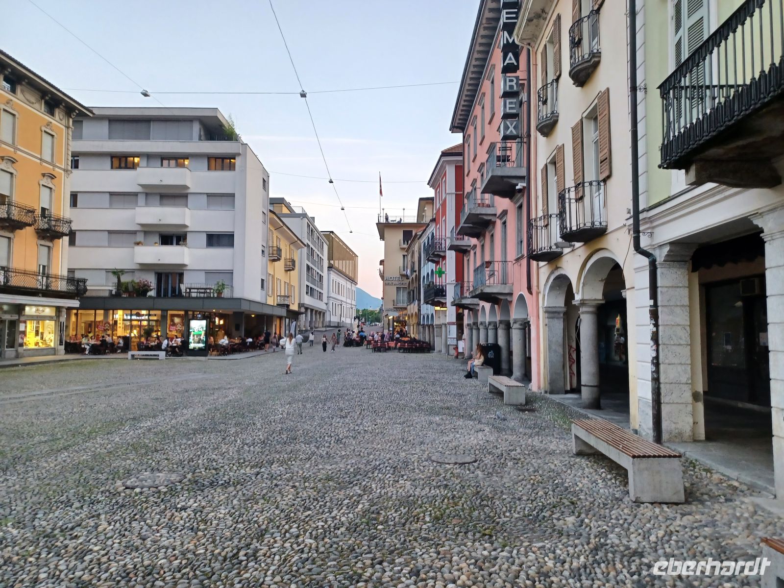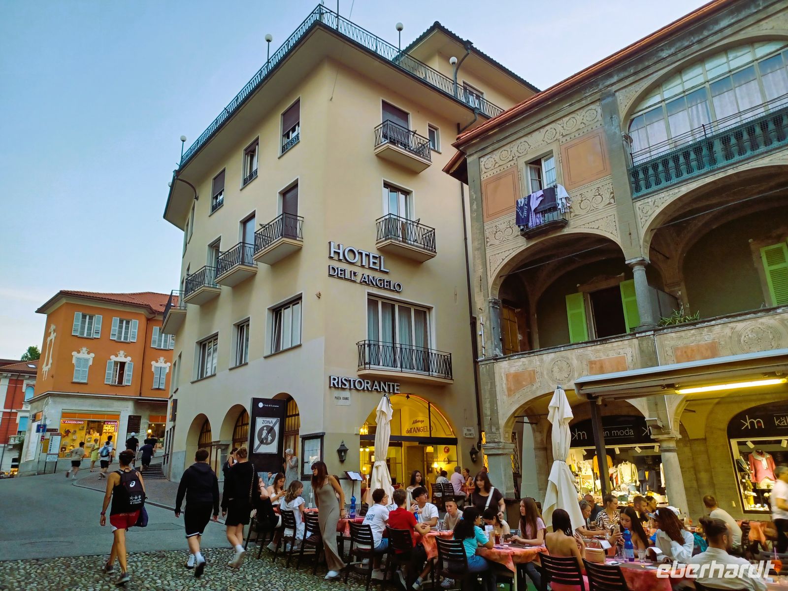 Dort angelangt sehen wir einen weiteren der oberitalienischen Seen: den Lago Maggiore. Diese Impression heben wir uns für die Zeit nach dem Abendessen auf, unser Weg führt uns in das direkte Zentrum von Locarno; hier befindet sich, inmitten zahlreicher Restaurants die ihre Stühle und Tische direkt auf den großen Platz gestellt haben, unser Hotel.