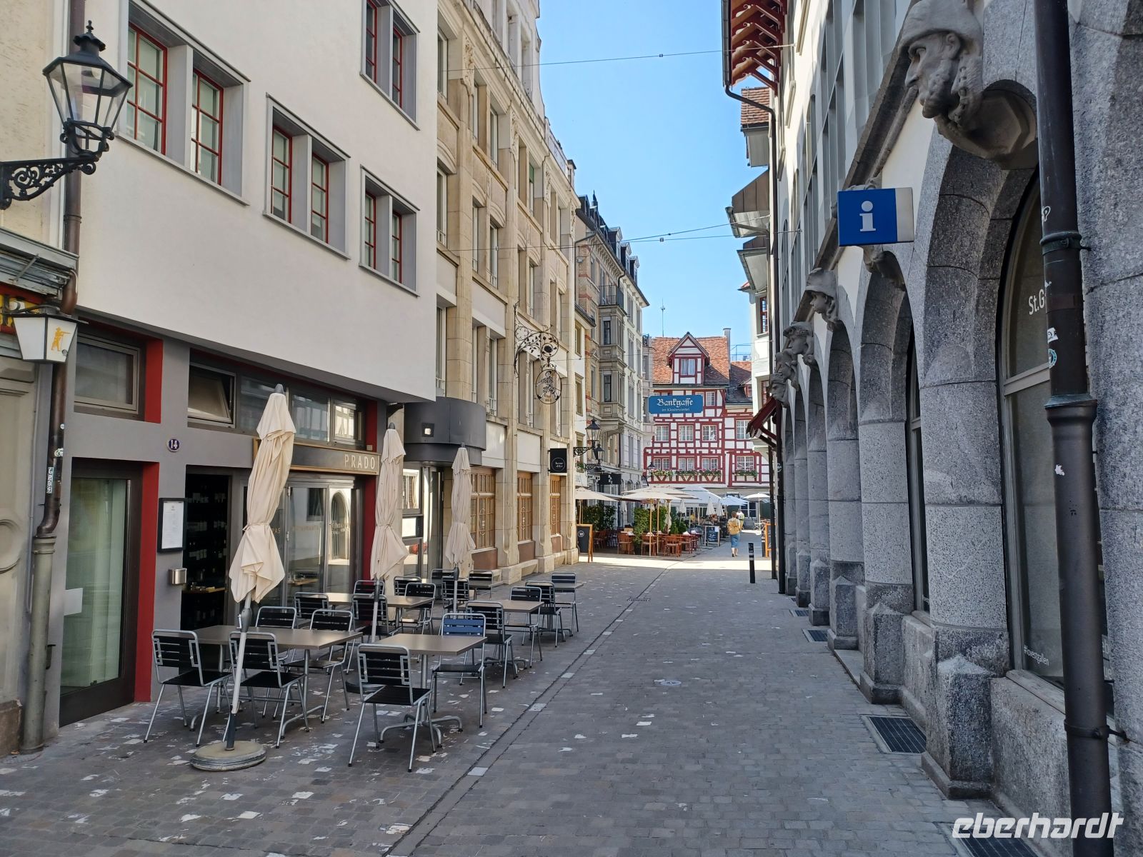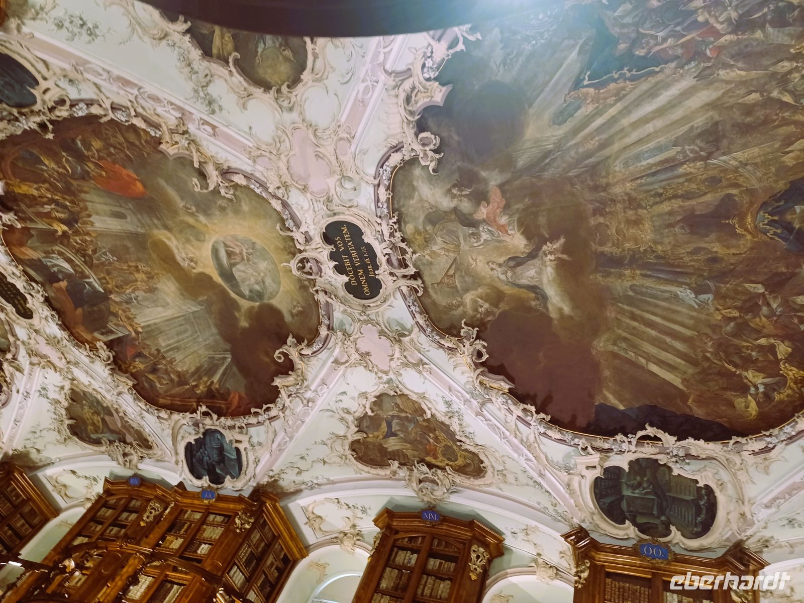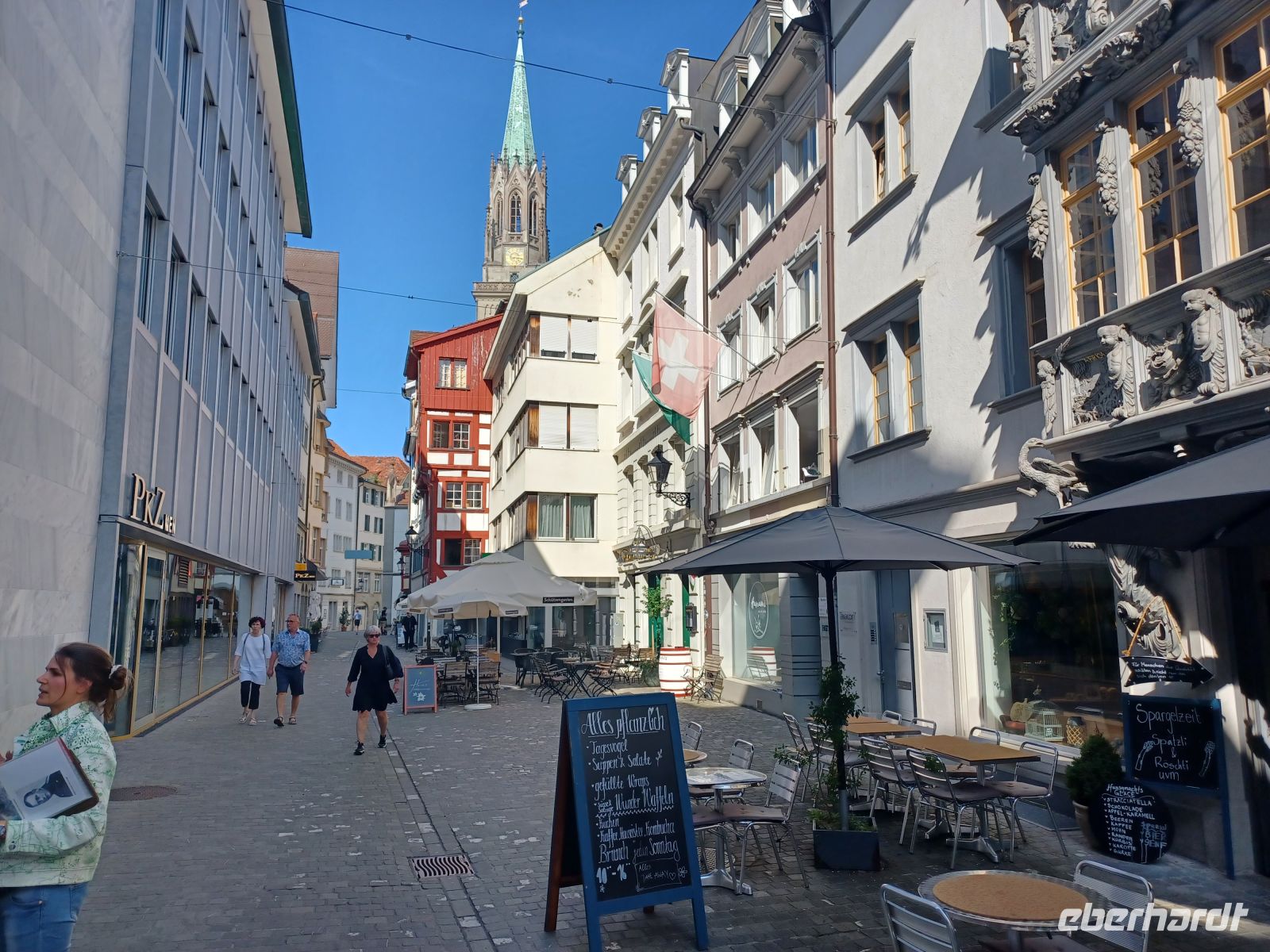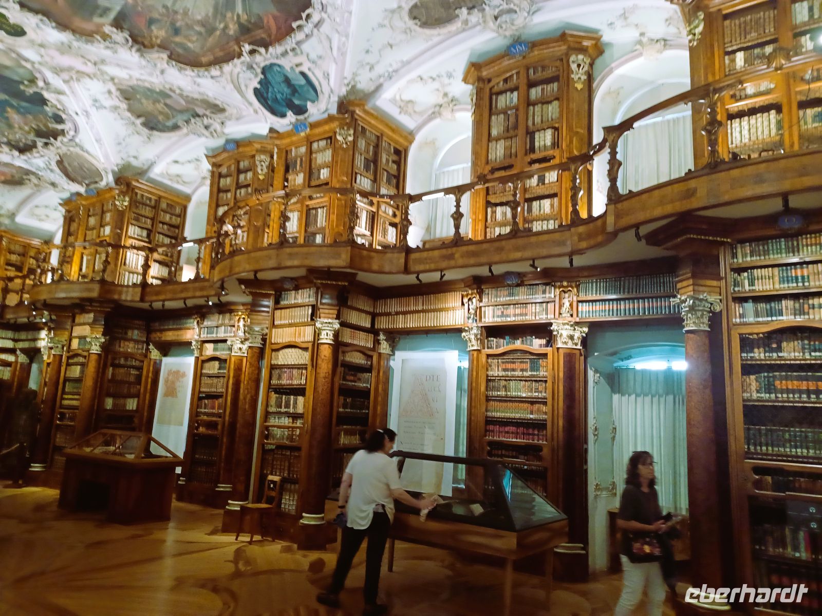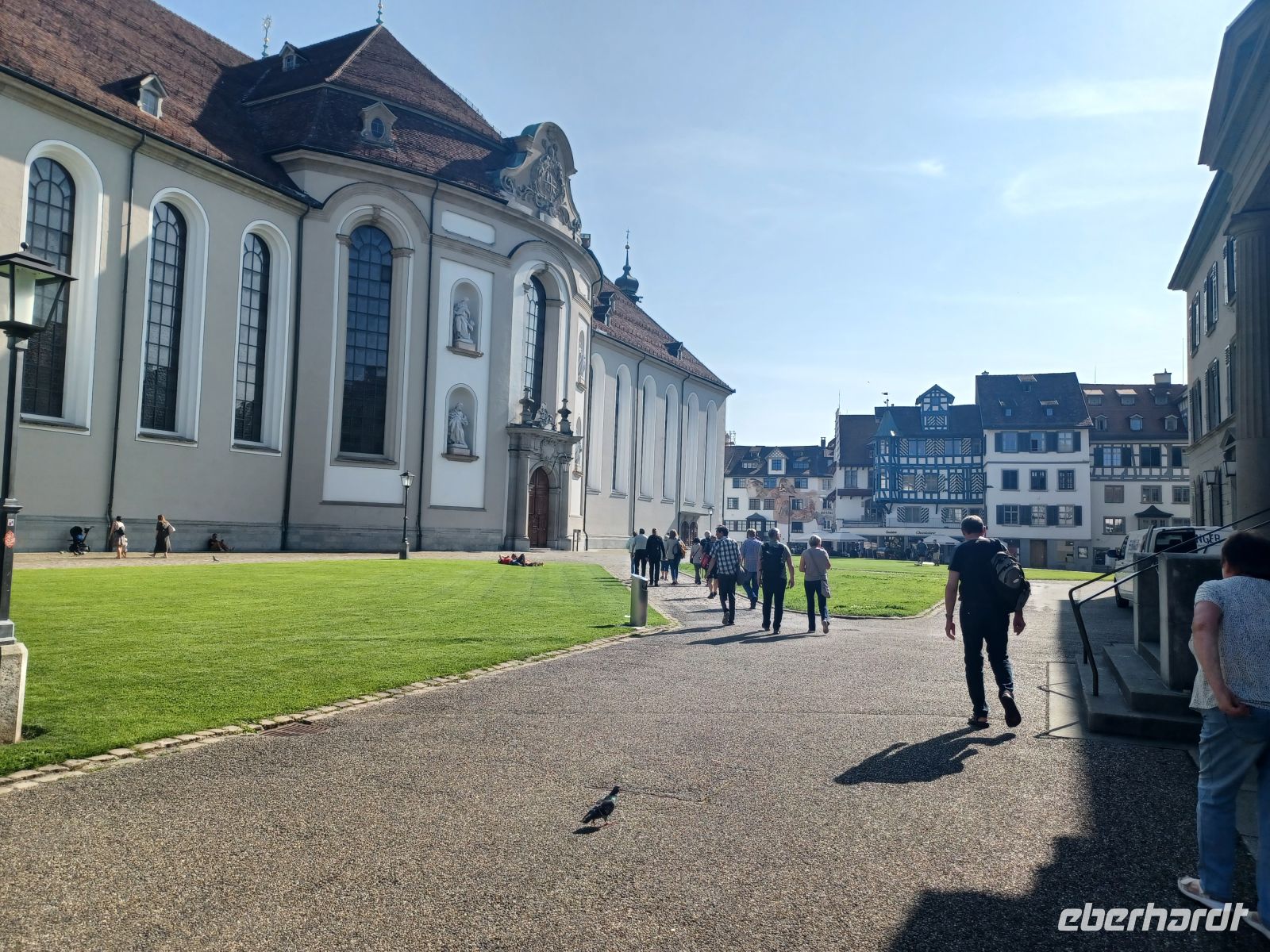 Ein erster großer Höhepunkt steht uns an diesem Nachmittag schon ins Haus: Der Besuch der Altstadt von Sankt Gallen mit ihrer wunderbaren historischen Bausubstanz. Hierzu lacht die Sonne vom Firmament herab; sie erwärmt unseren Gang durch die manchmal recht schmalen Gassen der Stadt. Altehrwürdige Häuser mit farbenprächtigen Fassaden und interessanten Erkern in einem Ambiente, welches einer Zeitreise in vergangene Jahrhunderte gleichkommt sind die Begleiter dieser Tour kreuz und quer durch diese malerische Stadt. Den absoluten Höhepunkt bildet jedoch der Besuch der Stiftsbibliothek in einem Seitentrakt der alten Klostermauern. Fast bis zur reichlich verzierten und bemalten Decke stapeln sich hier die Bücher; sie enthalten all die Zeugnisse einer längst vergangenen Epoche, deren Schreiber schon lange nicht mehr sind – allein ihre Bücher erzählen der Nachwelt wie es einst war…