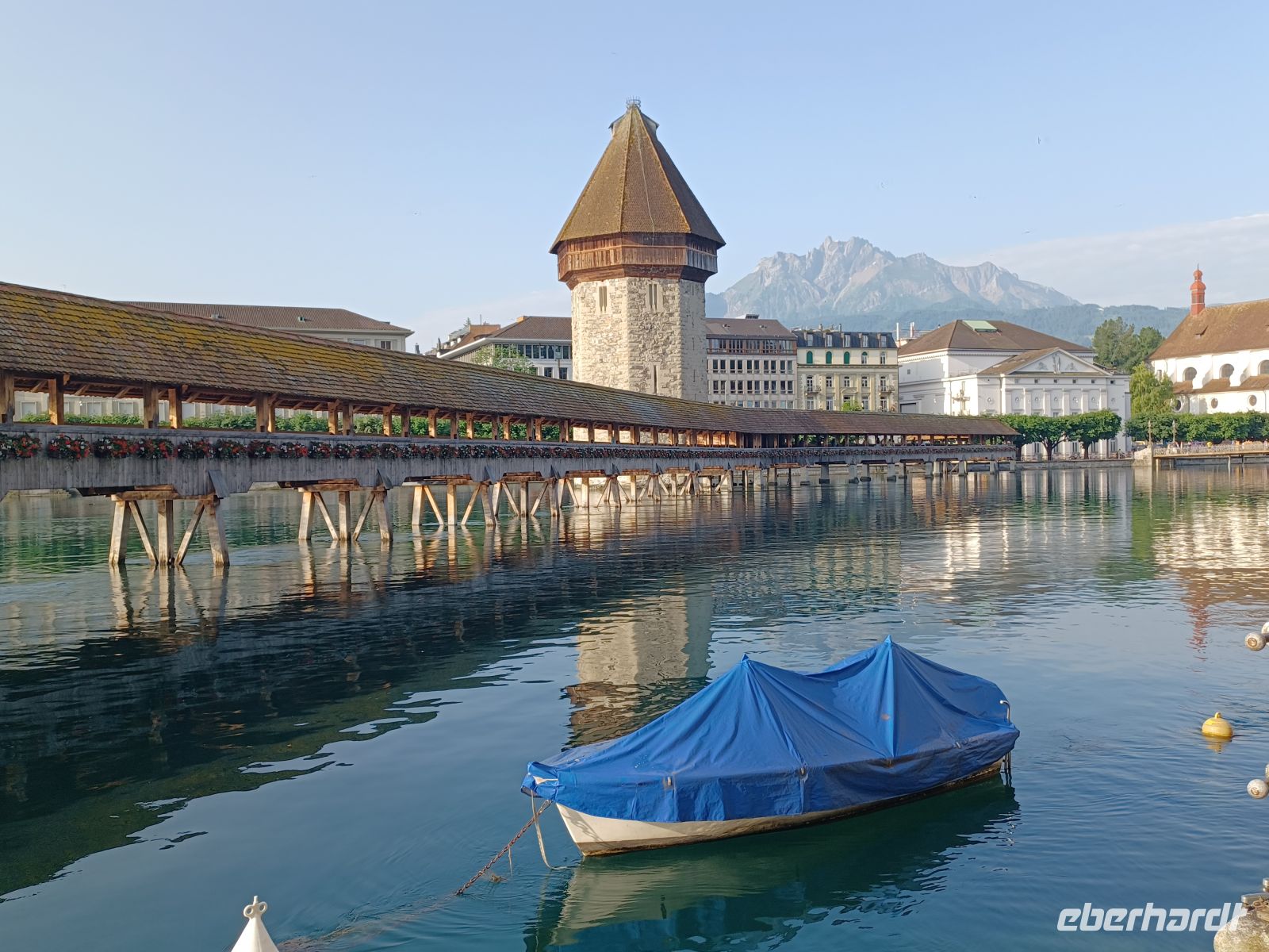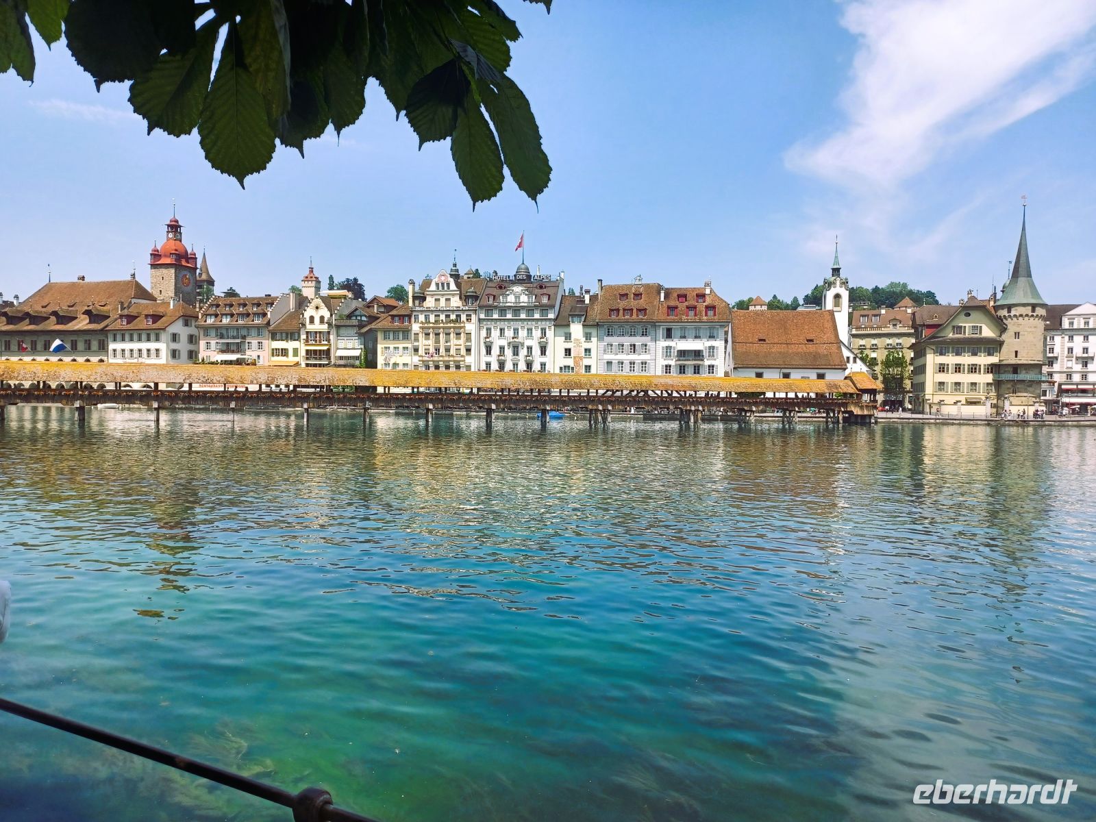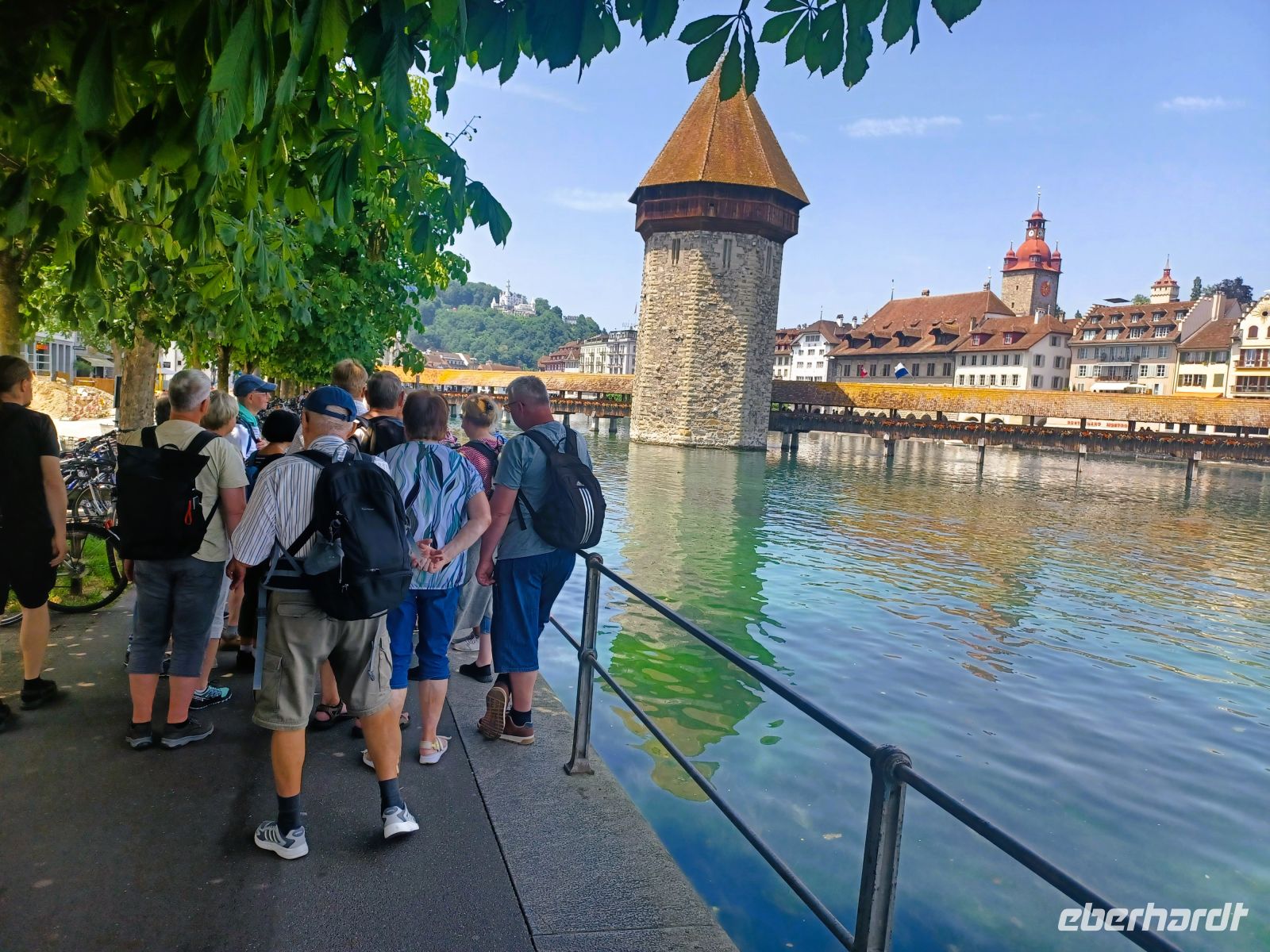 Die heutige Zugfahrt endet am Kopfbahnhof von Luzern; voller Erwartung auf das Kommende verlassen wir den gut klimatisierten Wagen um in mittäglicher Wärme von unserer Stadtführerin begrüßt zu werden. Nun beginnt erneut eine Zeitreise; bald gelangen wir vom modernen Bahnhof zum wohl größten Schatz den die Stadt zu bieten hat, es ist die Kapellbrücke mit ihrem bunten Blumenschmuck. Immer wieder schweift von hier der Blick nach links auf die wirklich imposante Häuserkulisse der Stadt; sie blieb, verschont von allen Kriegen, in ihrer Ursprünglichkeit den Menschen erhalten. Gleich im Anschluss gelangen wir dann auch in die Altstadt um ein weiteres Mal über die geschmackvolle Farbenprächtigkeit der Fassaden zu staunen. Ebenso staunten einst wohl auch Goethe und Richard Wagner über das Pittoreske Luzerns, es hat sich seither kaum etwas verändert…