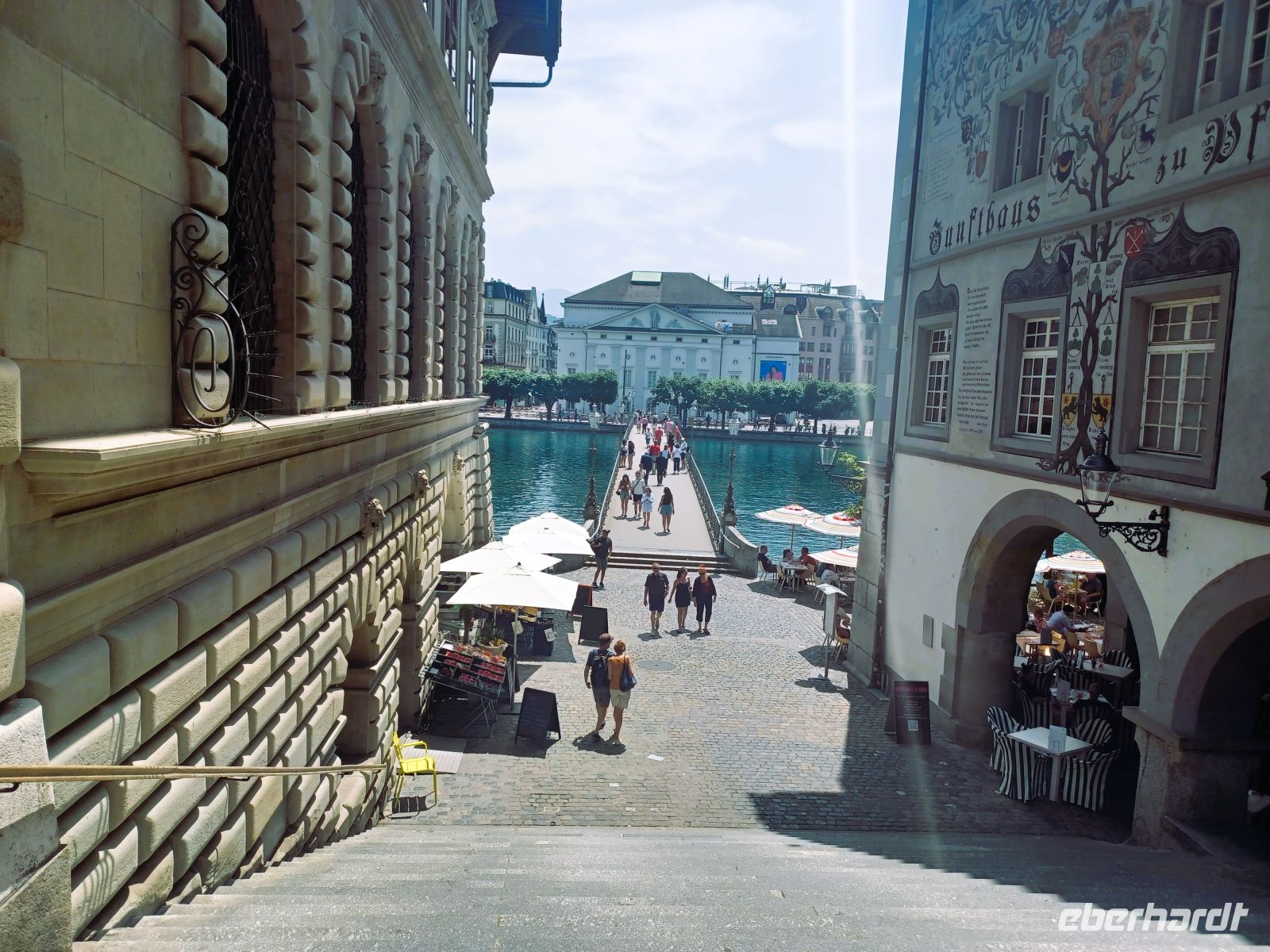 Nachdem sich die Stadtführerin verabschiedet hat, gelangen wir mit wenigen Schritten zu unserem Hotel im Herzen Luzerns – es ist der beste Ausgangspunkt für weitere ausgiebige Erkundungen an diesem sonnigen Nachmittag.