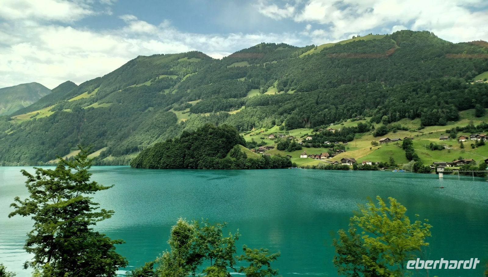 Am zeitigen Nachmittag geht es dann mit den Zug weiter. Er bringt uns, zunächst auf Normalspur, an den Thuner See; wir können von hier aus das gegenüberliegende Ufer sehen und bald kommt auch die mächtige Pyramide des Berges Niessen in Sicht. Hier schwenken wir nun ein in das Simmental - ein weiteres Mal ändert sich prägnant die Landschaft. Inmitten der grünen Erhebungen schlängelt sich der Fluss durch die Berge und wir folgen seinem Verlauf in zahlreichen Windungen. Hier zeigen sich uns die Häuser noch in ihrer ursprünglichen Form; wir erahnen das nicht immer einfache bäuerliche Leben der Menschen aus längst vergangenen Zeiten…
