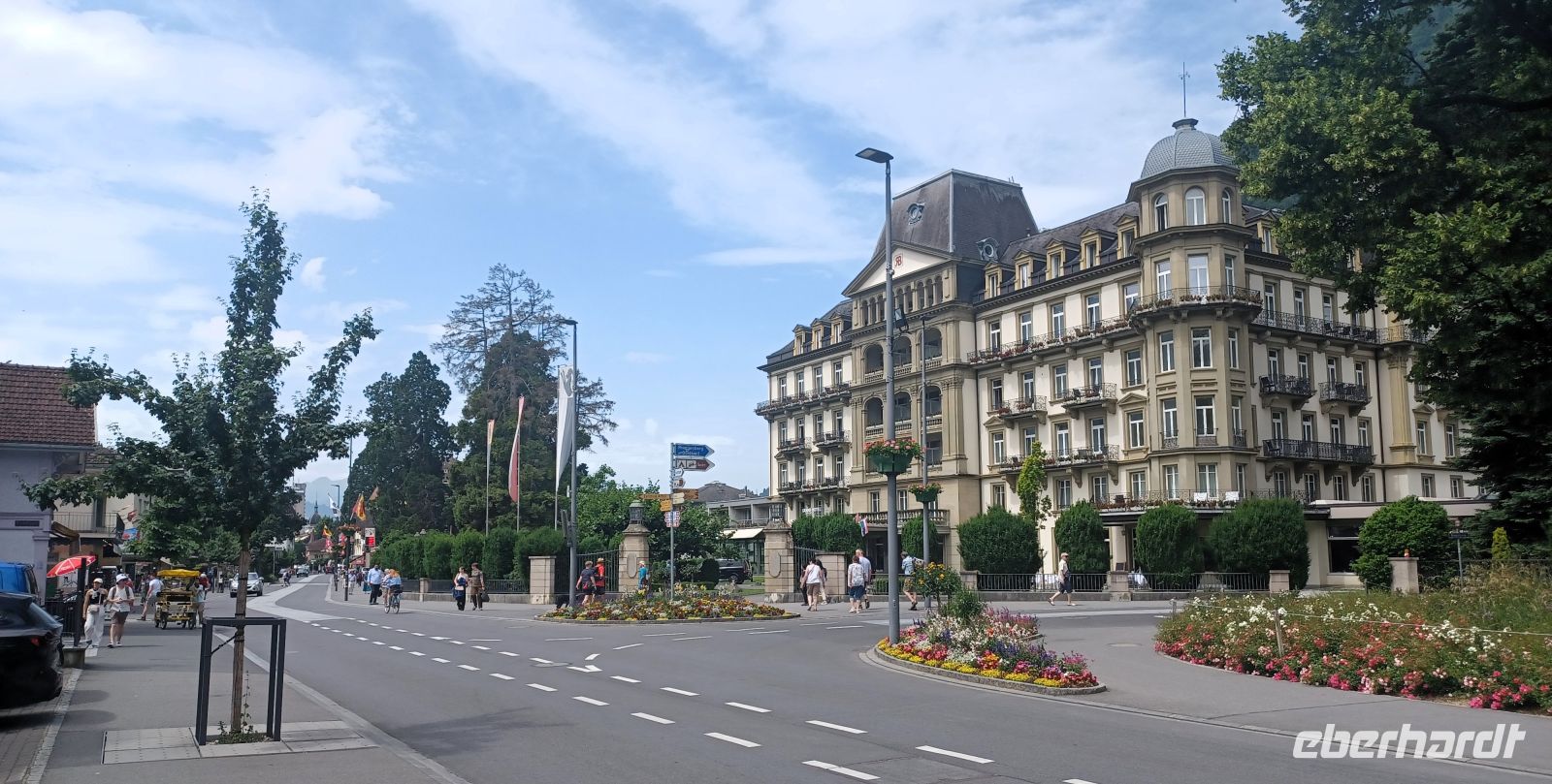 Bald nehmen wir die ersten größeren Anstiege mithilfe der Zahnradtechnik, oben angelangt können wir auf die grünen Fluten des Lungernsees schauen. Was doch die Natur in der Lage ist für wunderbare Effekte zu zaubern? Fast unwirklich wirkt dieser Anblick auf dieses Gebirgsgewässer. Nun führt uns die Reise über den Brünigpass; schon bald können wir zu Tal und auf die zahlreichen Wasserfälle des Berner Oberlandes schauen. Entlang des Ufers des Brienzer Sees, eingebettet zwischen hohen Bergen, erreichen wir das erste Ziel des heutigen Tages: Interlaken.