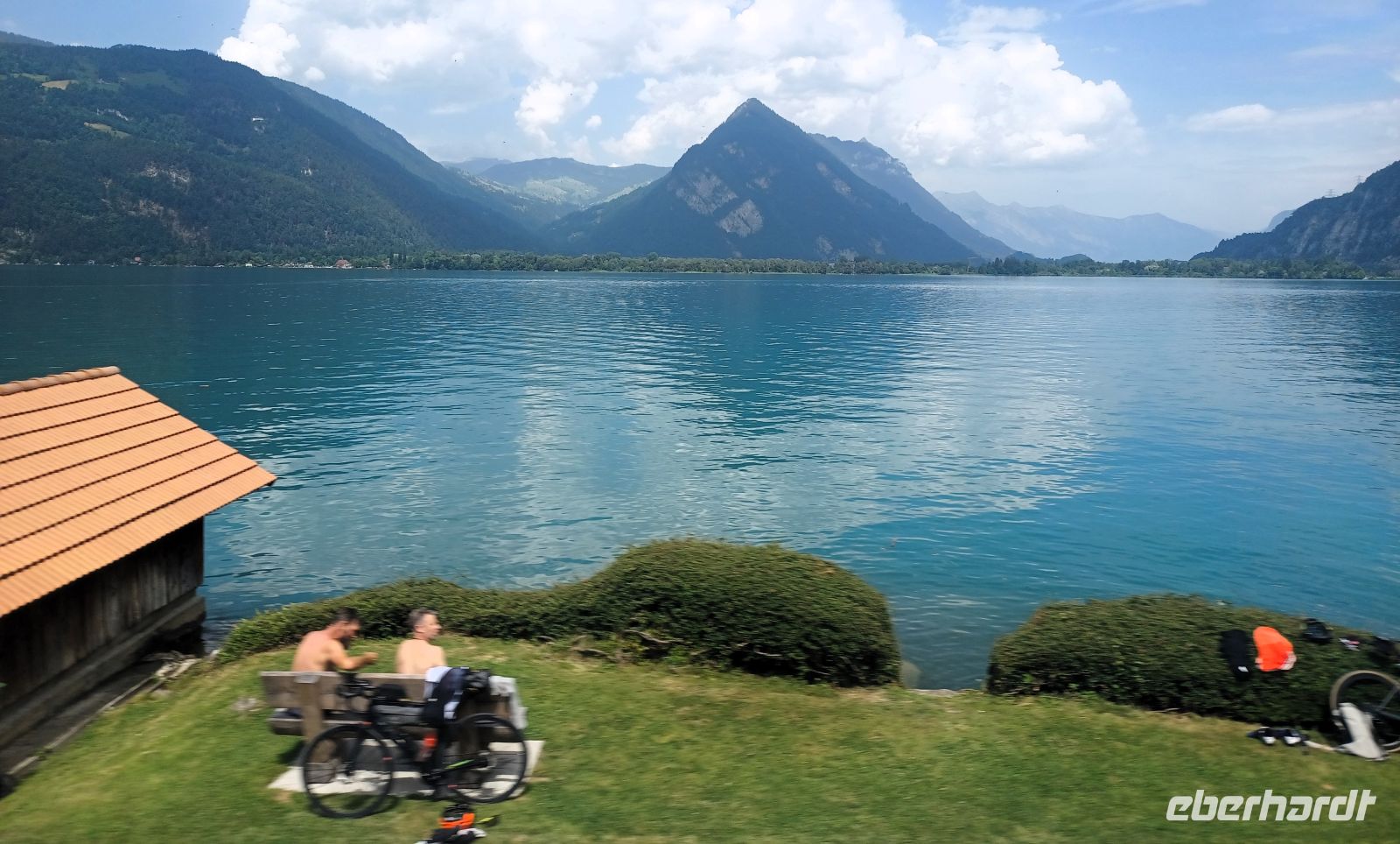 Auch heute lacht uns die Sonne; sie bescheint mit ihren Strahlen das Gebiet rechts und links der Route. Bald kommt die Rigi, jener markante Berg, in Sichtweite und wenig später die Wiege der Eidgenossenschaft: der Vierwaldstätter See.
