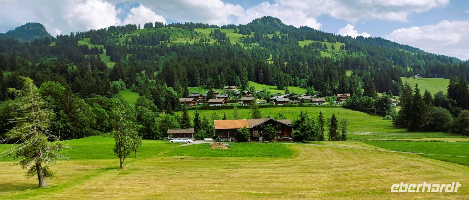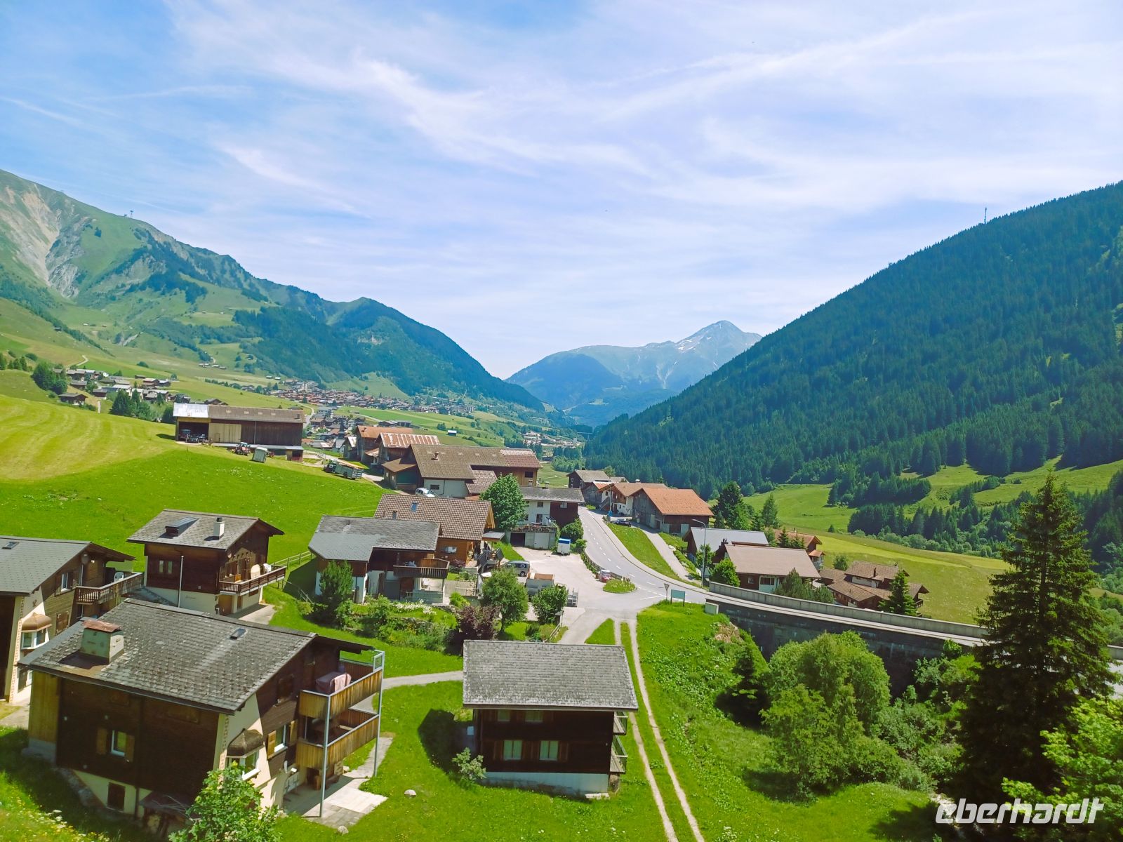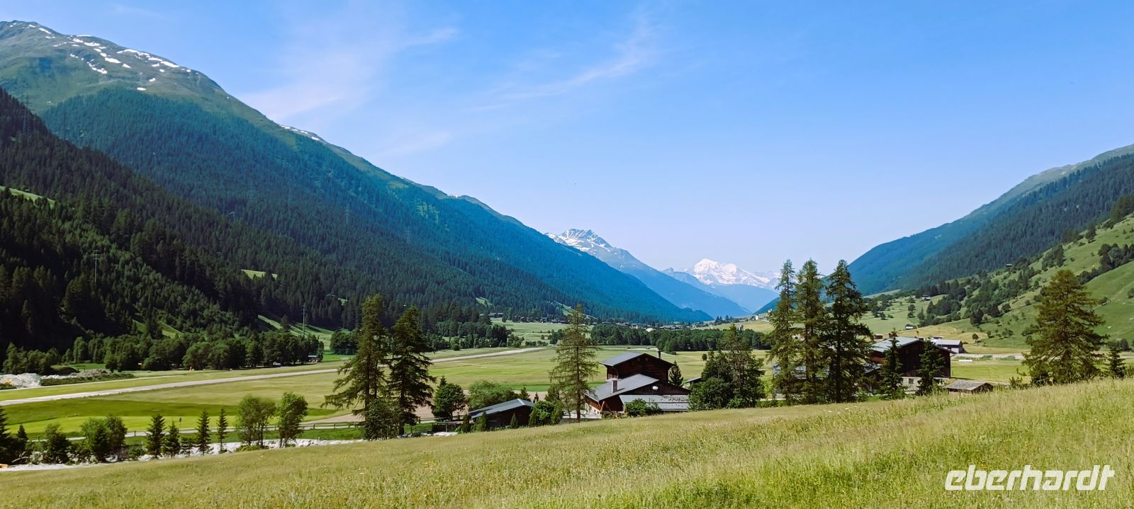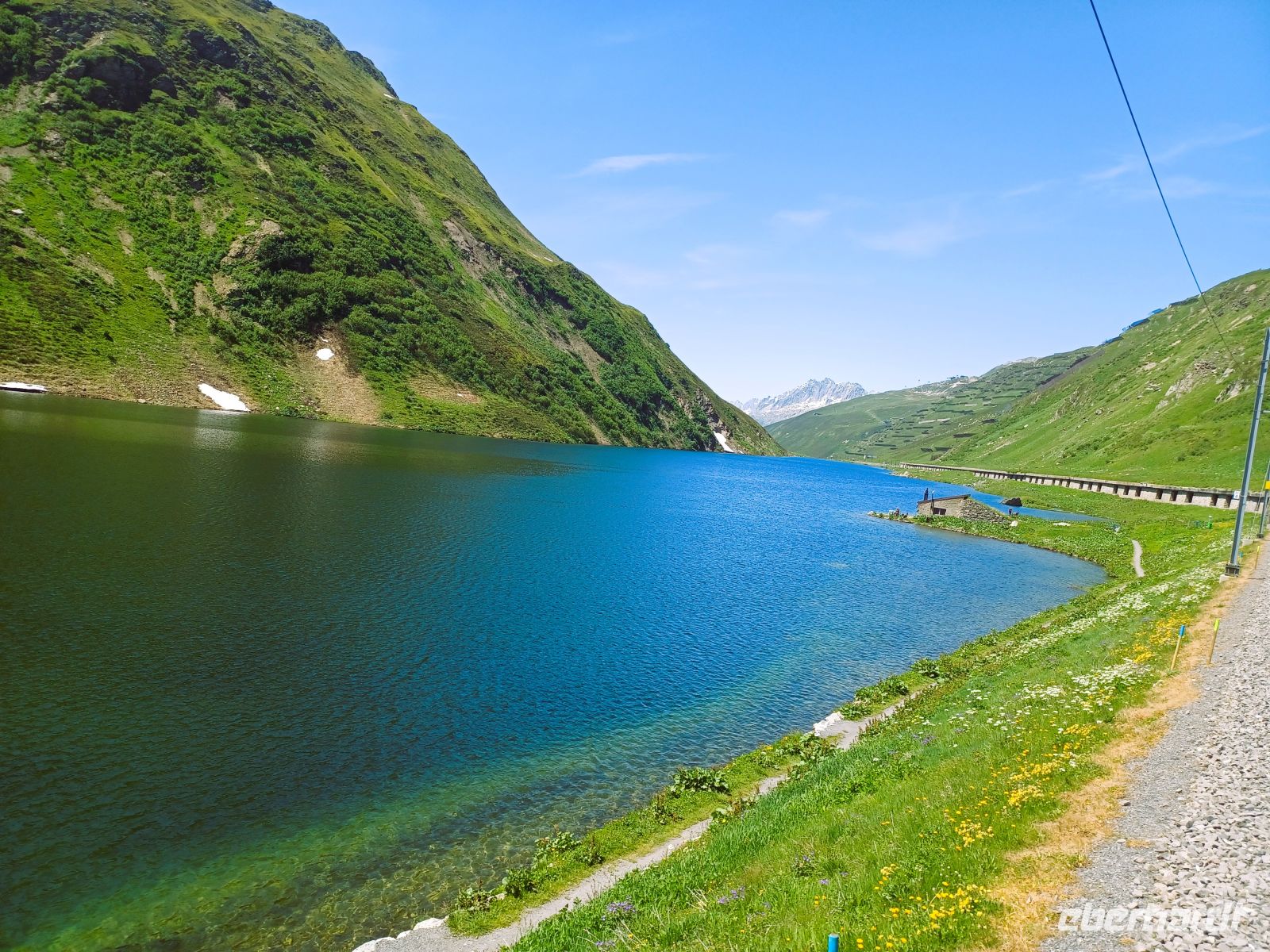Petrus hat uns erneut einen wunderschönen und warmen Tag beschert; eine gesunde grüne Landschaft zeigt sich überall, sie kontrastiert mit den kahlen, schneebedeckten Bergen im Hintergrund und dem blauen Himmel in wunderbarer Form.