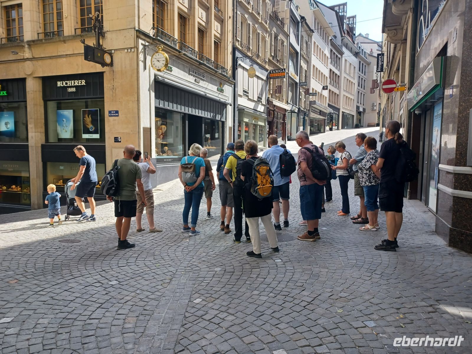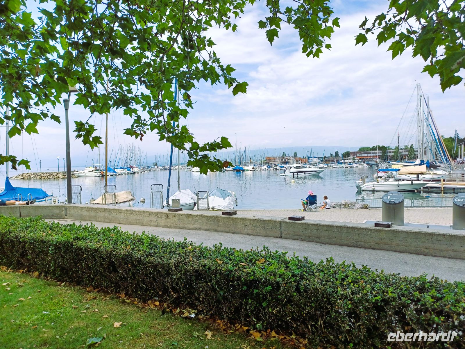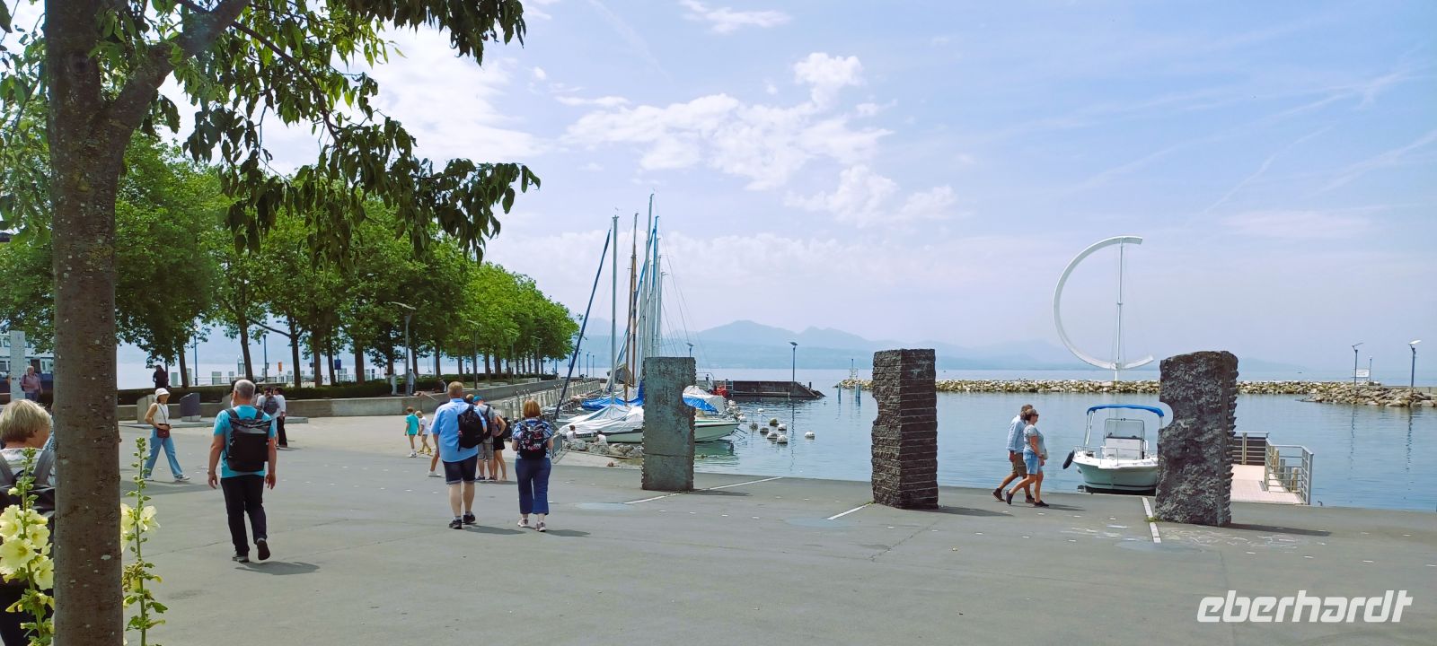 Nach etwa zwei interessanten Stunden ist jedoch Schluss; wir verabschieden uns von der Führerin und ab nun beginnt die Freizeit in welcher wir ausgiebig die Metro nutzen können. Sie bringt uns bis hinunter zum Genfer See; hier gibt es ein munteres Treiben vieler junger Menschen; kein Wunder, sie begehen ihr landesweites Turnfest.