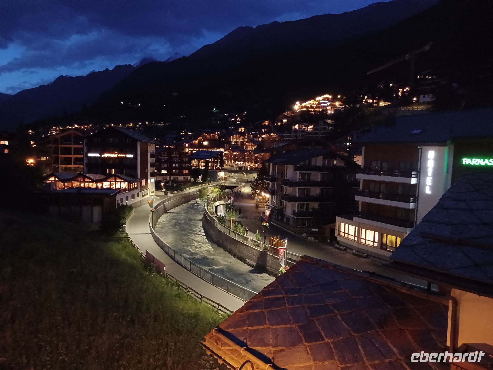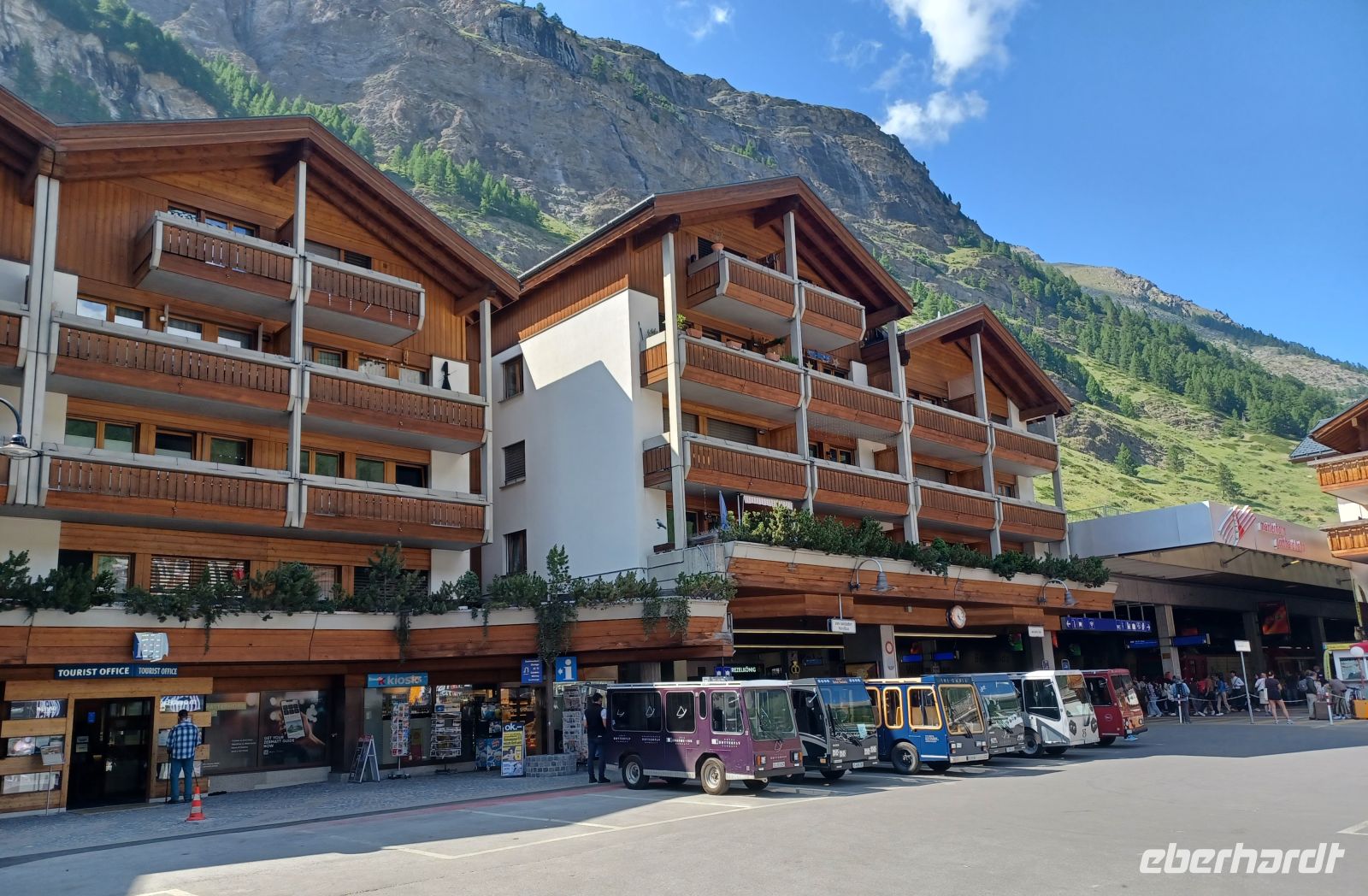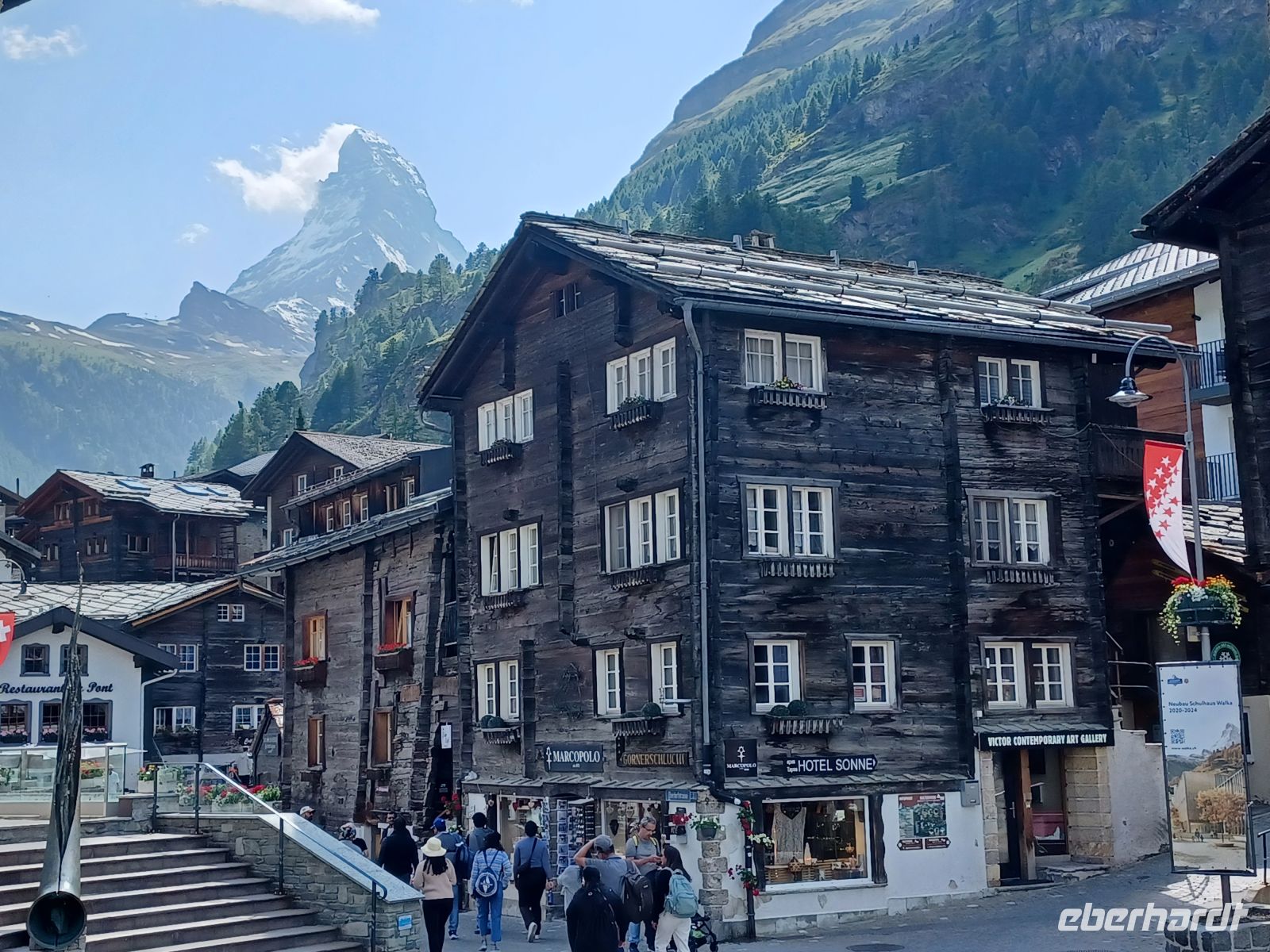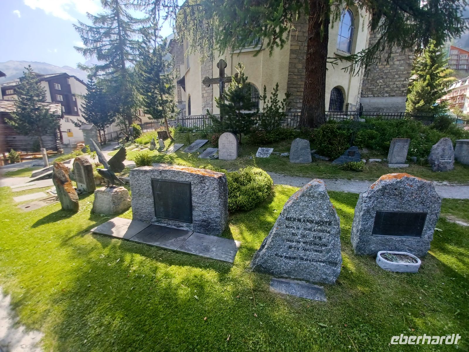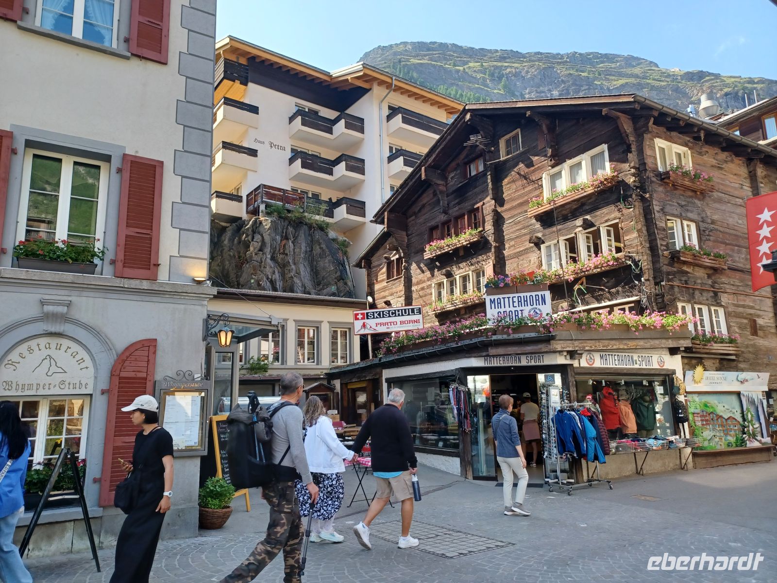 Es ist die Zeit um dem malerischen Gebirgsdorf einen Besuch abzustatten. Über die stark frequentierte Bahnhofstraße mit ihren noblen Geschäften gelangt man in den ursprünglichen Ort mit den uralten Walliser Holzhäusern, der Kirche mit dem sich anschließenden Bergsteigerfriedhof und dem putzigen Murmeltierbrunnen. Als sich die Sonne langsam absenkt und bald hinter den hohen Bergen verschwunden ist hat sich unsere Reisegruppe zum Abendessen wieder getroffen und alle sind ich einig: Das war heute ein besonders schöner Tag!