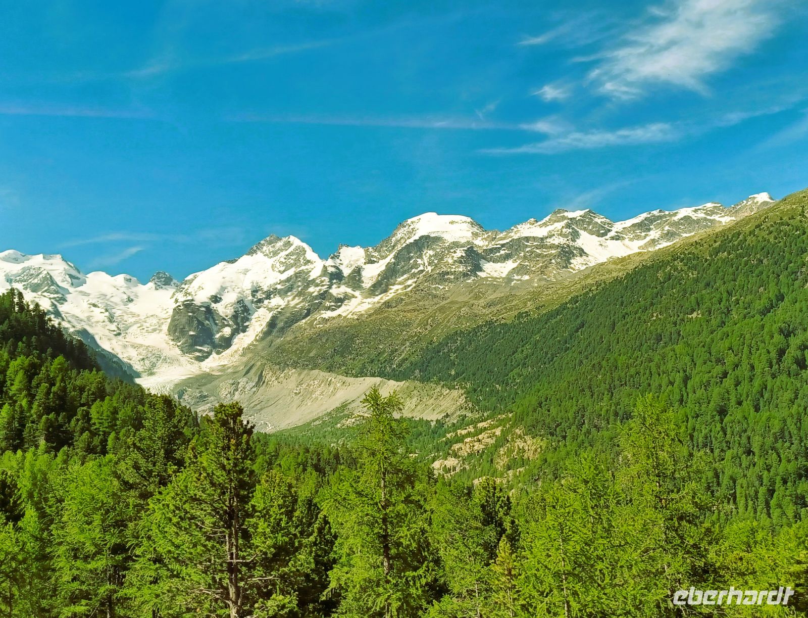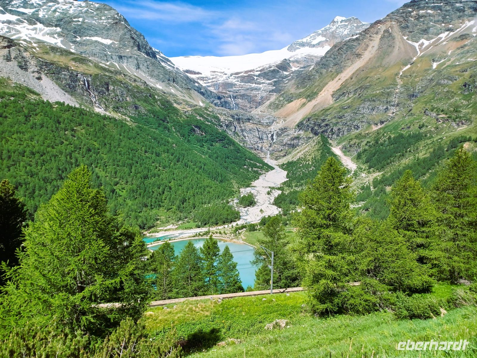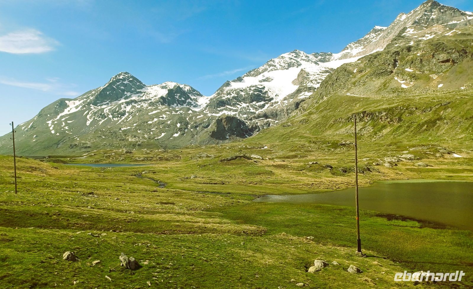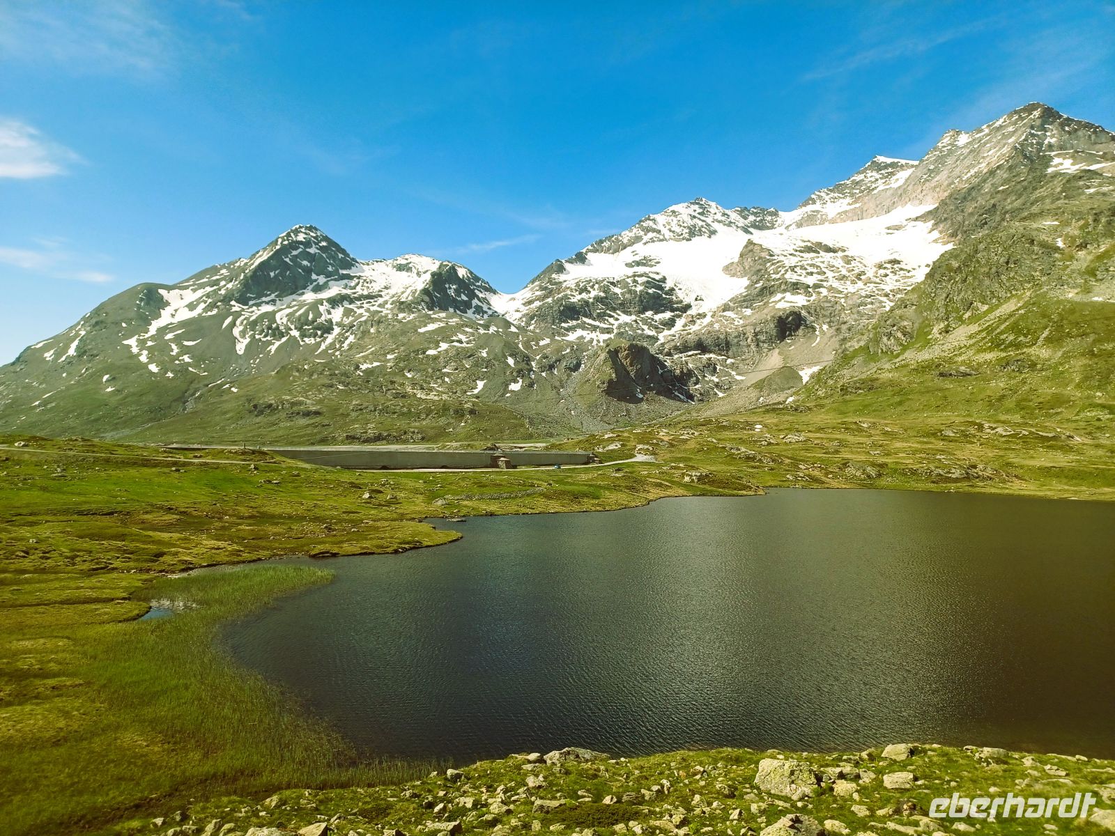 Oben, am Bernina-Pass, schweift der Blick von den Seen aus zu einer Bergwelt die in ihrer Vielfältigkeit das Auge des Betrachters immer wieder fasziniert.