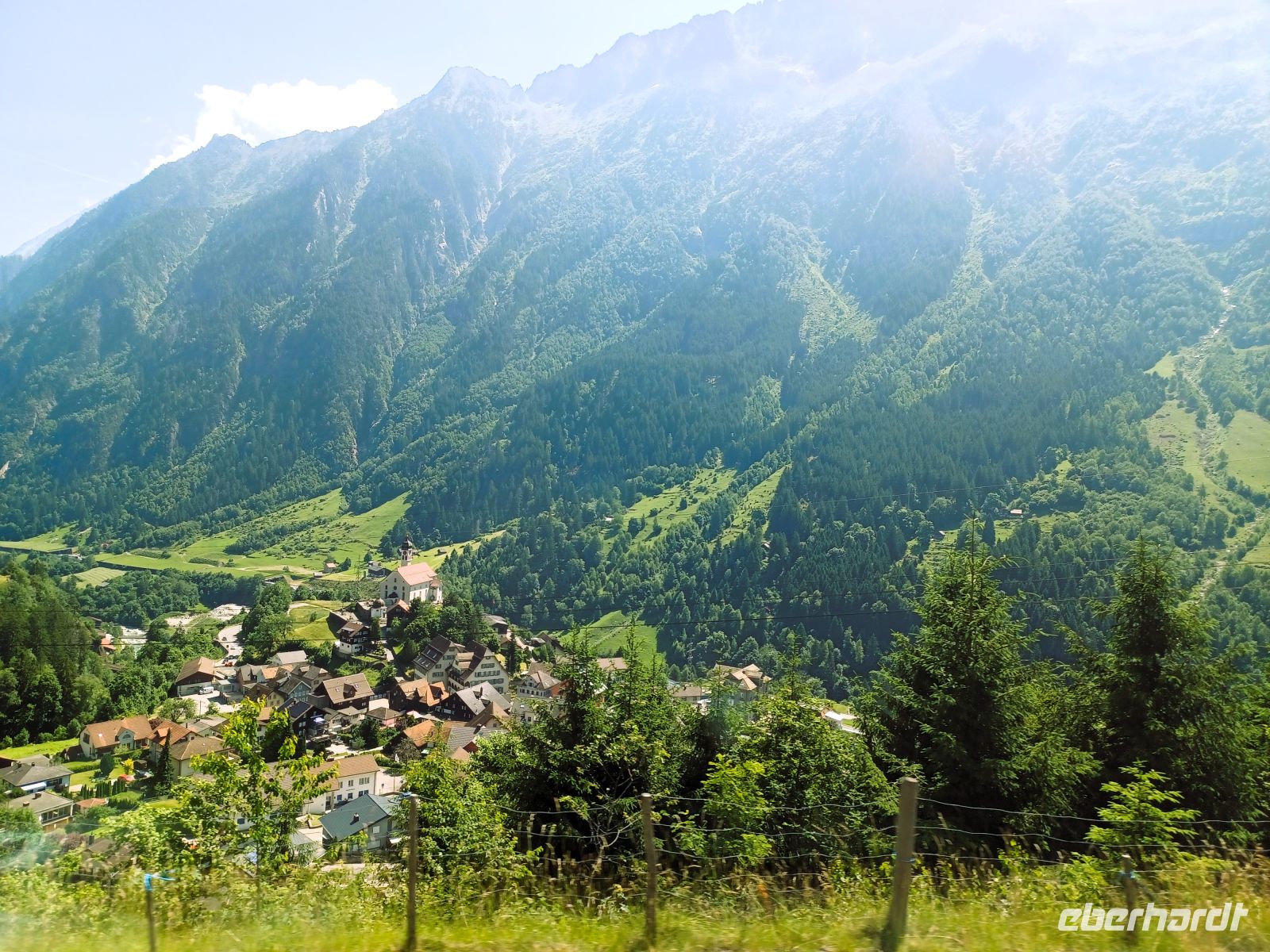 Beim Abstieg in Richtung Vierwaldstättersee geht es beim Ort Wassen durch drei Kehrtunnel, so dass wir die Kirche dieses Ortes sage und schreibe dreimal aus verschiedenen Positionen sehen können – das ist schon etwas verwirrend.