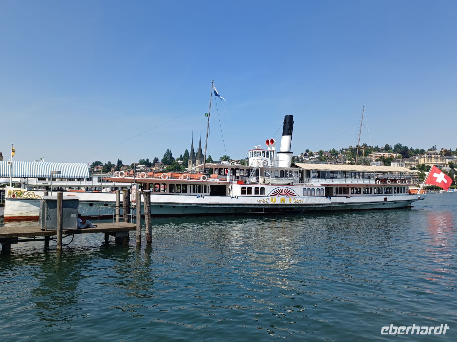 Durch die Verspätung ist nun schon die Ablegezeit unseres Dampfers herangerückt; dieser wartet jedoch geduldig auf die Säumigen und somit kommen wir nicht um den Genuss mit der „Uri“ von Flüelen bis nach Luzern den kompletten Vierwaldstättersee zu erkunden.
