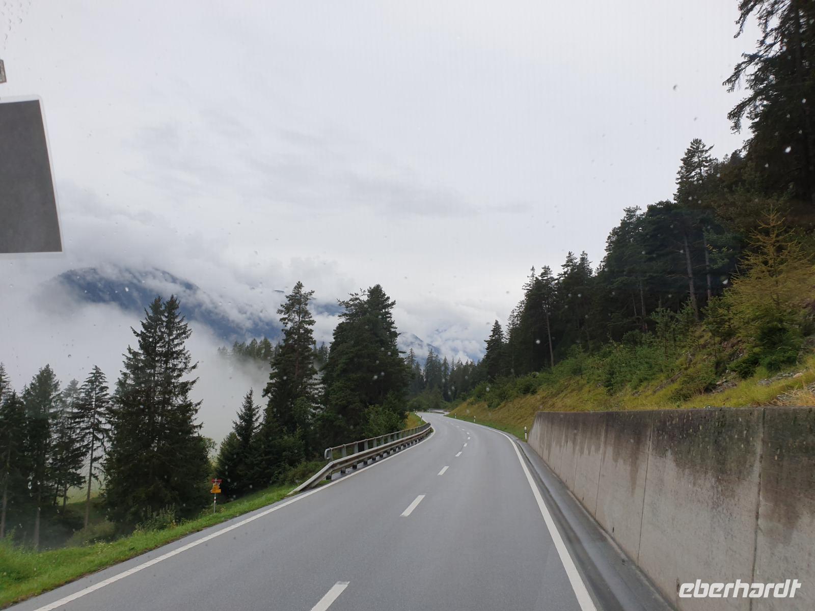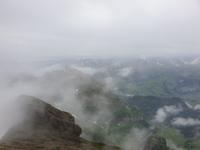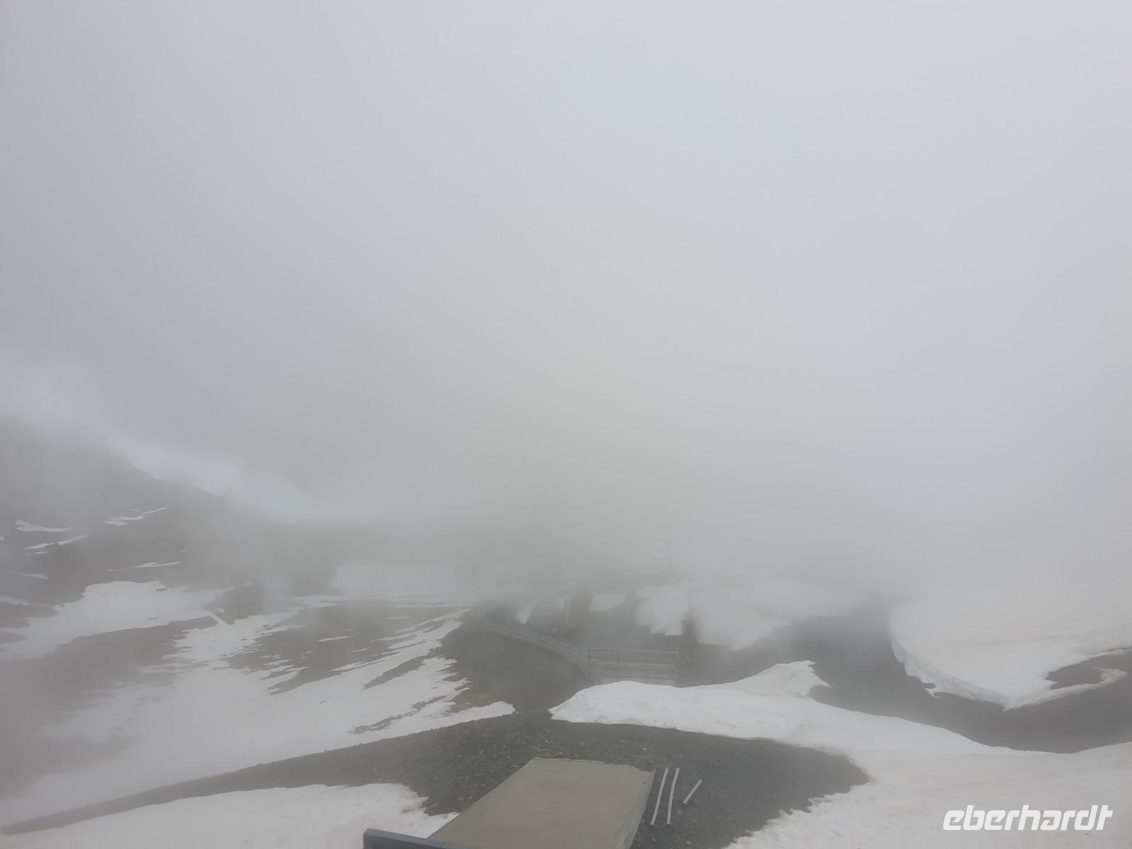 Der herrliche Ausblick während der Auffahrt weicht leider einer geschlossenen Wolkendecke auf dem Gipfel...