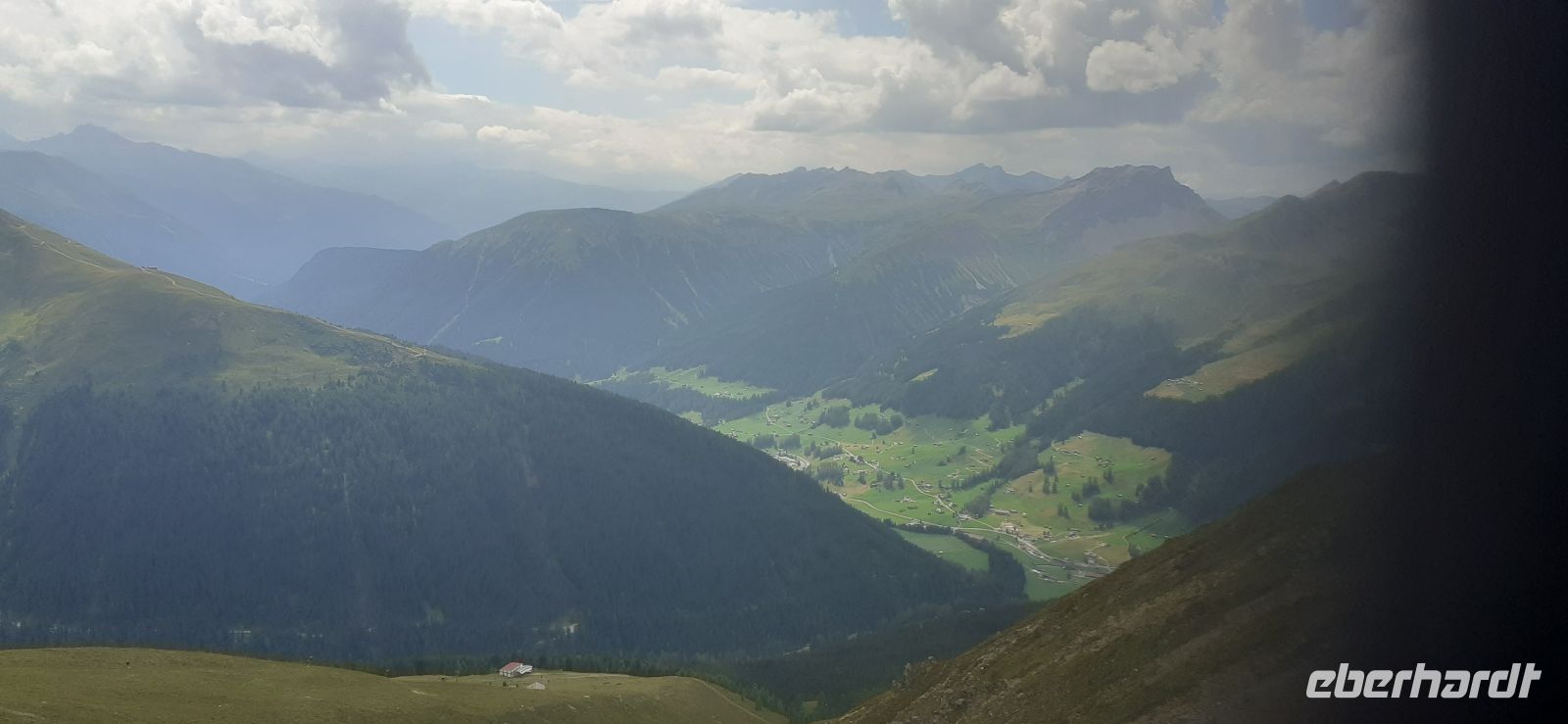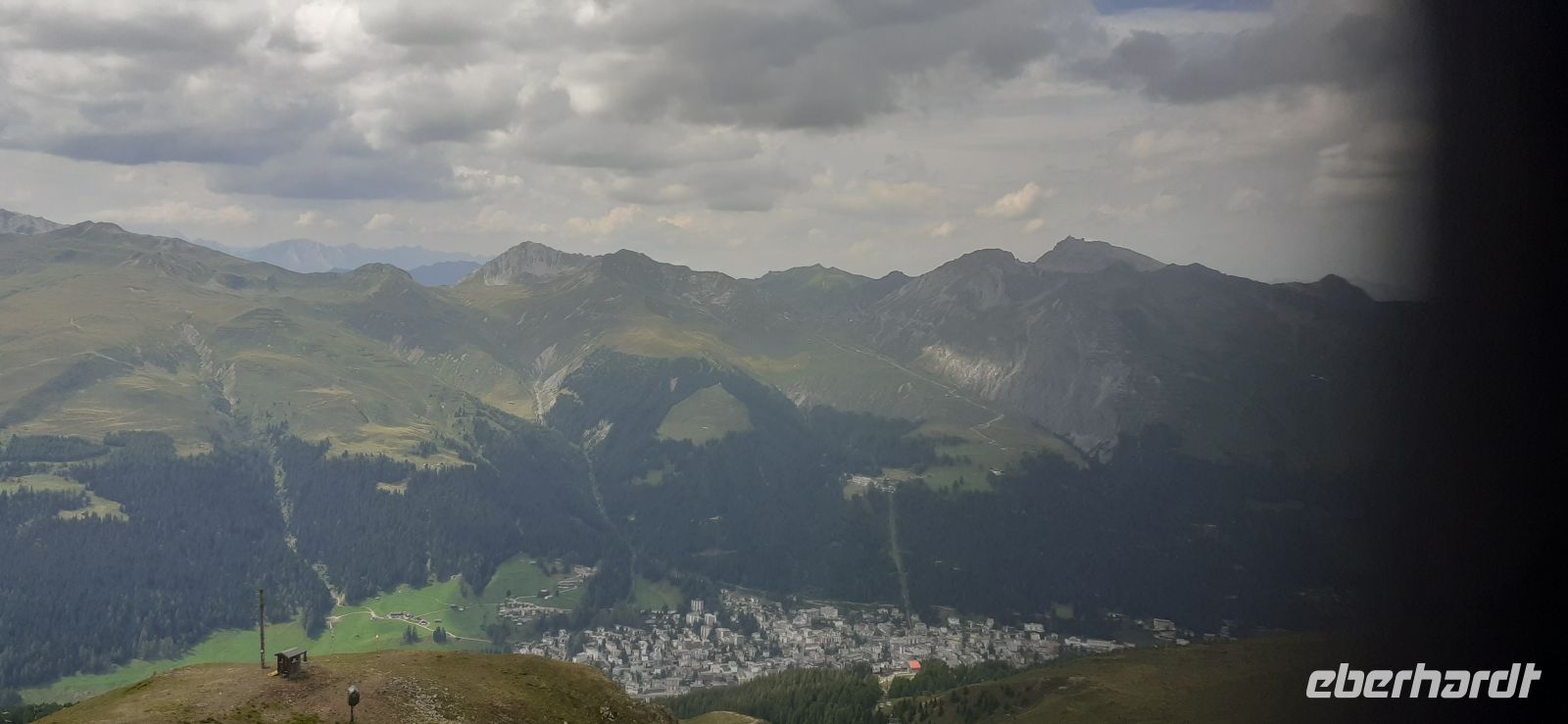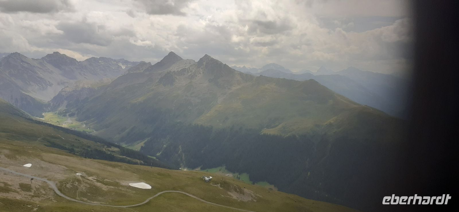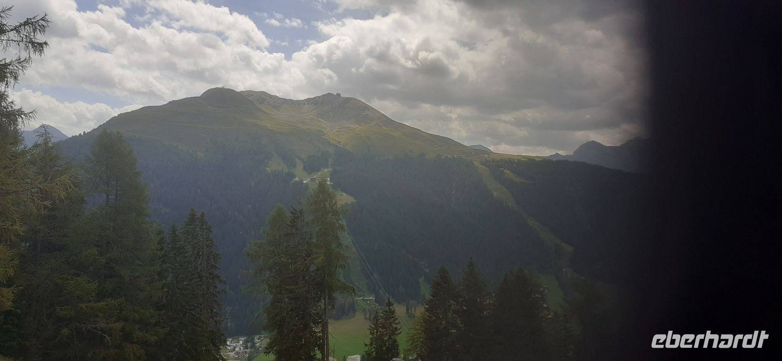 uns heute noch auf das Jakobshorn zu fahren. So spazierten wir zur Talstation und fuhren in zwei Sektionen auf 2.590 m. Es hatte sich gelohnt von der Terrasse hatte man einen Rundumblick auf die verschiedenen Bergmassive und auf Davos.