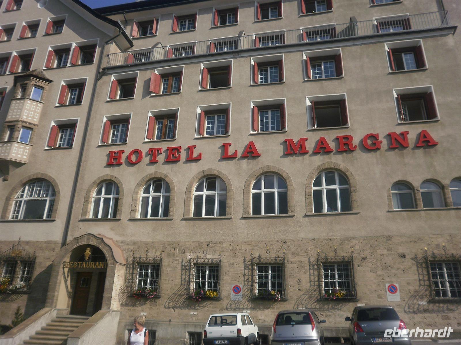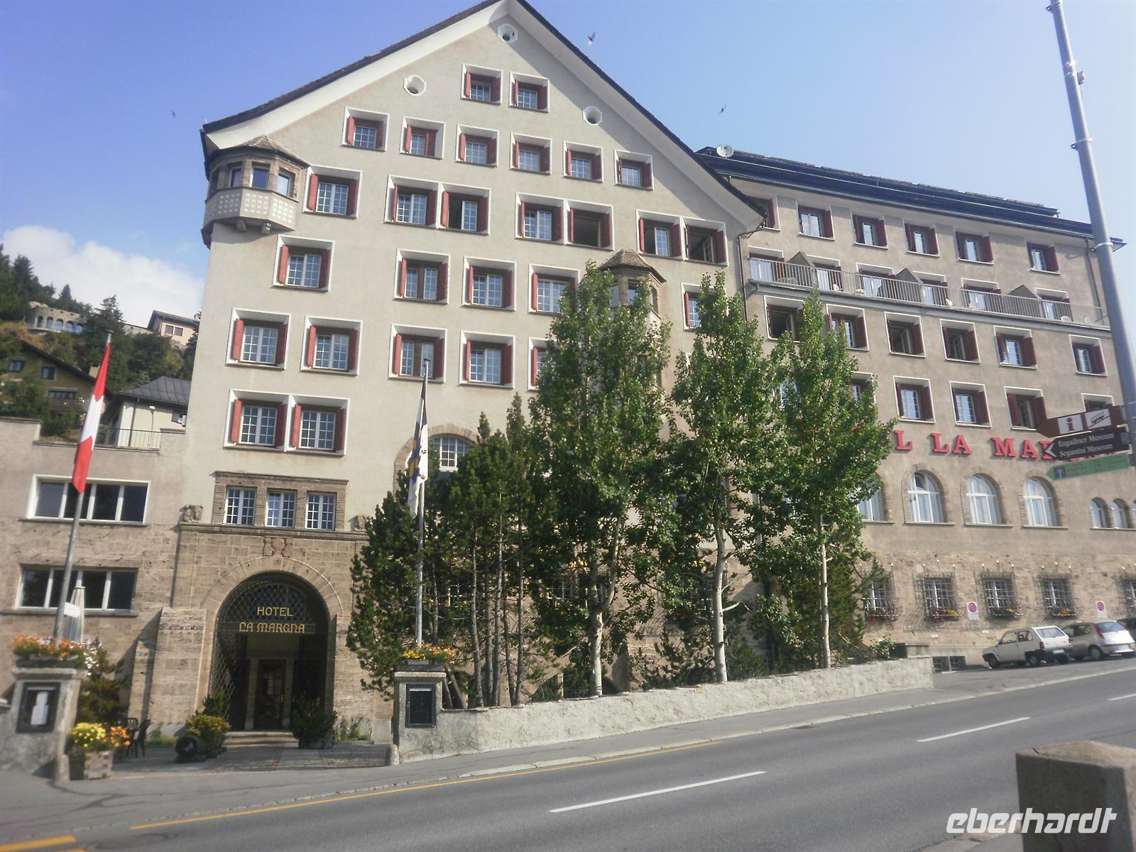 So konnte jeder mal etwas frische Luft schnappen beziehungsweise sich die Beine vertreten. Die Fahrt führte uns über Nürnberg und Ulm in Richtung Bodensee. Durch den Pfändertunnel und über Lustenau erreichten wir bereits am Nachmittag die Schweiz. Die Route führte uns weiter durch das Rheintal, vorbei an Chur und über den Julierpass nach St. Moritz. St. Moritz liegt auf 1800 Metern über dem Meer inmitten der Engadiner Seenlandschaft. Zu jeder Jahreszeit findet man hier eine attraktive Mischung von Natur, Kultur, Sport und Erholung. Im vier Sterne Hotel "La Margna" wurden wir bereits erwartet und in eine besondere Ferienwelt entführt. Eingebettet zwischen See und Dorfkern von St. Moritz bietet dieses Swiss Historic Hotel eine einzigartige Kulisse am Schmelzpunkt von Belle Epoque und Engadiner Wohnkultur. Die Gastgeber Tradition der Familie Schweizer und die engagierten Mitarbeiter sorgen für einen entspannten Genuss.