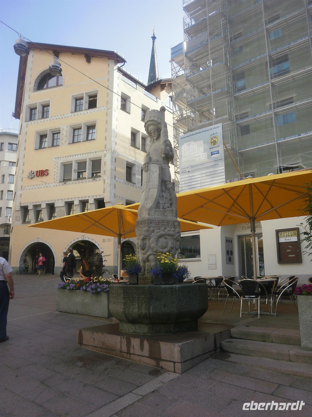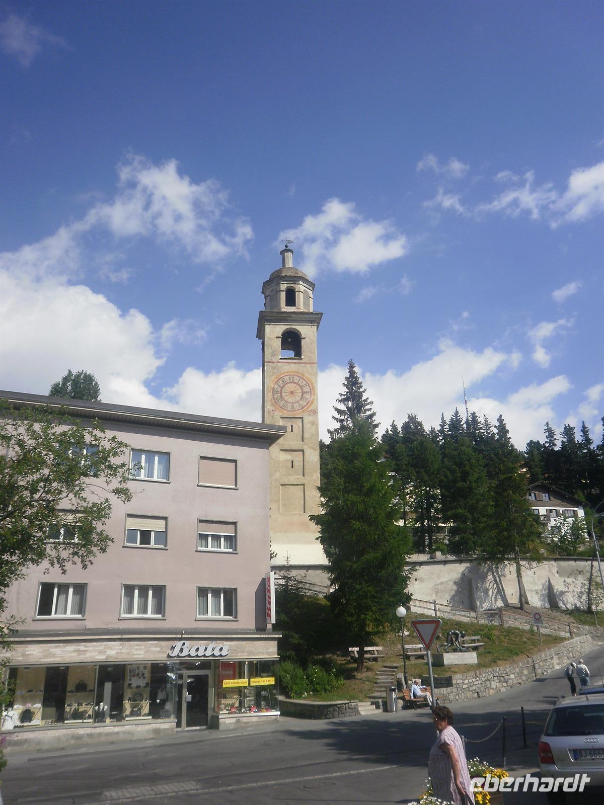 Am Vormittag unternahmen wir einen geführten Ortsrundgang in St. Moritz. St. Moritz ist mit seinem kosmopolitischen Ambiente einer der beliebtesten Ferienorte der Welt. Er verdankt seine Bedeutung ursprünglich seinen Heilquellen, die seit gut 3000 Jahren bekannt sind und war Geburtsort des Ende des 19. Jahrhunderts einsetzenden alpinen Wintertourismus. Wahrzeichen von St. Moritz ist der 33 Meter hohe "Schiefe Turm", der erstmals 1139 urkundlich erwähnt wurde und der Rest einer alten Kirche ist. Am Ende der Führung statteten wir dem Traditionscafé "Hauser" einen Besuch ab, hier konnten wir übrigens eine typische Bündner Spezialität - die Bündner Nusstorte - probieren.