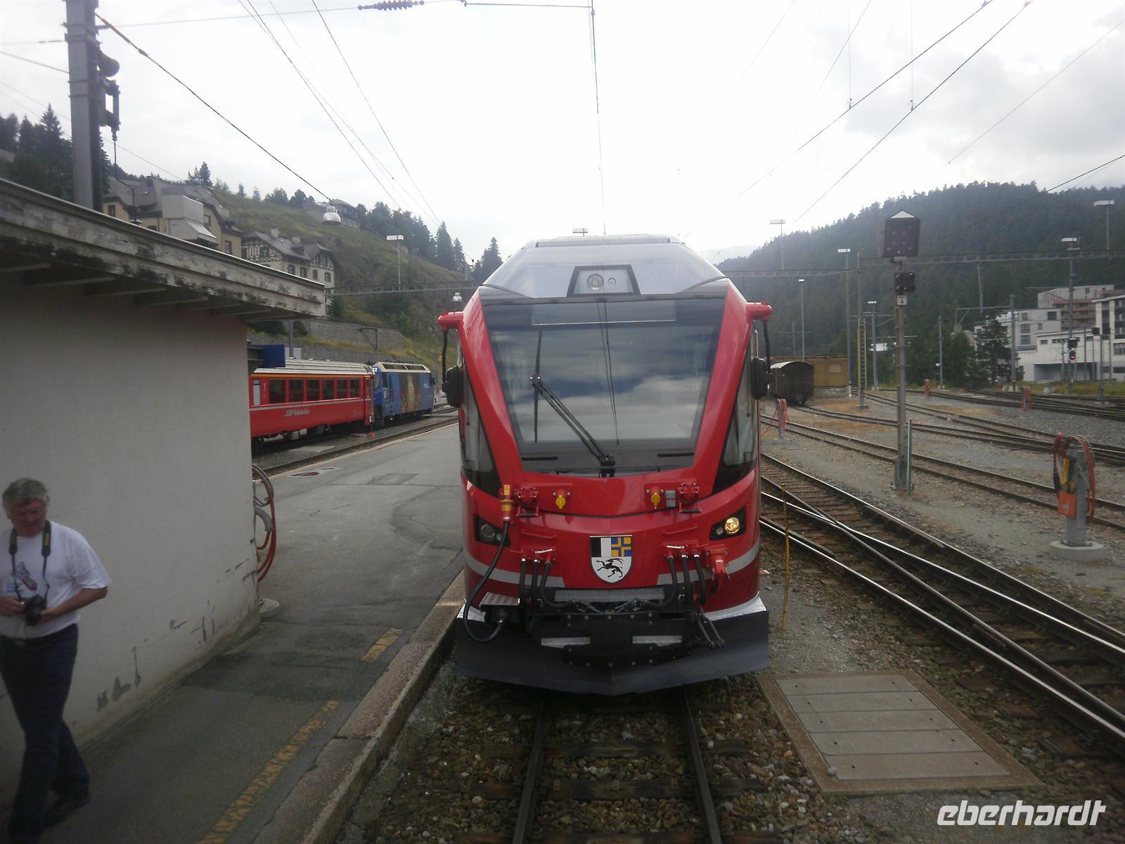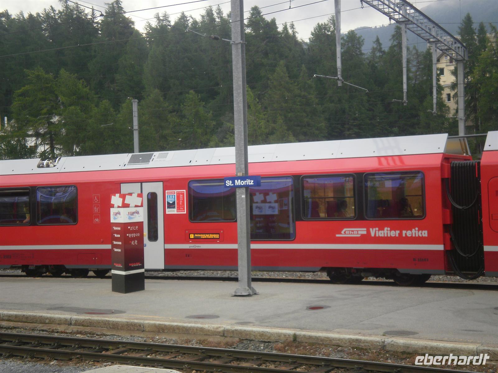 Heute stand bereits der erste Höhepunkt dieser Reise, die Fahrt mit dem Bernina-Express, auf dem Programm. Ausgangspunkt war St. Moritz, hier stiegen wir am Vormittag in den Bernina-Express ein.