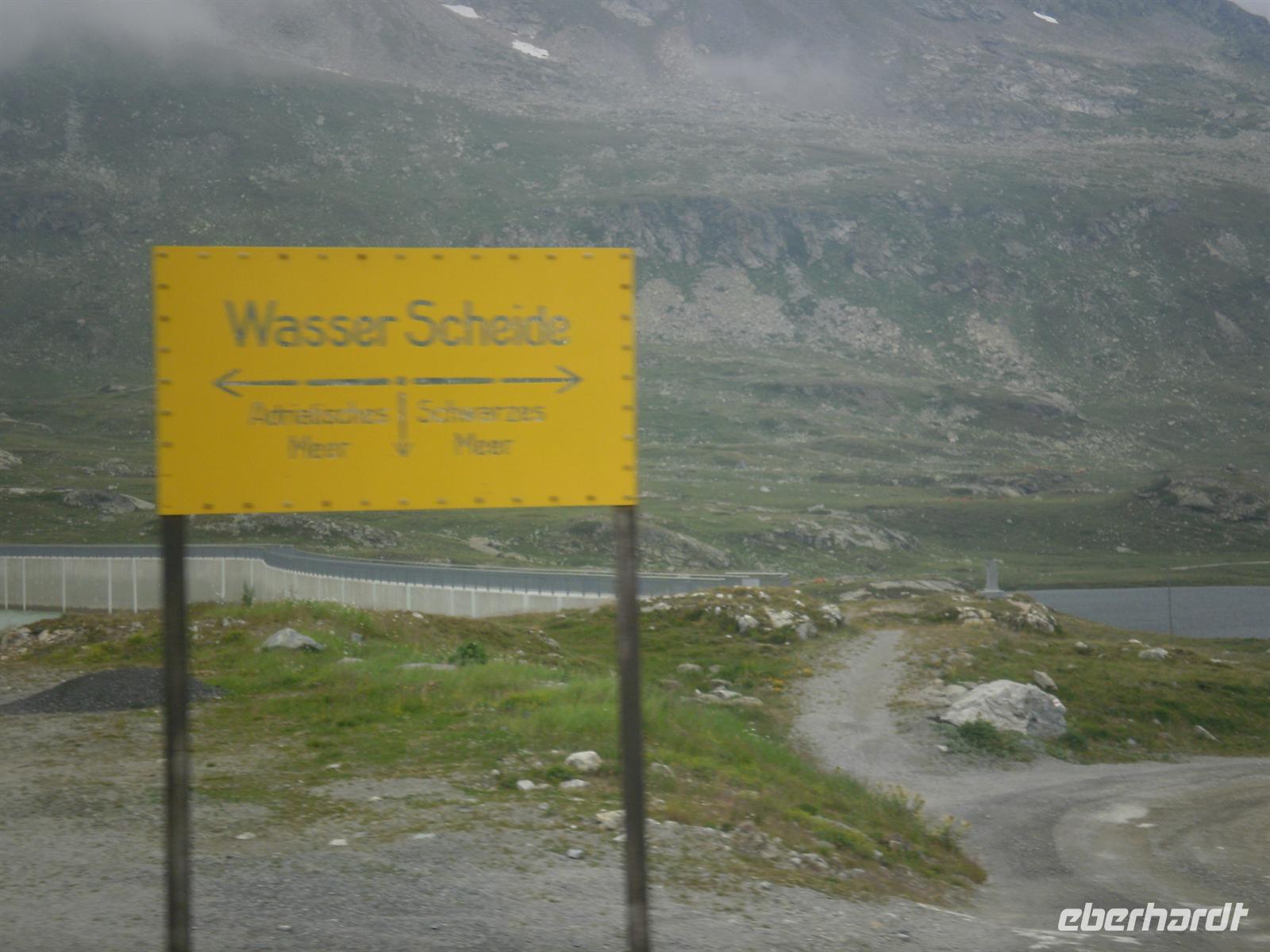 Für uns ging es nun mit dem Bus zurück. Nach kurzer Zeit erreichten wir wieder den Grenzübergang Italien - Schweiz und wie versprochen, legten wir auf der Rückfahrt ein paar Foto-Stopps ein, denn während unserer Bahnfahrt am Vormittag durften wir leider nicht aussteigen. Brusio sollte unser erstes Ziel sein, denn dort erlebt man eine wahre Einzigartigkeit - der Bernina-Express beschreibt eine Schleife über einen Kreisviadukt. 107 Meter ist er lang, und er dürfte zu den meistfotografierten Bauwerken der Rhätischen Bahn zählen. Diese 360-Grad-Kehre bringt wertvolle Höhenmeter, ein Griff in die Trickkiste der Bahnbauer, der sonst nur bei Kehrtunnels angewendet wird. Wir warteten auf einen Bernina-Zug, damit unser Foto perfekt war. Weiter hinauf ging es zum Lago di Poschiavo. Durch die Ortschaften des Val di Poschiavo, einem italienischsprachigen Südtal des Kantons Graubünden, erreichten wir die Bernina-Passstraße. Diese ist gewöhnlich ganzjährig geöffnet und stellt die Verbindung zwischen dem Puschlav im Süden und dem Engadin im Norden dar. Damit ist der Pass gleichzeitig eine Sprachgrenze. Eine gelbe Tafel auf dem Pass signalisiert die Europäische Wasserscheide, das Wasser in Richtung Süden gelangt über die Flüsse Poschiavino, Adda und Po ins Adriatische Meer und das Wasser in Richtung Norden wird über den Inn und die Donau ins Schwarze Meer geleitet. Nach einem Aufenthalt auf dem Bernina-Pass ging es mit einem kurzen Stopp mit Blick auf den Morteratsch-Gletscher zurück nach St.Moritz. Ein erlebnisreicher und kurzweiliger Tag war jetzt zu Ende.