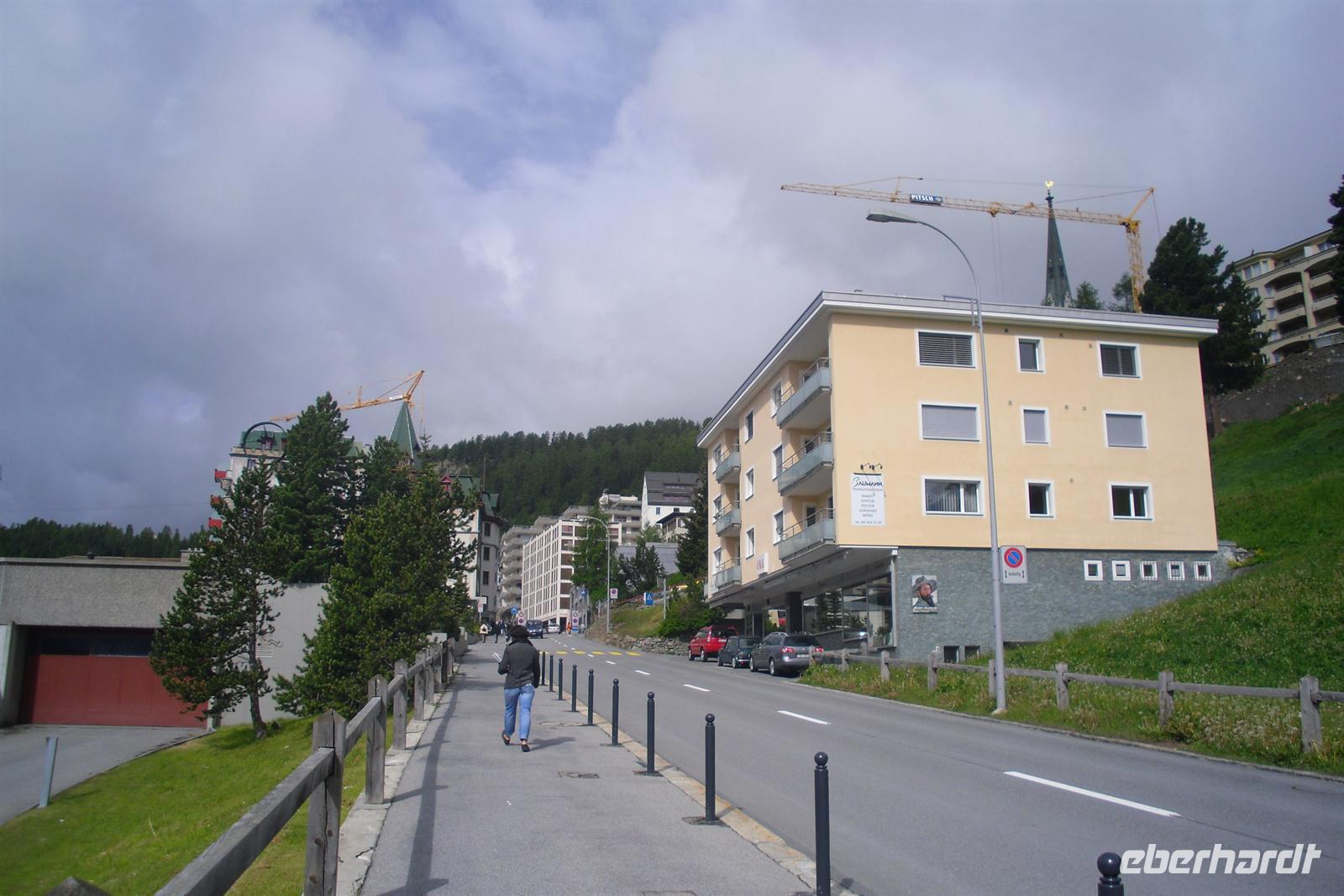 Am Vormittag unternahmen wir einen geführten Ortsrundgang in St. Moritz. Der Ort ist mit seinem kosmopolitischen Ambiente einer der beliebtesten Ferienorte der Welt. Er verdankt seine Bedeutung ursprünglich seinen Heilquellen, die seit gut 3000 Jahren bekannt sind und war Geburtsort des Ende des 19. Jahrhunderts einsetzenden alpinen Wintertourismus. Wahrzeichen von St. Moritz ist der 33 Meter hohe "Schiefe Turm", der erstmals 1139 urkundlich erwähnt wurde und der Rest einer alten Kirche ist.