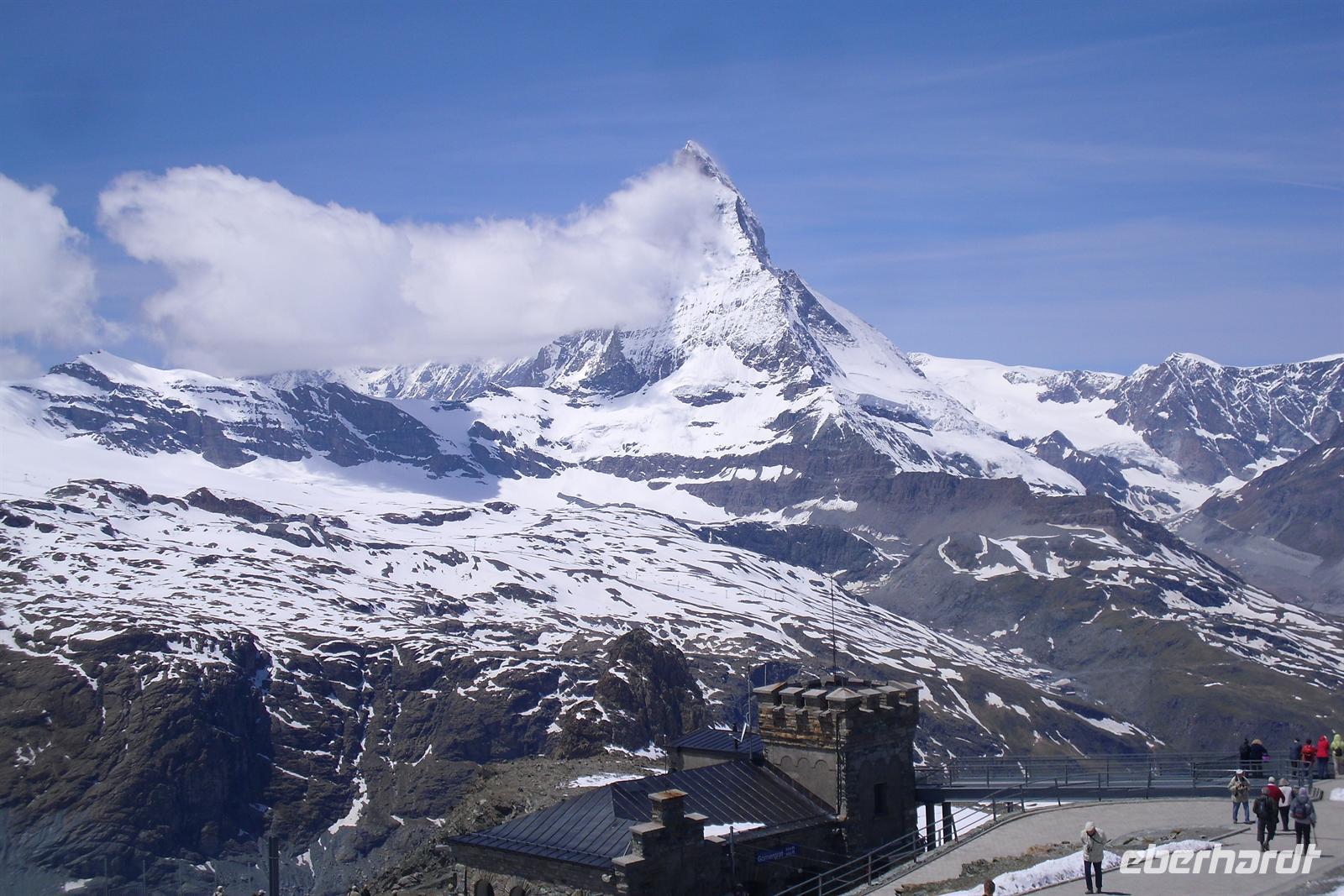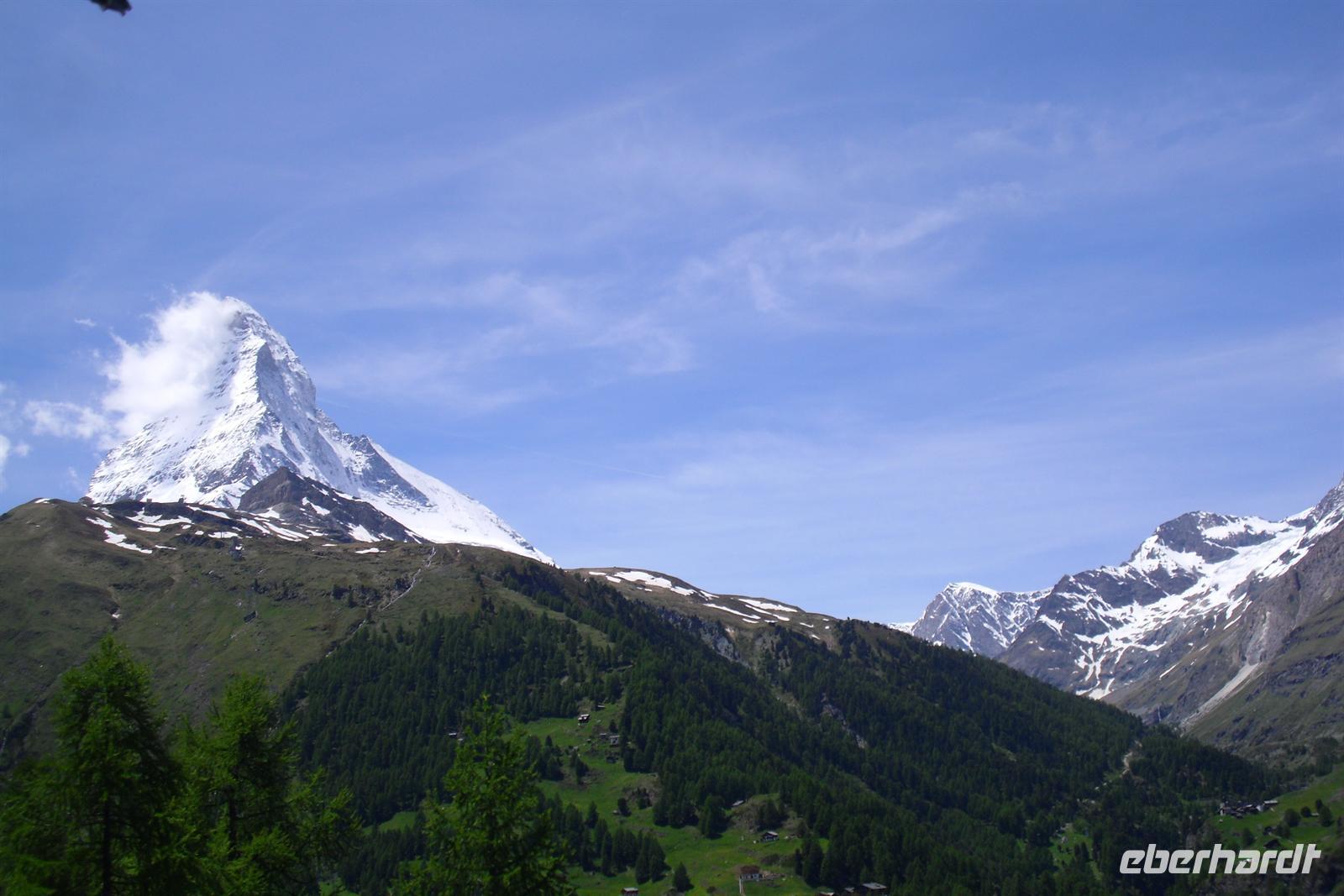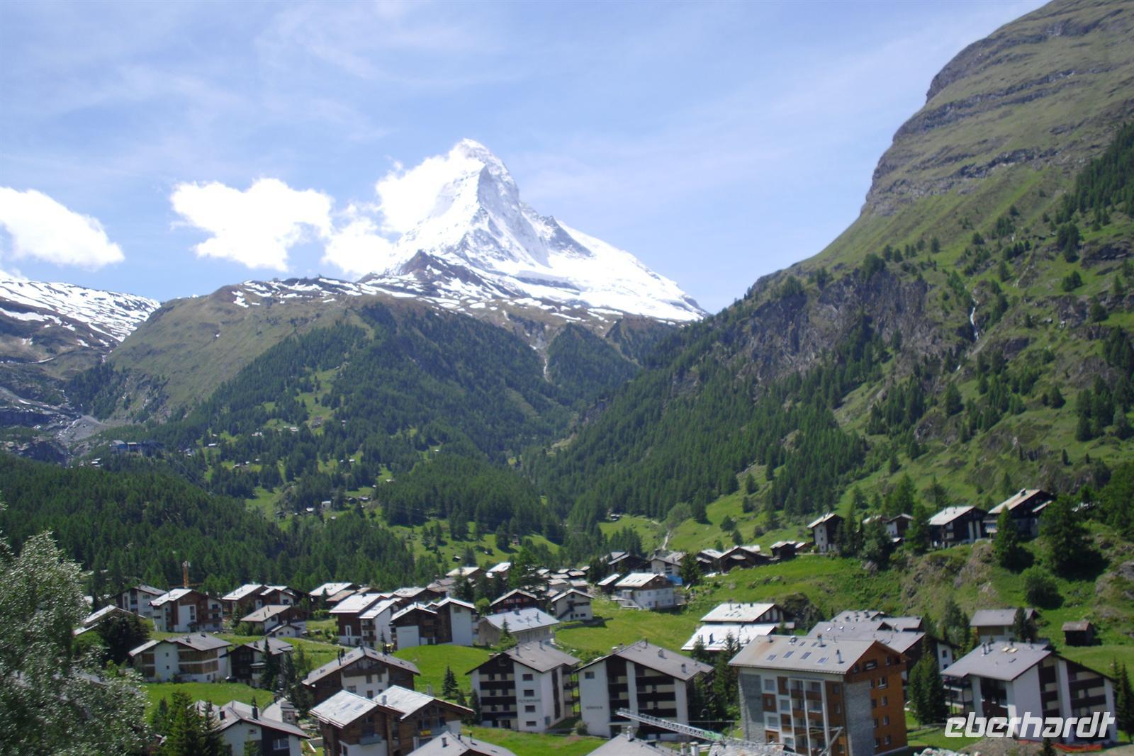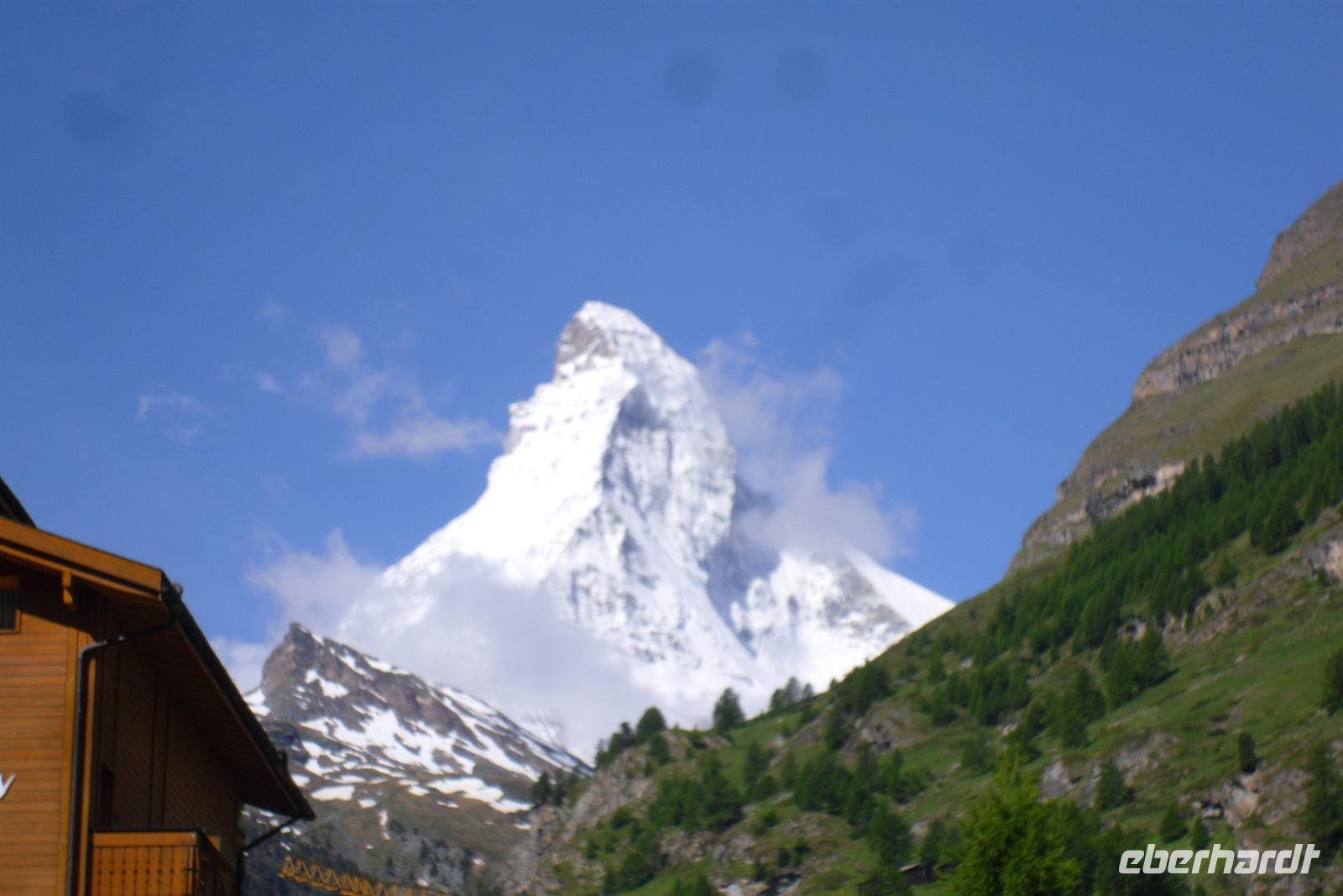 die meisten Gäste schon am zeitigen Vormittag mit der Zahnradbahn auf den 3.089 Meter hohen Gornergrat. Das Panorama und der Blick auf einige Viertausender war atemberaubend und einfach unbeschreiblich! Auch für einen individuellen Spaziergang in Zermatt blieb noch genügend Zeit. Besonders interessant ist das alte Zermatt mit den typisch Walliser Holzhäusern. Diese Häuser stehen häufig auf sogenannten "Mäuseplatten" und dienten früher dazu, daß keine Mäuse an die Vorräte rankamen. So erlebte jeder diesen Tag nach seinen eigenen Vorstellungen. Am Abend trafen wir uns alle wieder und ließen beim Abendessen den Tag noch einmal Revue passieren.