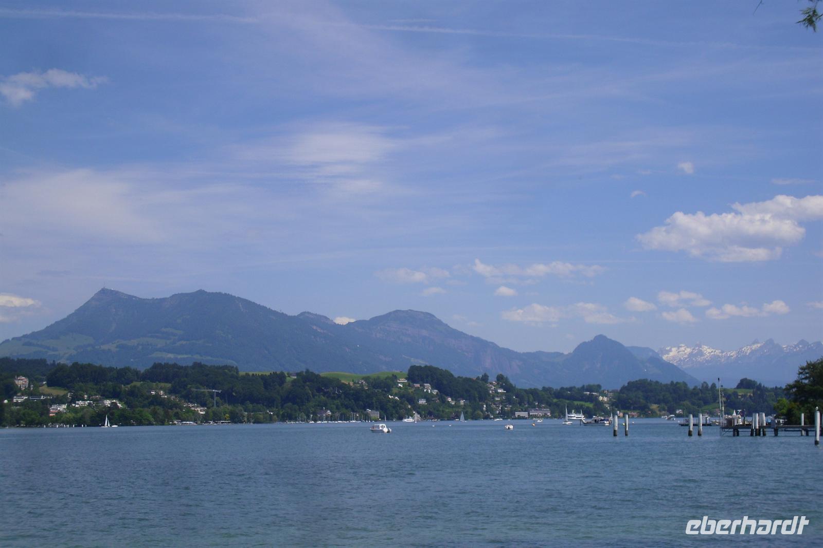 Mit unserem Gepäck war übrigens alles bestens organisiert, niemand mußte sich darum kümmern. Unser Buschauffeur André, das Hotel und letztendlich die Bahn kümmerten sich darum, dass alle Koffer rechtzeitig im Bus waren. Nach einer etwa 2-stündigen Fahrt über Visp, Brig und das obere Rhonetal erreichten wir den 2165 Meter hohen Grimselpass. Auf der Passhöhe schauten sich die meisten von uns im Murmeltierpark um! Anschließend legten wir eine Mittagspause am Käsestand von Agnes Käppeli ein, dort gab es frisches Brot, Käse und Wurst - einfach lecker! Am Nachmittag erreichten wir schließlich Luzern mit der berühmten Kapellbrücke. So konnten wir immerhin behaupten, die zwei meistfotografierten Bildmotive der Schweiz wahrhaftig gesehen zu haben! Die Kapellbrücke wurde übrigens in der ersten Hälfte des 14. Jahrhunderts als Teil der Stadtbefestigung errichtet und hat ihren Namen von der benachbarten St.-Peters-Kapelle. Nach einem Stadtbummel durch Luzern brachen wir zur letzten Etappe des heutigen Tages auf. Vorbei an Zürich und Winterthur führte uns der Weg nach St. Gallen. Im Hotel "Radisson Blu" verbrachten wir nunmehr die letzte Nacht auf dieser Reise. Da bis zum Abendessen noch etwas Zeit war, nutzten einige unserer Gäste nach unserer Ankunft die Möglichkeit zu einem kleinen Bummel im Stadtzentrum von St. Gallen. Im 7. Jahrhundert gründete hier der irische Wandermönch Gallus eine Einsiedelei. Aus dieser entstand danach ein Kloster und bald darauf unter dem Abt Otmar die Benediktinerabtei, die vom 9. bis zum 11. Jahrhundert eine Hochblüte erlebte und durch Schule und Bibliothek zu einem der kulturellen Brennpunkte nördlich der Alpen wurde.
