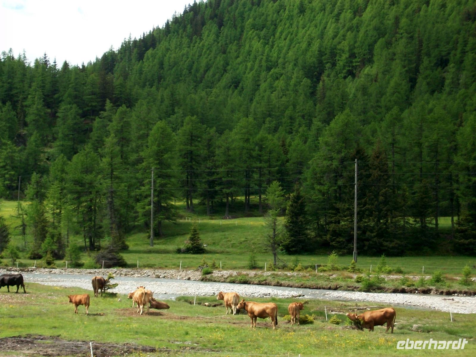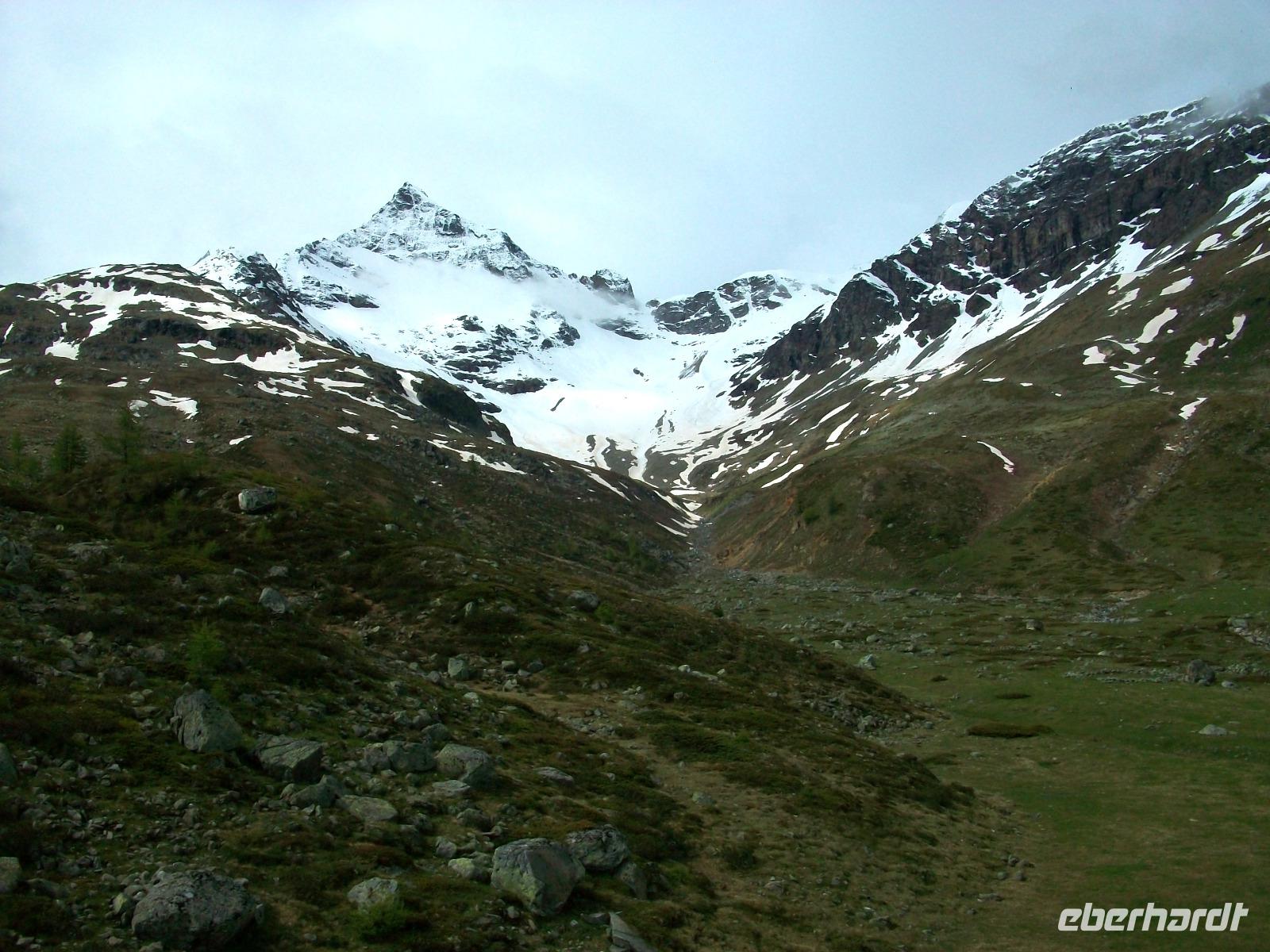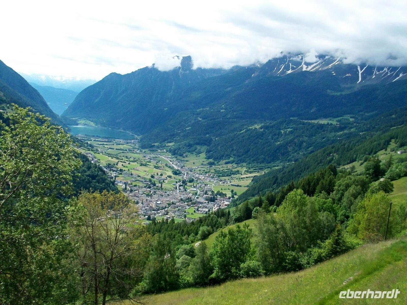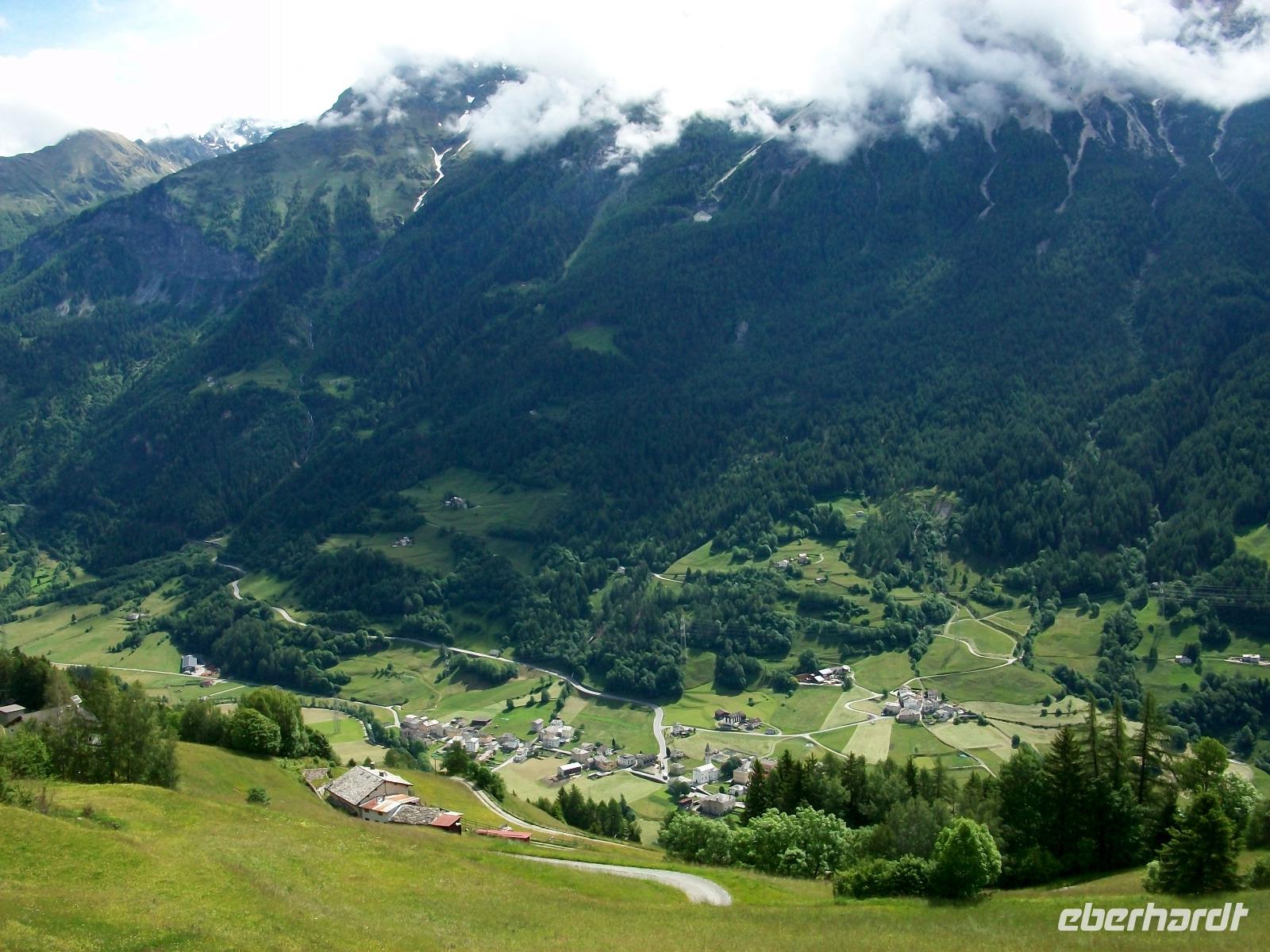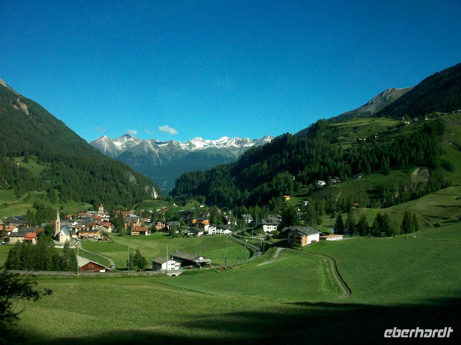 21.6.2016. Beim ersten Blick aus dem Fenster sehen wir zunächst dicke Wolken über den Engadiner Bergen hängen. Aber das Wetter soll sich bessern.