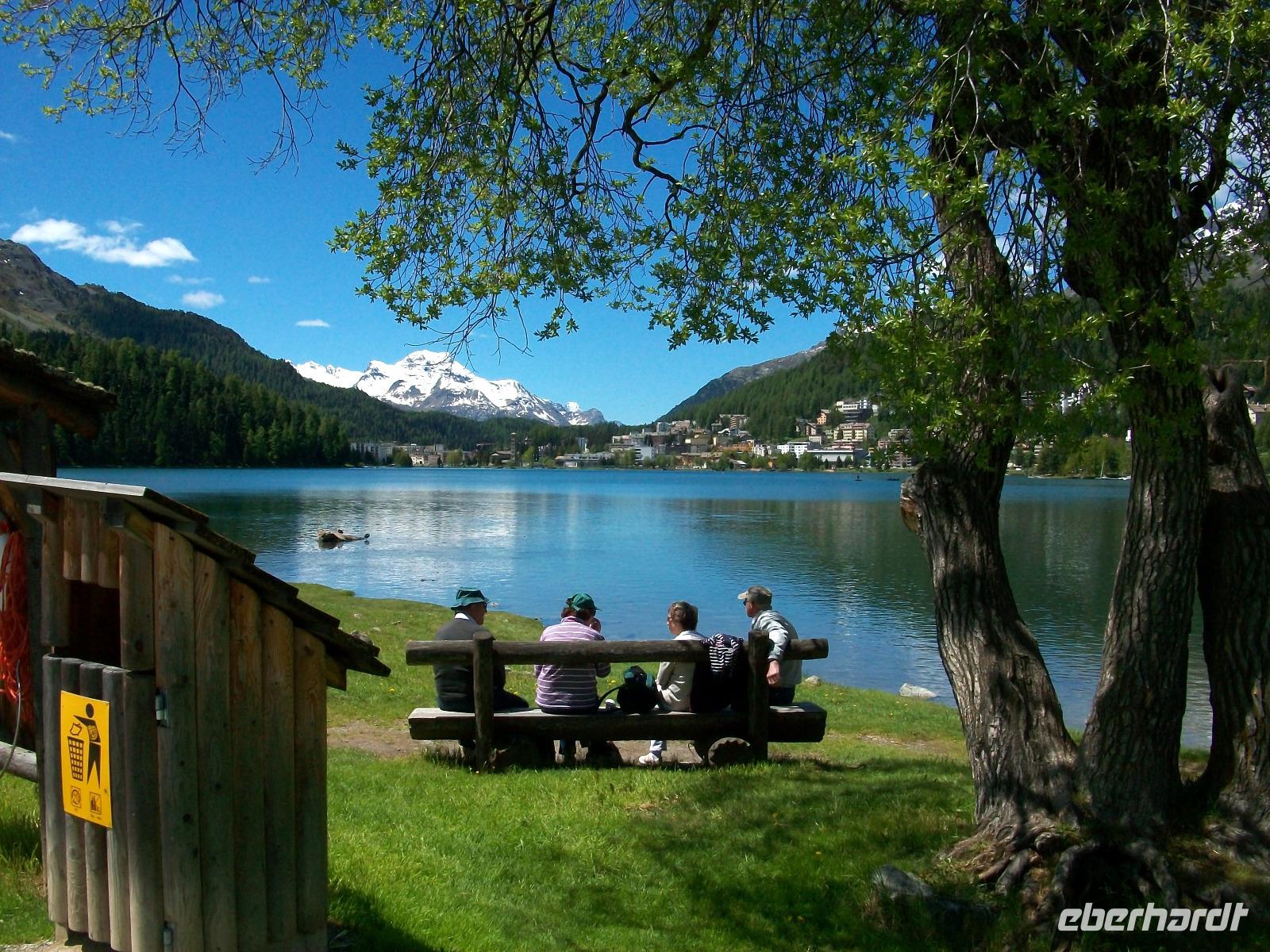 20.6.2016. Der Schlaf in den weichen Betten tat uns gut und somit können wir mit frischem Elan den Tag beginnen der soviel schöne Eindrücke für uns bereithalten wird. Von unserem Übernachtungsort Sils ist es nicht weit bis zu unserem ersten Ziel, dem Nobelort Sankt Moritz. Am Bahnhof werden wir schon von unserer Ortsführerin empfangen, sie wird uns nun in den nächsten zwei Stunden diesen besonderen Ort zeigen in dem sich auch immer die Prominenz dieser Welt die Klinke in die Hand gibt.