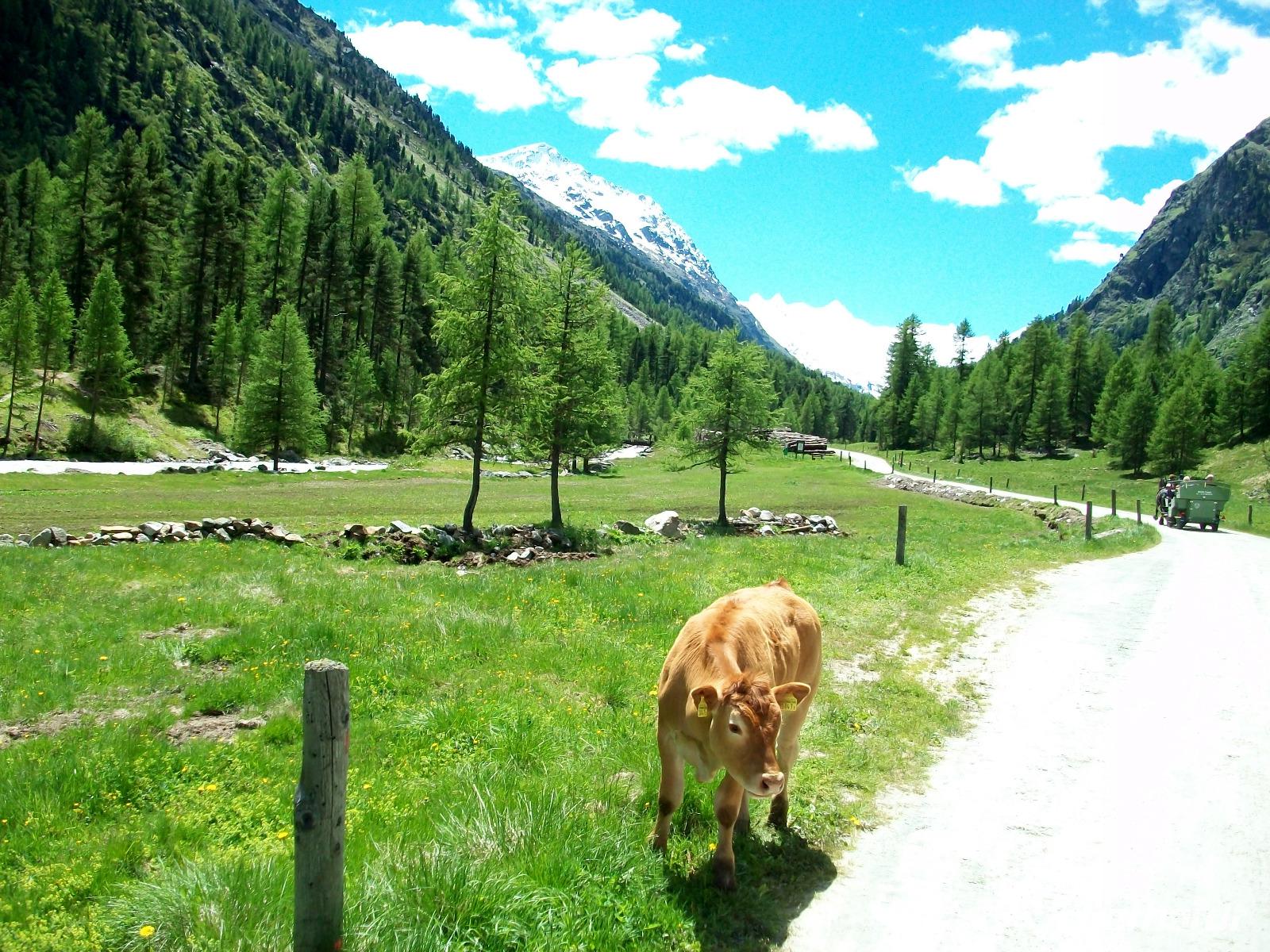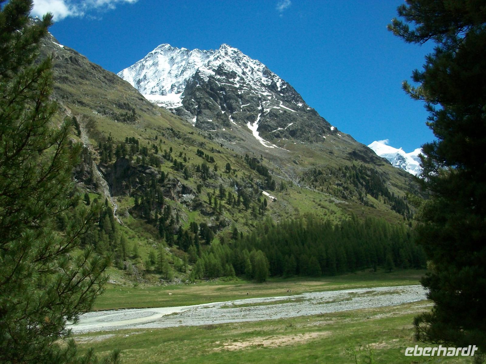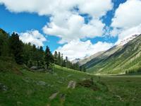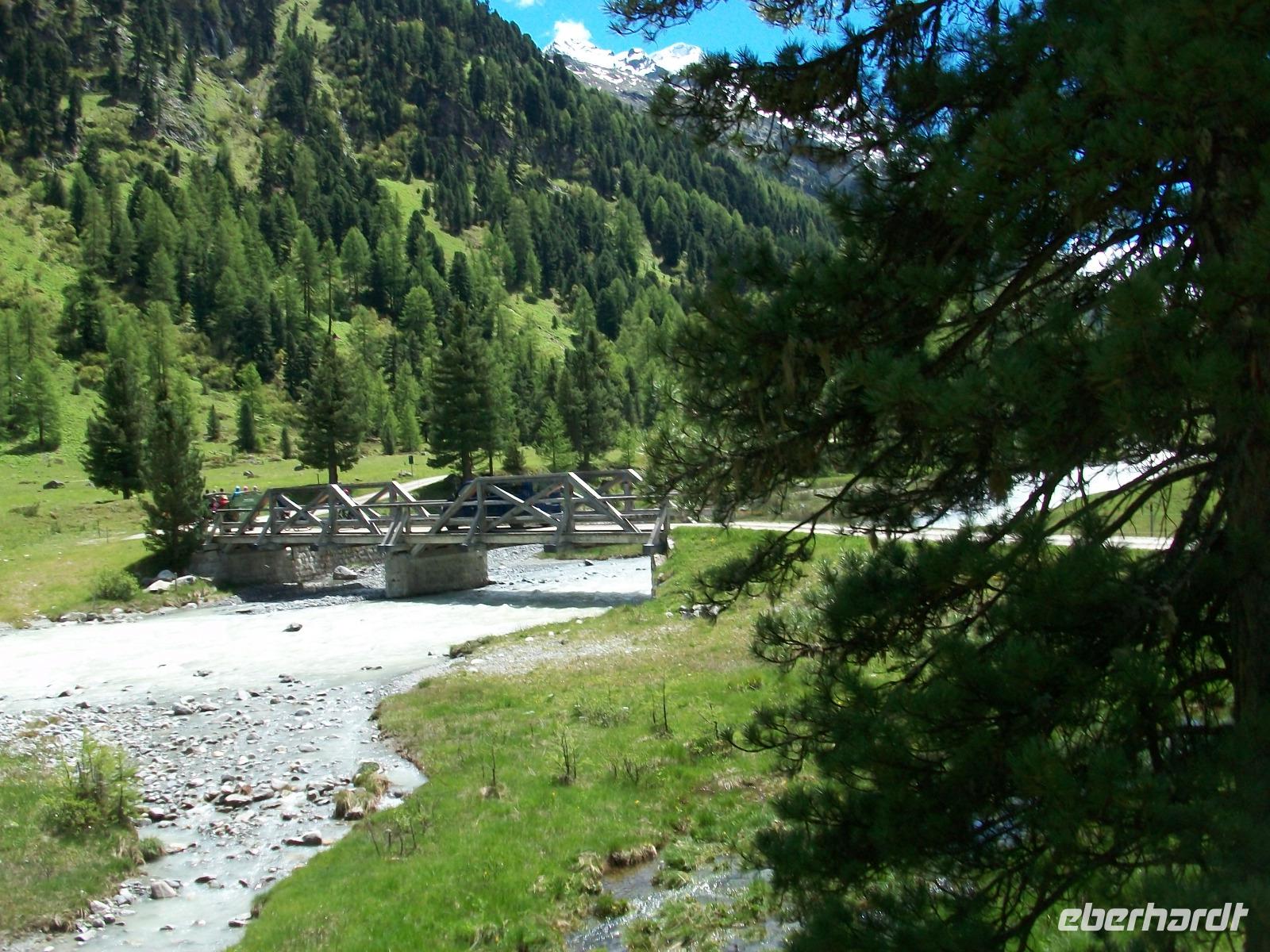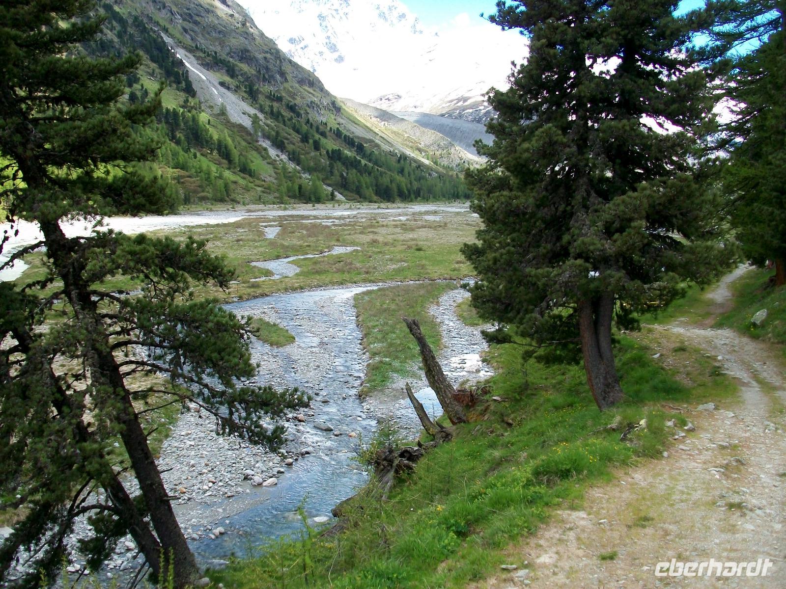 Und diese Fahrt kann romantischer nicht sein; wir gelangen durch das unberührte Grün des lichten Waldes durch den sich der Wildfluss windet und schäumend und tosend das Wasser zu Tal bringt. Die Pferde ziehen geduldig ihre Last und nach einer guten Stunde haben wir unser Ziel erreicht. Eine gewaltige Kulisse tut sich vor unseren Augen auf. Am Talende glitzert frisch gefallener Schnee weiß in der Sonne, während es hier unten im Tal grünt und blüht. Zur himmlischen Ruhe gesellt sich das Rauschen des Flusses, das ist Natur pur und bei einem Bummel durch diese schöne Landschaft können wir so richtig entspannen.