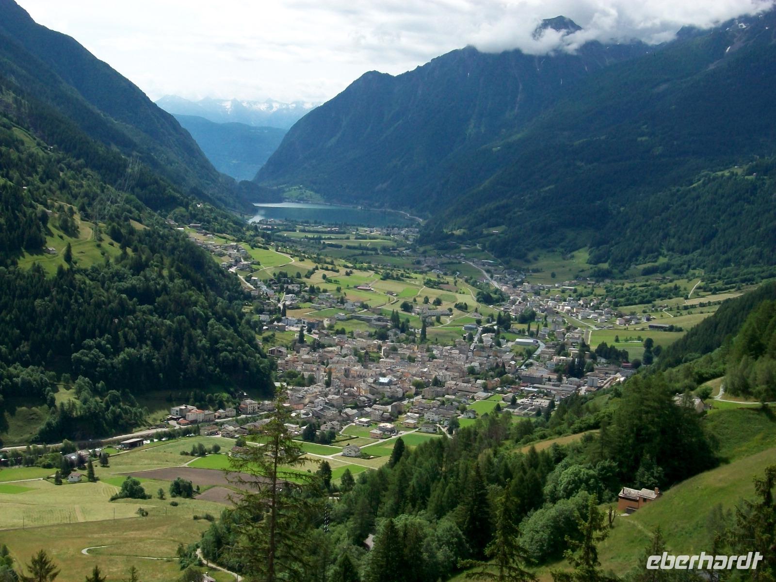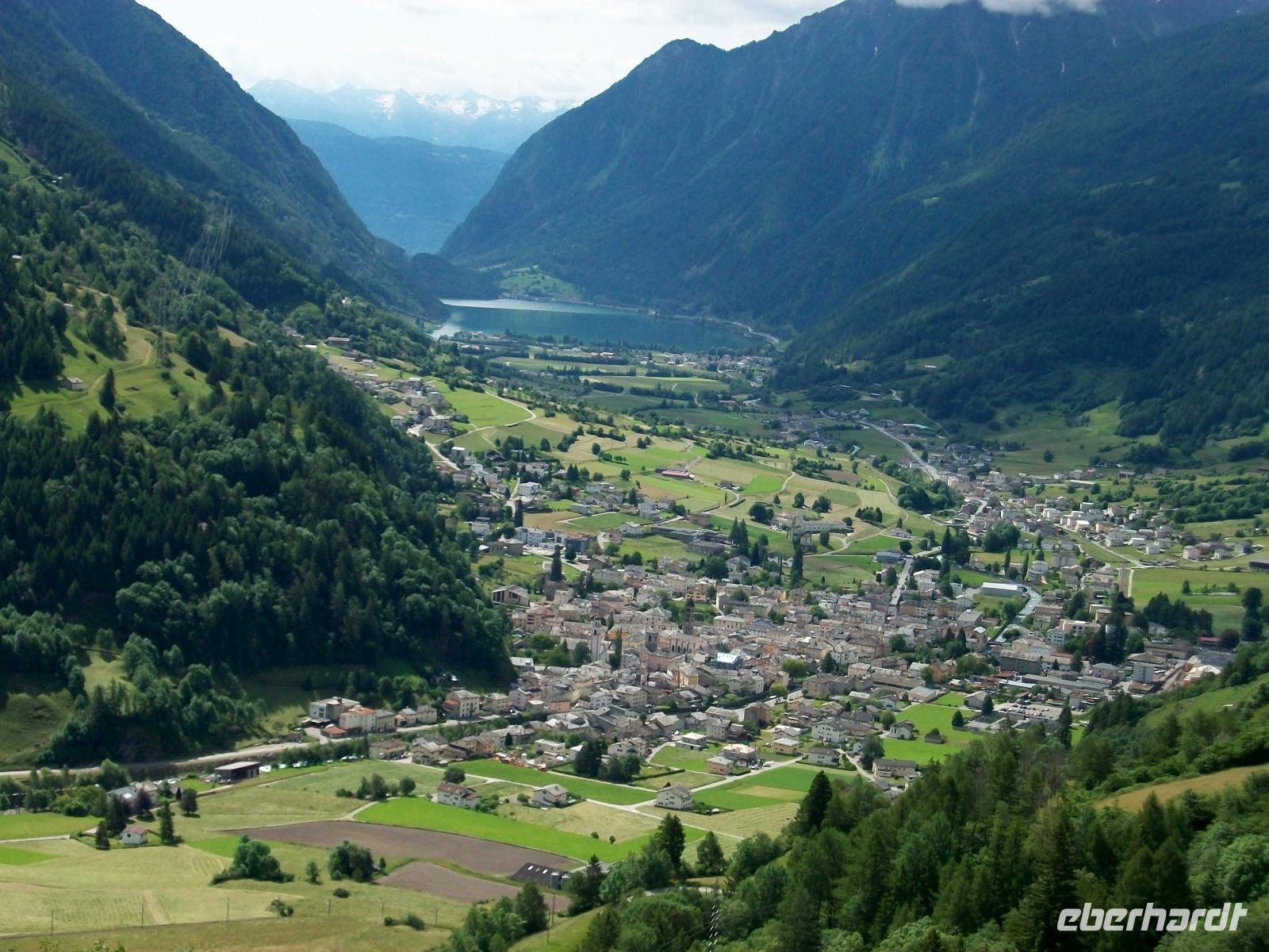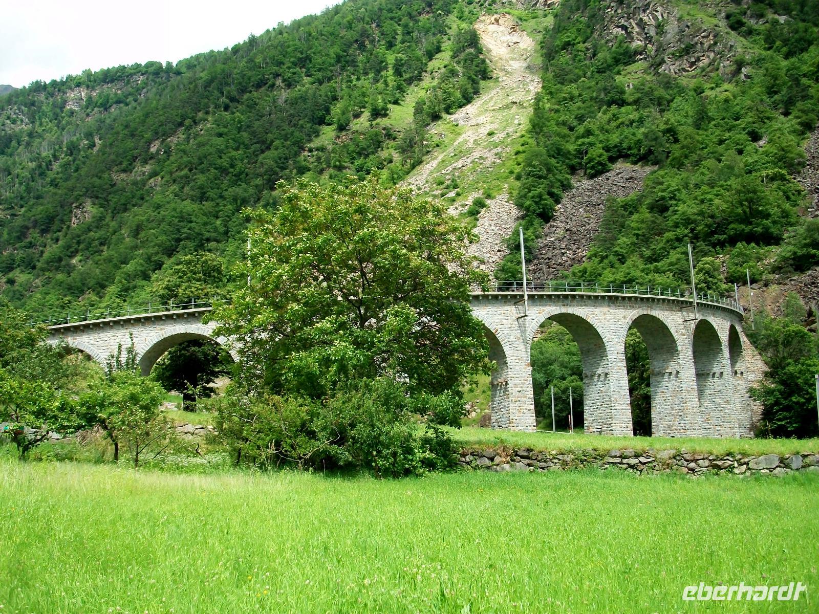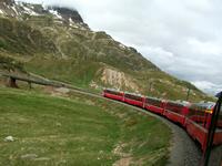 Ein weiterer großer Höhepunkt dieser Reise steht an und es ist auch ein besonderer Tag für unsere Eisenbahnfreunde. Zunächst gelangen wir nach Sankt Moritz zum Bahnhof, bald haben wir in den für uns reservierten Panoramawagen Platz genommen und erwarten die Abfahrt. Diese erfolgt auch pünktlich mit einem Pfiff und langsam setzt sich der Zug in Bewegung. Die schöne Landschaft des Oberengadins gleitet an den Fenstern vorbei; rechts ist auch die gigantische Eismasse des Morteratschgletschers zu sehen. Der Zug gewinnt an Höhe, bald sind wir über der Baumgrenze und im Reich der Murmeltiere angelangt. Wir überschreiten den Scheitelpunkt mit der spärlichen Vegetation und durch mehrere Kehrtunnel geht es wieder hinab. Wir sehen die schönen Häuser von Poschiavo im Tal liegen, fahren auf dem Kreisviadukt von Brusio mit dem Zug einmal im Kreis herum und langen zum Mittag an unserem Ziel an, es ist der italienische Ort Tirano.