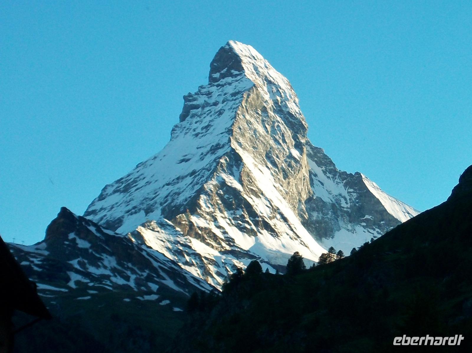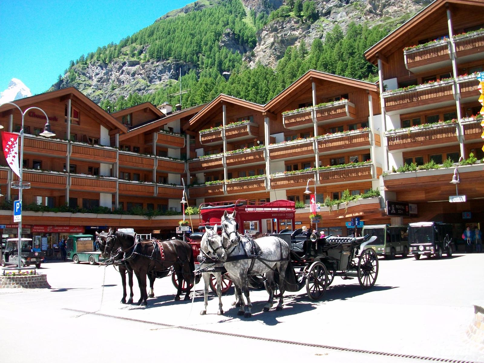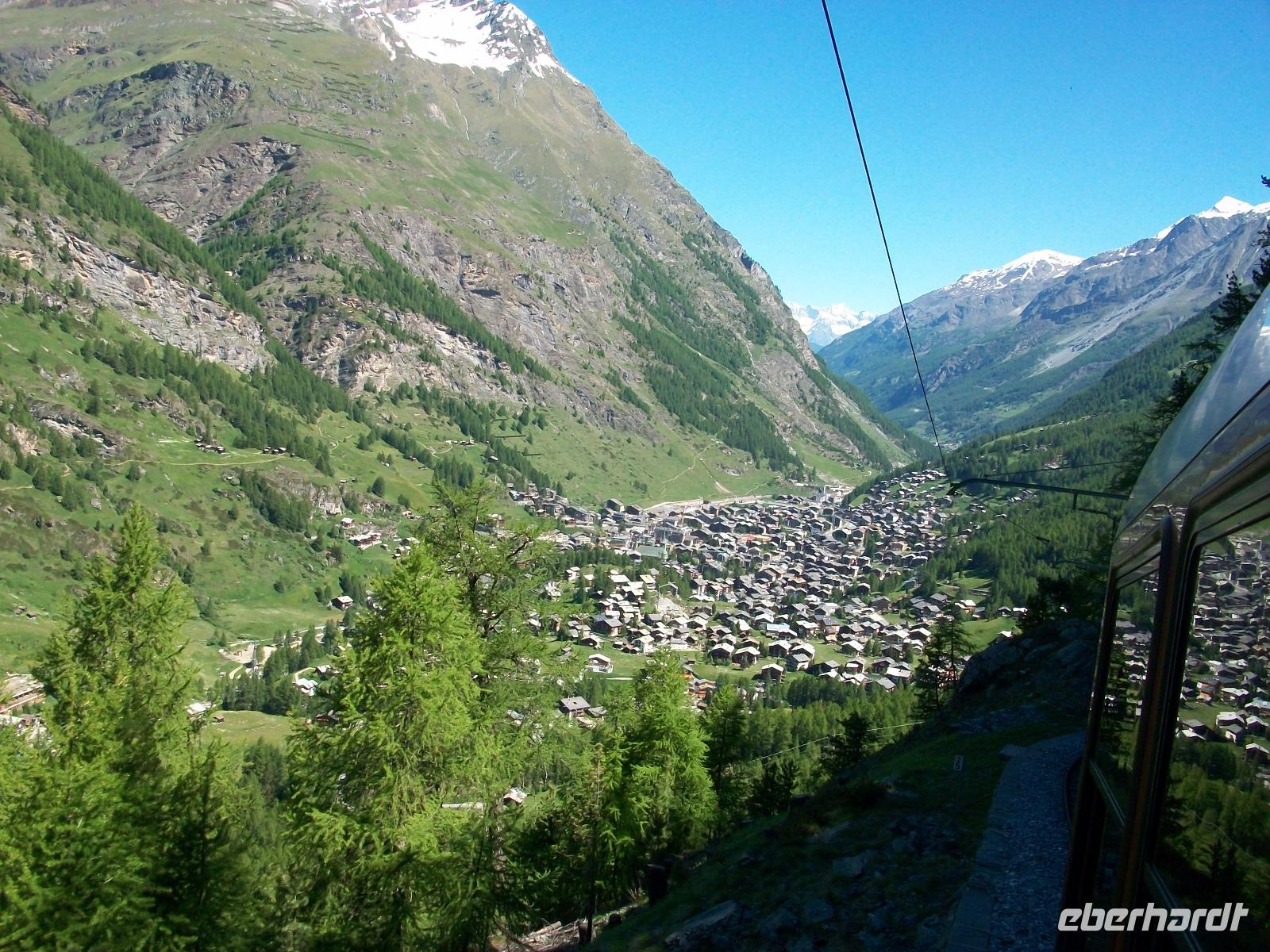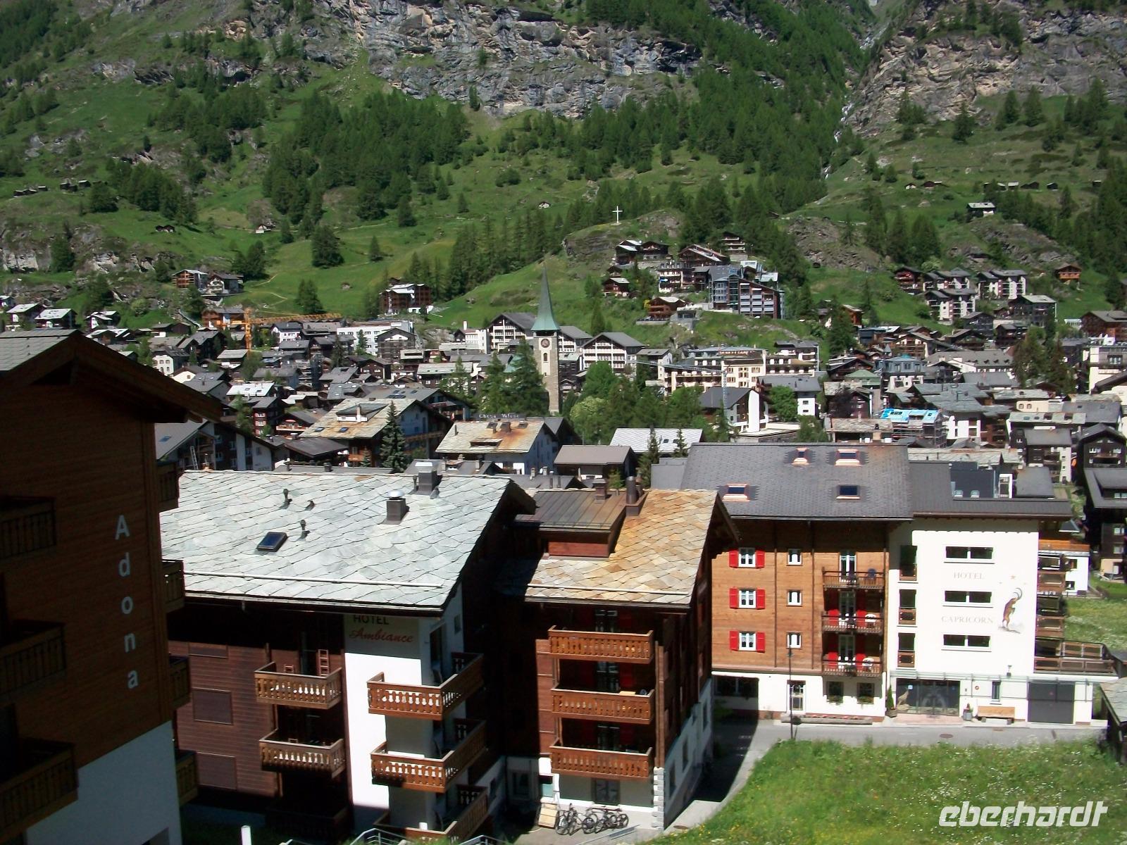 Warme Luft empfängt uns im Bergort und wir werden begrüßt vom Matterhorn das schon heute in voller Schönheit zu sehen ist. Schnell ins Hotel und dann ab zu einer ersten Erkundung von Zermatt! Zum Abendessen sind wir uns einig: das war ein besonders schöner Tag.