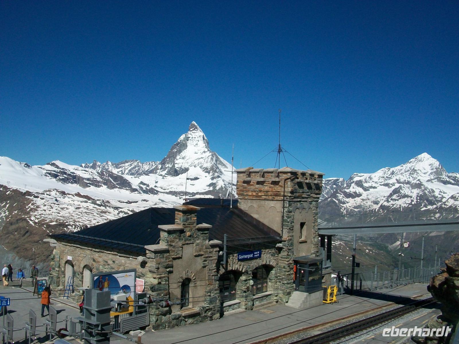 Schnell gewinnen wir an Höhe; der Blick aller Reisenden geht hinüber zum Matterhorn, seine Magie zieht jeden in seinen Bann und es ist in seiner vollen schneebedeckten Pracht in den verschiedenen Perspektive zu sehen, so wie der Zug seinen Verlauf nimmt.