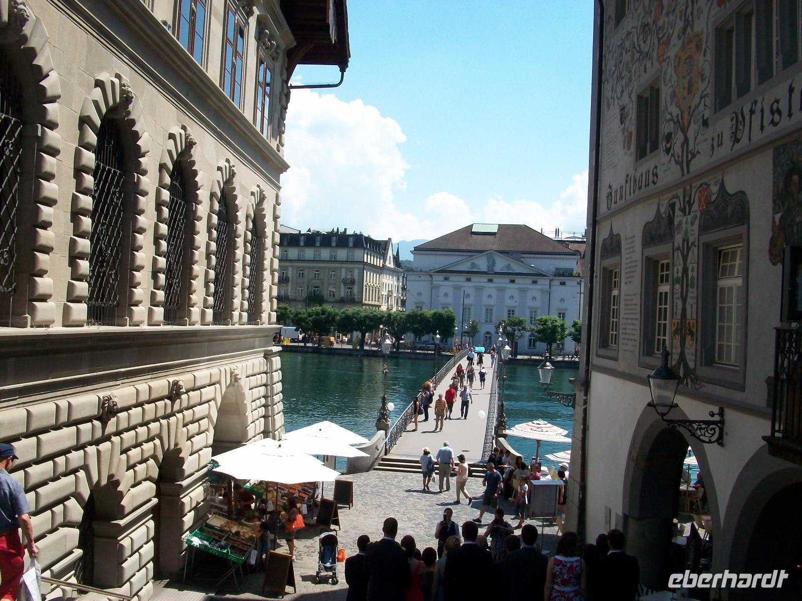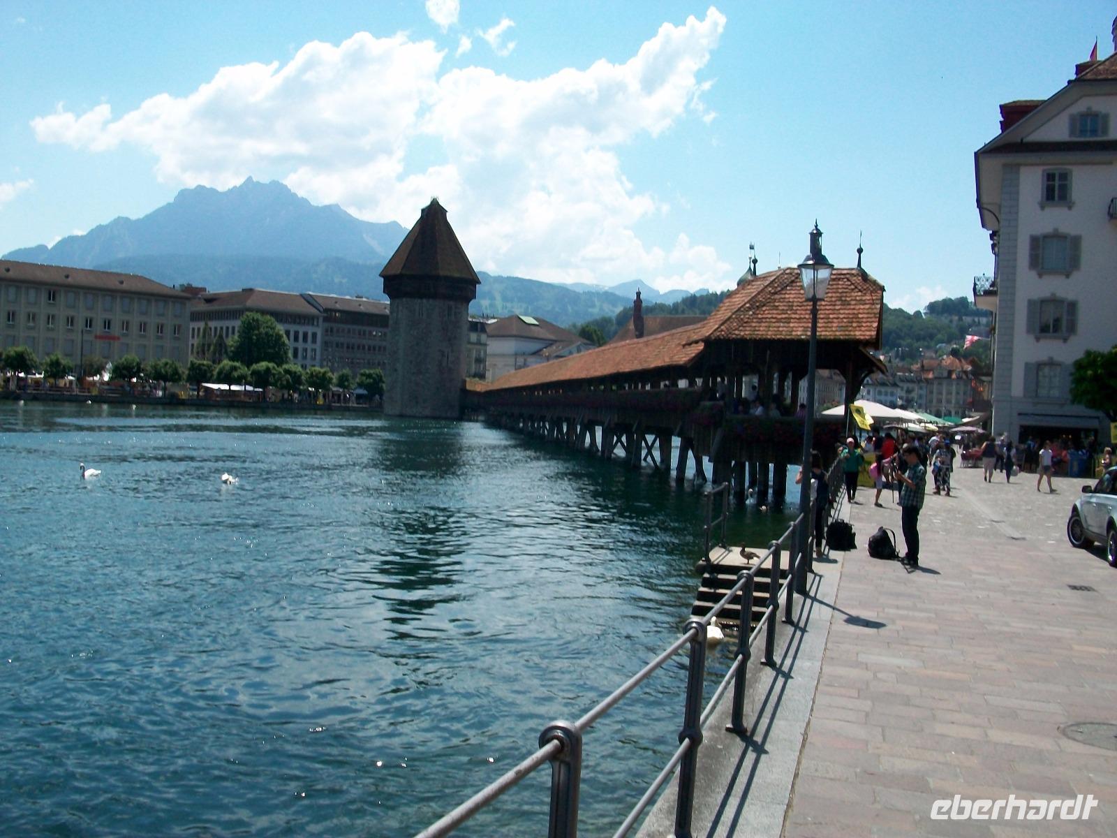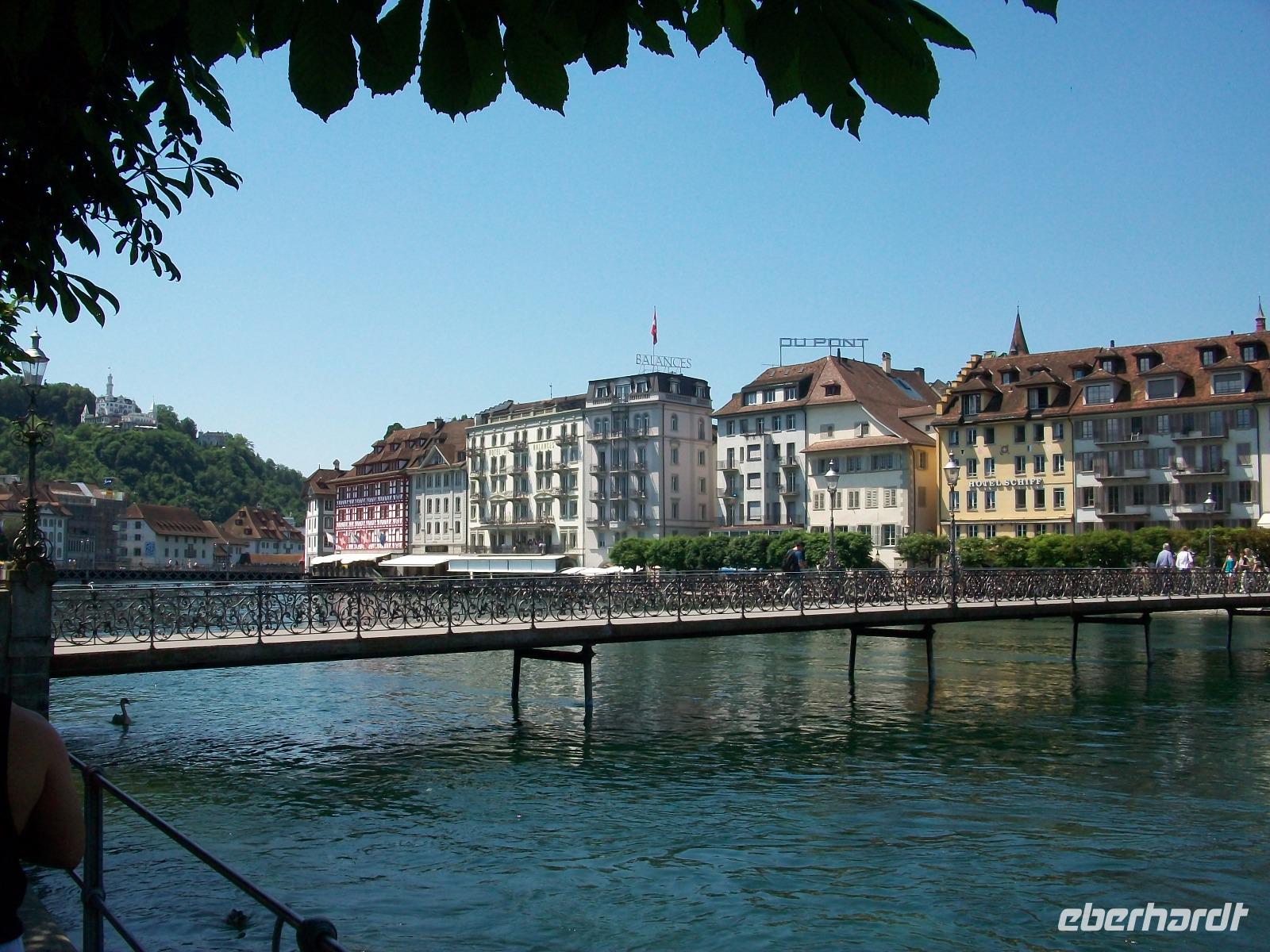 Mit dem Pendelzug erreichen wir Täsch, hier steht unser Reisebus der uns zunächst abwärts in das Rhonetal bringen wird. Auch heute hat sich der Frühsommer zur Höchstform aufgeschwungen; nach zweistündiger Fahrt geht es in atemberaubenden Serpentinen hinauf zum Grimselpass, hinter uns liegen die schneebedeckten Berge des Tessins, vor uns das Berner Oberland und oben auf dem Pass, über 2 000 Meter über dem Meer, genießen wir dicke Schneereste und sommerliche Temperaturen gleichermaßen, ein eigentümliches Zusammenspiel. Nach der Mittagspause geht es hinab ins Hasle - Tal mit seinen zahlreichen Stauseen; später treffen wir auf die Aare und ersteigen eine letzte Höhe, den Brünigpass. Hier oben beginnt dann die Zentralschweiz und entlang weiterer romantischer Seen inmitten üppigen Grüns, gelangen wir nach Luzern. Dieser reizvollen Stadt statten wir selbstverständlich einen Besuch ab; ein Gang über die Kapellbrücke, ein Bummel durch die pittoreske Altstadt oder einfach nur ein Blick von den zahlreichen Bänken auf die Weiten des Vierwaldstätter Sees, ich glaube an diesem warmen und sonnigen Nachmittag war wohl für jeden etwas dabei.