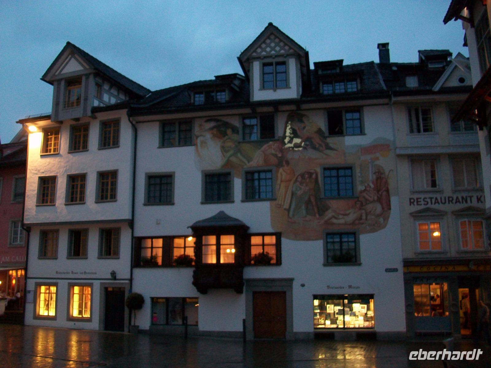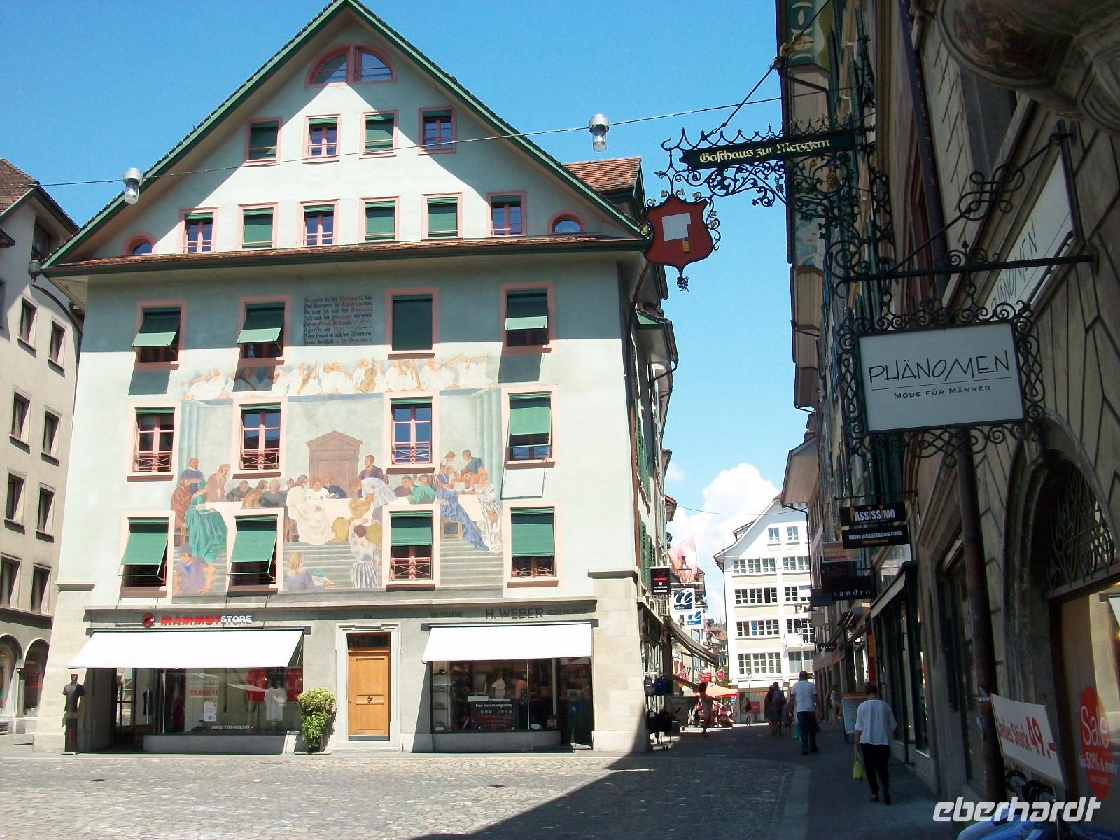 Dazwischen Restaurants und Geschäfte die das heutige moderne Leben repräsentieren, dieser Mix macht Sankt Gallen so einmalig und somit hält dieser Vormittag noch eine besondere Impression dieser Reise am Schluss für uns bereit.