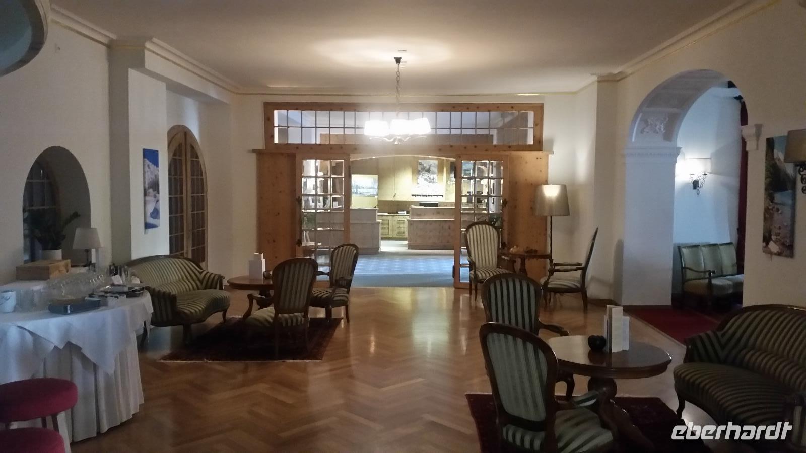 Die Fahrt verlief entspannt, sodass wir ohne Stau die Raststätten Heidiland erreichten. Vorbei an Chur ging es über den Julierpass nach Sils Maria. Dort wurden wir schon erwartet und freundlich begrüßt. So begann der entspannte Urlaub mit einem Willkommenstrink in der Hotelhalle. Zum Abendessen gab es dann ein leckeres 5-Gang-Menü, was allen Gästen sehr gut schmeckte. So konnte der erste Abend entspannt ausklingen.