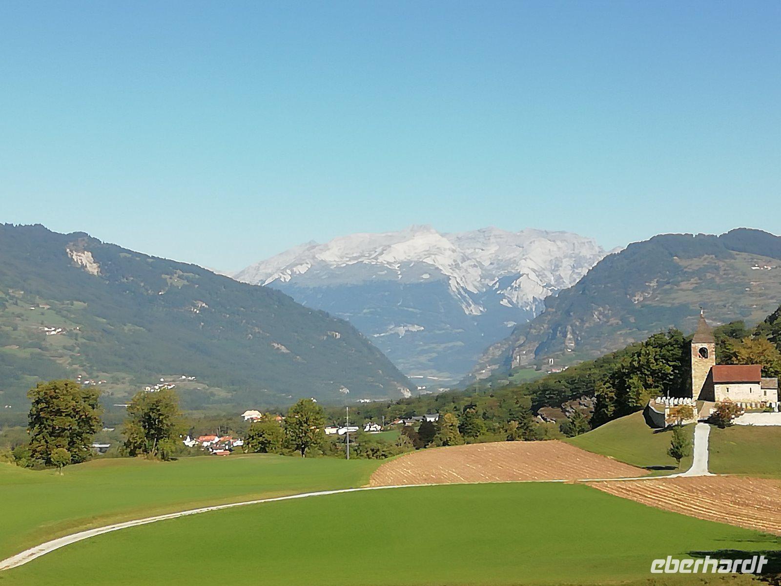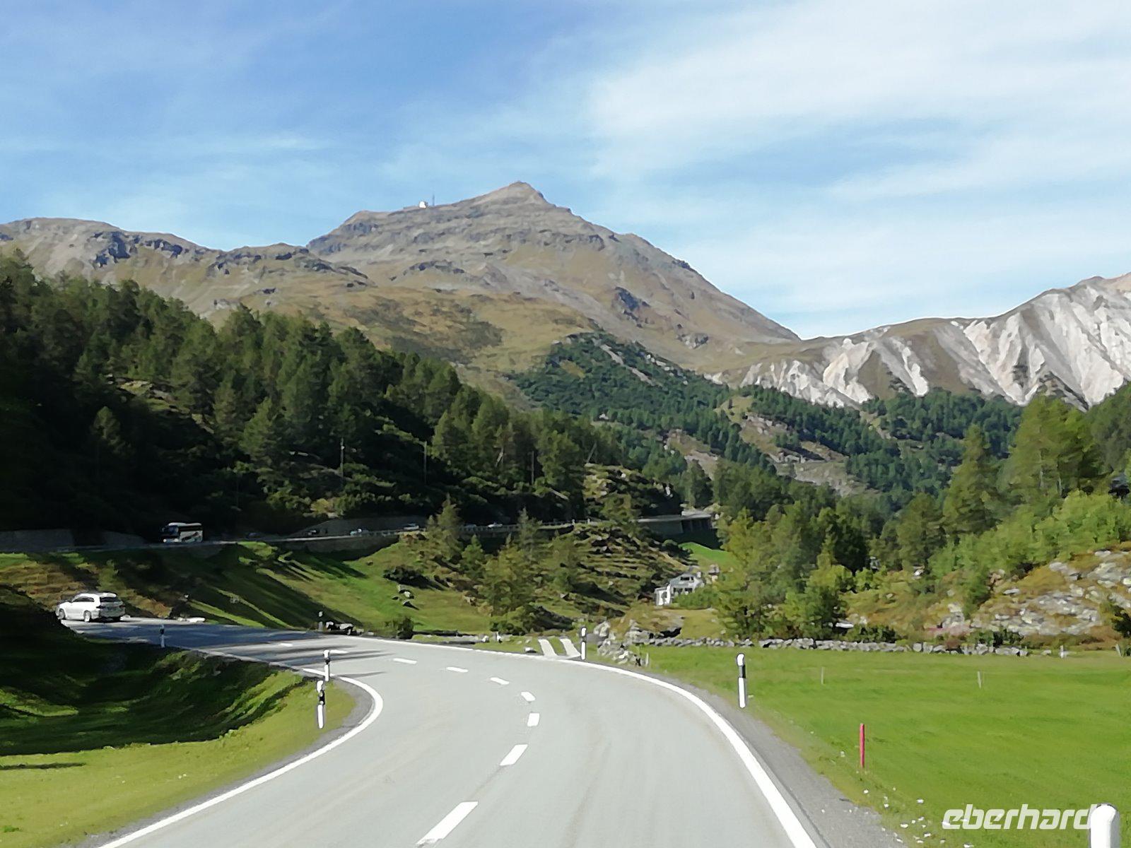25 Eberhardt-Reisegäste freuen sich auf eine besondere Reise in die Schweiz. Pünktlich 6 Uhr starten wir mit den ersten Gästen in Dresden. An den einzelnen Zustiegsstellen entlang der Autobahn wird die Gruppe größer. Anfangs kommen wir sehr gut voran. Nach Ulm geht es aber leider eine Stunde nur noch stockend weiter. Wir fahren dann durch den Pfändertunnel und ein Stück durch Österreich. Auch vor dem Grenzübergang Lustanau/Au stockt der Verkehr wieder. So sind wir erst gegen 16.30 Uhr in der Schweiz. Es geht vorbei an Chur, Thusis und Tiefencastel. Dann „klettern" wir hinauf zum Julierpass, machen hier einen kurzen Fotostopp. Nun trennen uns nur noch wenige Kilometer von Sils-Maria, wo sich unser 4-Sterne-Hotel „Edelweiß" befindet. Es wurde bereits 1876 gegründet. Nach der Vergaben der Zimmerschlüssel stoßen wir mit einem Willkommenssekt auf erlebnisreiche Tage an. Schnell sind die Zimmer bezogen. Diese präsentieren sich im Bündner Stil mit Arvenholzmöbeln. Dann erwartet man uns zum Gourmet-Menü im denkmalgeschützten Jugendstil-Speisesaal. Dieser ist einzigartig im Engadin und bildet auch die kommenden Tage einen stilvollen Rahmen für unsere Mahlzeiten. Nach diesem langen Tag freuen sich nun alles aufs Bett.