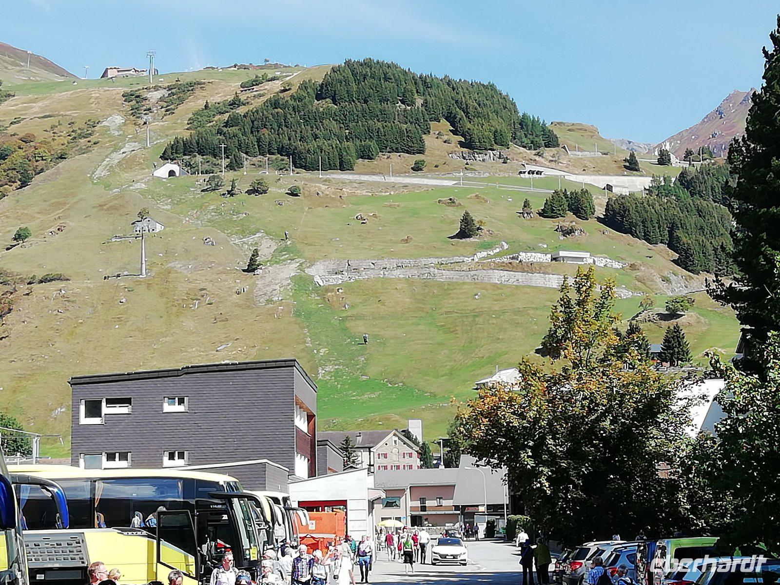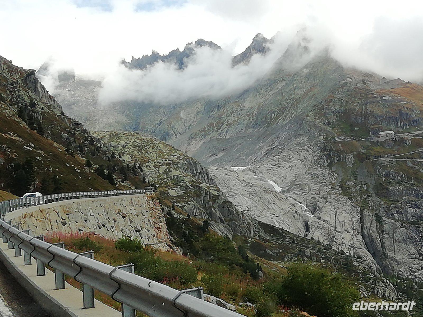 Von Zermatt müssen wir uns heute leider verabschieden. Gern wären wir noch länger geblieben. Mit dem Zug fahren wir nach Täsch, wo Gisela mit Bus und Gepäck schon auf uns wartet. Durch das Mattertal und das Vispertal geht es hinunter zur Rhone und weiter durchs Goms. In Gletsch beginnt die Straße über den Grimselpass, die uns auf eine Höhe von 2165 Meter bringt. Dabei genießen wir bei Schweizer Folkloremusik den Blick zurück ins Tal. Auf der Passhöhe bleibt Zeit für einen Besuch der Murmeltiere und für so manches Foto. Die Nordseite des Passes zeigt sich mit tiefhängenden Wolken - das sieht interessant aus. Wir machen einen Halt am Käsestand. Judith hat ein Käsepicknick vorbereitet und erklärt uns die verschiedenen Sorten. Wir lassen uns den „Mutschli", die Wurst und das frische Brot schmecken. Zum Abschluss schenkt Gisela noch ein Schnäpschen ein. Weiter geht die Fahrt zum Vierwaldstädter See. In Luzern bummeln wir durch die Altstadt und über die Kapellbrücke. Dann beginnt der letzte Abschnitt unserer heutigen Fahrt. Er führt uns u.a. vorbei am Zürichsee nach St. Gallen. 18 Uhr erreichen wir das Hotel „Radisson Blu" und treffen uns nach dem Bezug der Zimmer zum Abendessen. Alles Gäste sind sich einig: Das war landschaftlich ein toller Tag.