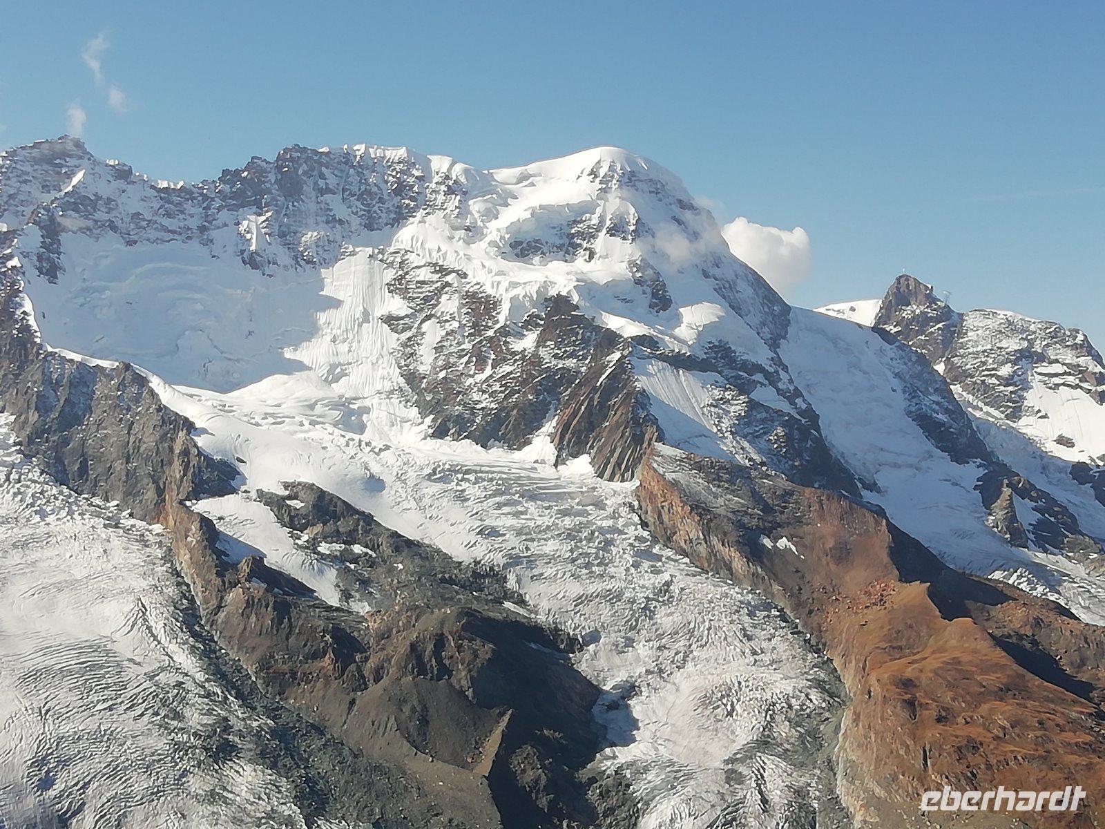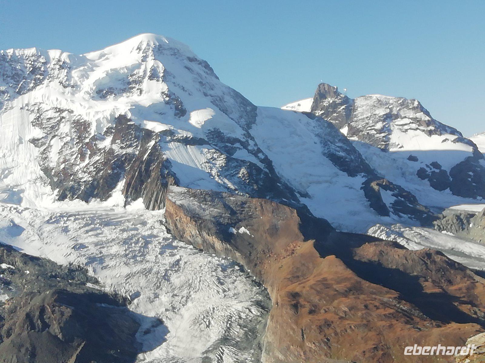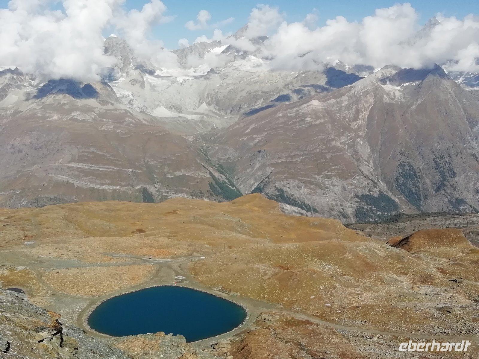 Nach dem Frühstück fahren wir gemeinsam mit der Bahn hinauf zum Gornergrat. Bereits während der 40minütigen Fahrt bietet sich uns immer wieder ein fantastischer Blick auf das Matterhorn. Wir genießen die Zeit auf dem Gipfel in der Sonne und können uns am unbeschreiblichen Panorama kaum satt sehen. Die Rundumsicht mit den beeindruckenden Gletschern, dem Kleinen Matterhorn, dem Breithorn und dem Monte-Rosa-Massiv ist einfach toll. Die meisten Gäste legen bei der Rückfahrt noch an der Station Rotenboden einen Halt ein, um zum Riffelsee zu gehen.