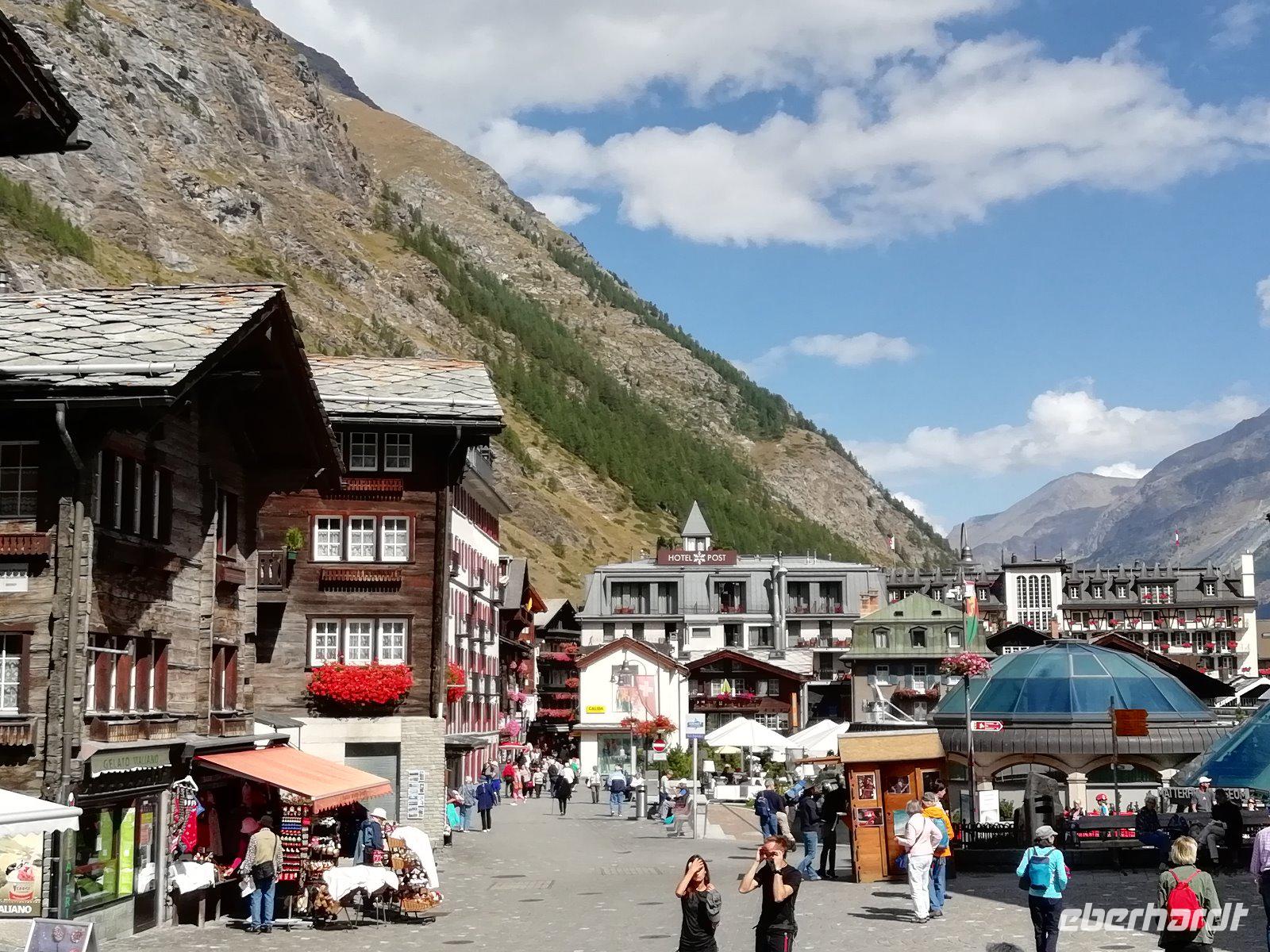 Danach bleibt noch Zeit für einen Bummel im Ort, denn Zermatt hat ja noch mehr zu bieten. So besuchen einige Gäste das Matterhornmuseum, das zu einem Rundgang durch die Geschichte des Ortes einlädt und eindrucksvoll die Erstbesteigung des Matterhorns schildert. Andere besichtigen den Bergsteigerfriedhof, schauen sich den Murmeltierbrunnen an, bestaunen die alten Holzhäuser, machen einen Einkaufsbummel oder trinken in einem der zahlreichen Restaurants Kaffee. Beim Abendessen sind sich einige: es war ein toller Tag in Zermatt.