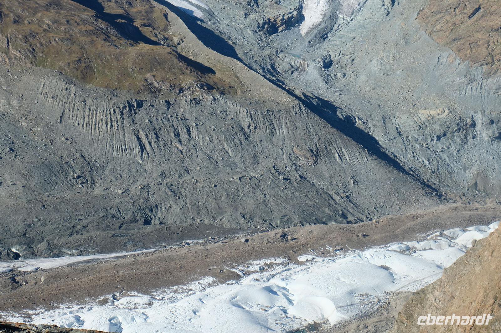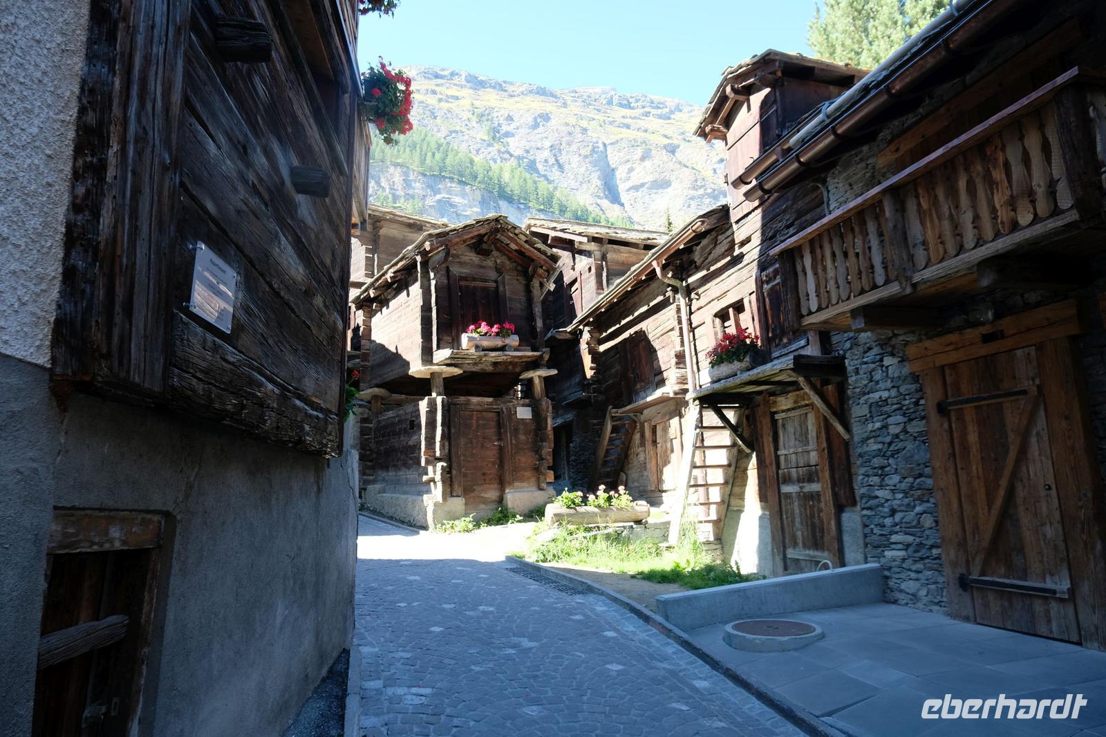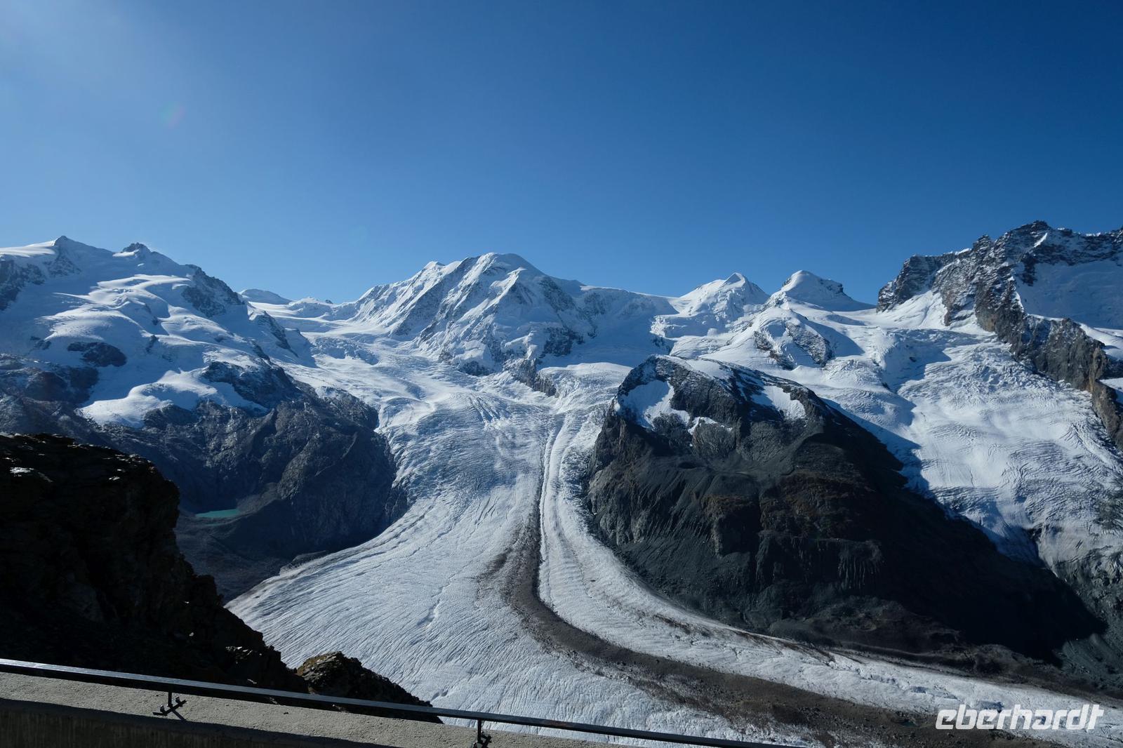 32 Personen hatten sich am Vorabend gemeldet, um mit mir auf den Gornergrat zu fahren. 8.42 Uhr setzte sich die höchste, frei im Gelände angelegte Zahnradbahn Europas auf den 3089 m hohen Berg in Bewegung. Oben angekommen hatten wir bei strahlendem Sonnenschein einen fantastischen Blick auf einige Viertausender und natürlich auch auf das Matterhorn, aber auch auf die leider immer kleiner werdenden Gletscher. Das weitere Programm war dann ganz individuell angepasst. Jeder konnte seinen Weg nach Zermatt selbst bestimmen. 15.00 Uhr unternahmen einigen Gäste mit mir einen kleinen Ortsbummel. Entlang der Vispa führte uns der Weg zu den alten Walliser Häusern auf ihren „Stelzen“, die Bahnhofstrasse entlang zum Murmeltierbrunnen, Matterhornmuseum und dem Bergsteigerfriedhof. Zum Abendessen gab es wieder ein leckeres 3-Gang -Menü und die Gäste hatten viele Erlebnisse auszutauschen.