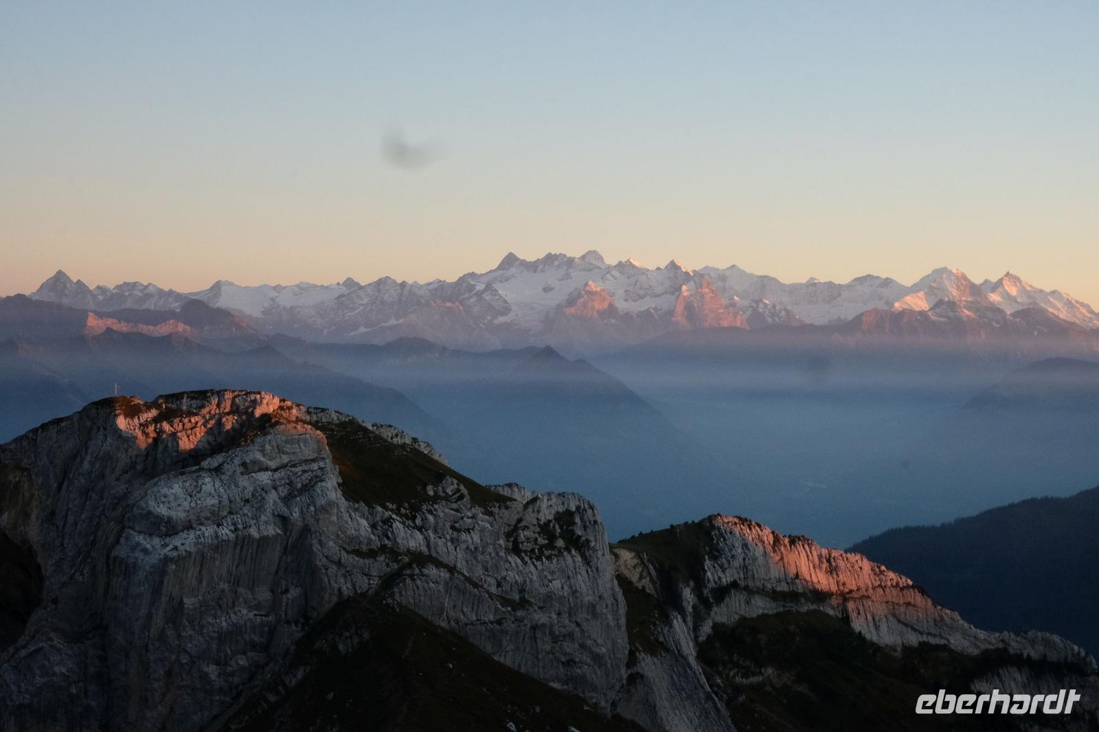 Nachdem unsere Koffer 7.30 Uhr im Hotel verladen und zum Zug gebracht wurden, konnten wir in aller Ruhe frühstücken, fotografieren und gemütlich zum Bahnhof laufen. Von dort fuhren wir mit der Bahn nach Täsch. Unser Busfahrer erwartete uns dort schon freudig. Wir verluden die Koffer in den Bus und fuhren gemeinsam Richtung Pilatus. Das große Staunen begann, als wir vor einer großen steilen Wand standen. Entweder links den Grimsel-Pass oder rechts den Furka-Pass. Unser Busfahrer Frank entschied sich für die linke Variante. Atemberaubende Kehren auf schwindeleregender Höhe, ein wunderbares Erlebnis auf dieser Straße zu fahren. Vom Rhonegletscher, einst Sehenswürdigkeit beim Passfahren, war nichts mehr zu sehen. Während einer kurzen Pause auf dem Grimsel-Pass konnte jeder nochmals die Walliser Alpen im Hintergrund bestaunen und die Murmeltiere im Park beobachten. Anschließend ging es den Berg wieder hinunter bis nach Alpnachstadt. Zwischendurch machten wir aber nochmals Halt bei „Judith“, dort gab es einen Käseteller und etwas Rotwein. Eine leckere und gut angenommene Überraschung. Am zeitigen Nachmittag kamen wir in Alpnachstadt an. 15.15 Uhr konnten wir mit der steilsten Zahnradbahn der Welt auf den Pilatus fahren. Die Strecke ist 4,618 km lang und überwindet eine Höhendifferenz von 1635 m. Es waren grandiose Augenblicke die wir genießen konnten. Auf dem Pilatus angekommen bezogen wir für eine Nacht Zimmer im Hotel Bellevue auf 2129 m Höhe. Das Abendessen und das Frühstück waren gut, aber der Sonnenuntergang und -aufgang waren unvergesslich.