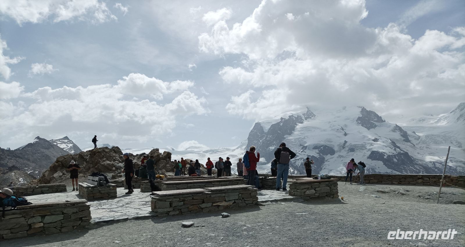Ein großer Teil der Gruppe möchte heute mit der Gornergratbahn (der höchsten Zahnradbahn Europas) fahren. Bereits gegen 9.00 Uhr fahren wir an den unterschiedlichen Stationen vorbei zu dem 3082 hohen Gornergrat. Welch ein überwältigendes Panorama. Bei bewölkten Himmel aber guter Sicht ,benötigen wir die Sonnenbrille, um die Schönheit der Berge genießen zu können.Die Gestaltung des weiteren Tages kann jeder selbst bestimmen. Viele von uns wollen wandern. Eine der beliebten Strecke beginnt an der Station Rotenboden bis zum Riffelsee. Der Weg dauert nur 5 Minuten, um zu sehen, wie sich das Matterhorn im See spiegelt. Der weitere Weg nach Riffelberg bietet immer wieder schöne Blicke in die Berge und auf die Gornergratbahn. Nach einem erlebnisreichen Tag treffen wir uns wieder im Hotel zu einem guten Abendessen.
