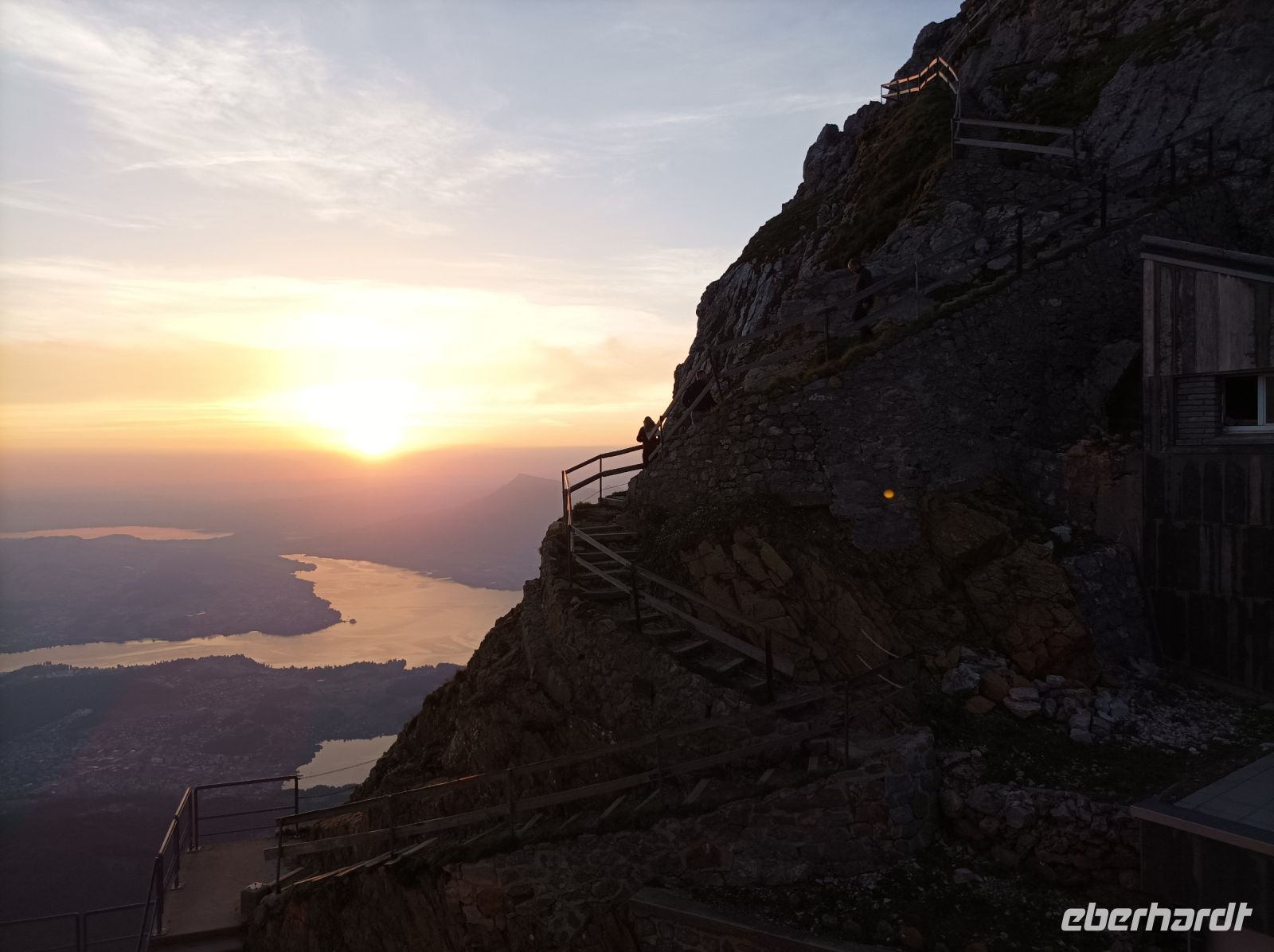 Der erste Blick heute früh gilt dem Wetter. Es lohnt sich auf den Esel zu steigen umde n Sonnenaufgang zu fotografieren. Nach dem Frühstück heißt es aber wieder aufbrechen. Heute fahren wir nicht mit der Zahnradbahn, sondern nehmen die Kabinenbahn(40 Personen) bis Fräkmüntegg. Weiter fahren wir mit der Gondel (4 Personen) nach Kriens. Von hier aus beginnen wir nun unsere Heimreise. Dabei haben wir noch eine interessante Strecke vor uns. Wir fahren an Luzern vorbei, durch Zug, über den Hirzelpass. Danach kommen wir an den Zürichsee und später fahren wir am Walensee vorbei und haben einen Blick auf die Churfirsten. Am Rasthof Rheintal planen wir noch eine Pause und können die letzten Franken ausgeben. Einen Blick nach Lichtenstein und auf Vaduz haben wir von hieraus auch noch. Kurze Zeit später verlassen wir unser Urlaubsland wieder am Grenzübergang Krissern/Hohenems und fahren durch den Pfändertunnel um wieder nach Deutschland zu kommen. In der Nähe von Ulm verabschieden wir bereits unsere ersten Gäste und nach einem Stau auf der A6 kommen wir gegen 22.00 Uhr wieder in Dresden an.