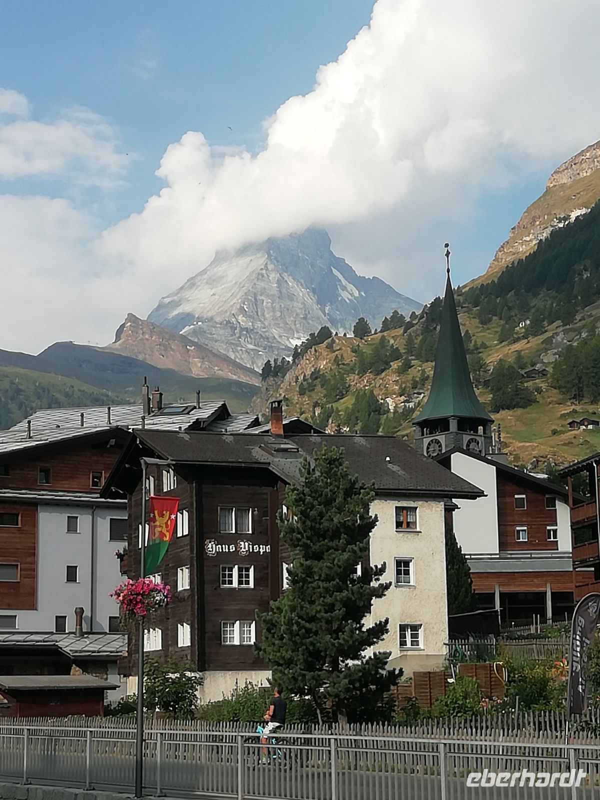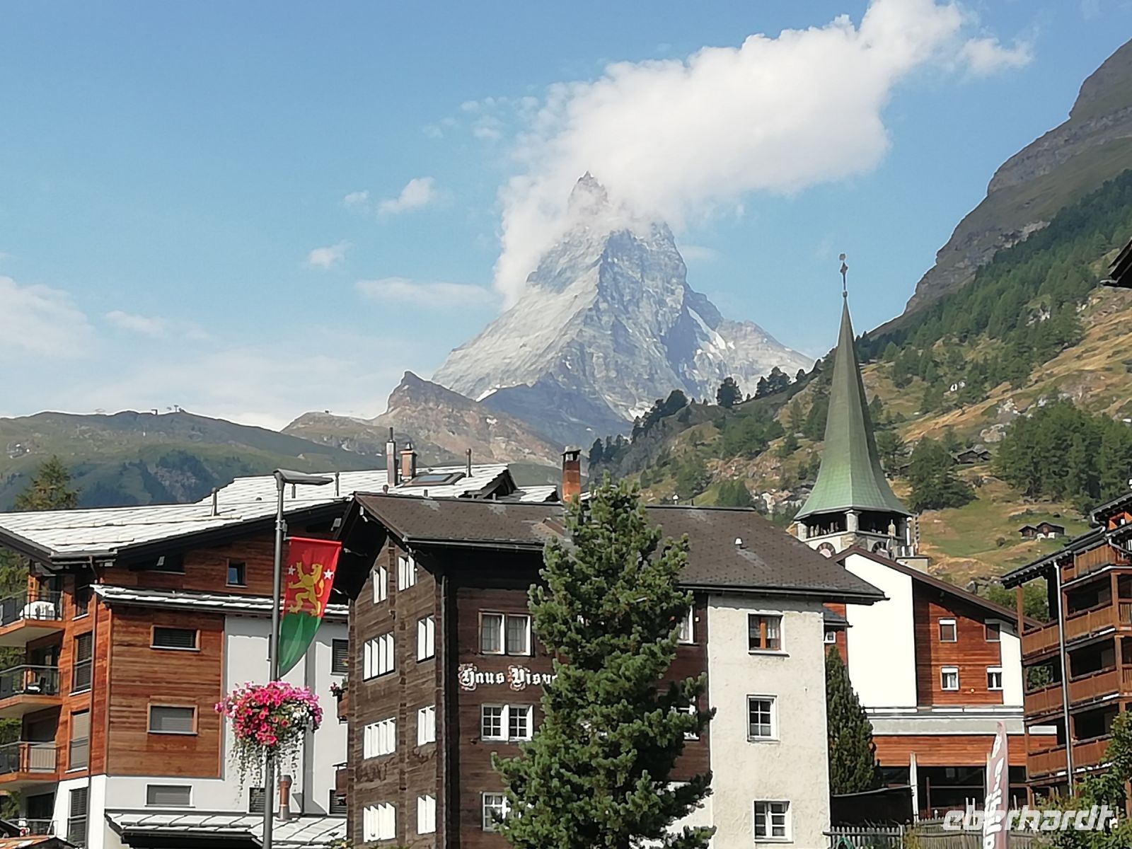 Nachmittags bleibt noch Zeit für einen Bummel, denn Zermatt hat ja noch mehr zu bieten. So besuchen einige Gäste das Matterhornmuseum, das zu einem Rundgang durch die Geschichte des Ortes einlädt und eindrucksvoll die Erstbesteigung des Matterhorns schildert. Andere besichtigen den Bergsteigerfriedhof, schauen sich den Murmeltierbrunnen an, bestaunen die alten Holzhäuser, machen einen Einkaufsbummel oder trinken in einem der zahlreichen Restaurants Kaffee. So war auch dieser Tag wieder erlebnisreich und beim Abendessen gibt es viel zu erzählen. Alle sind sich einig. Es war ein sehr schöner Tag!