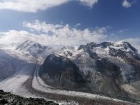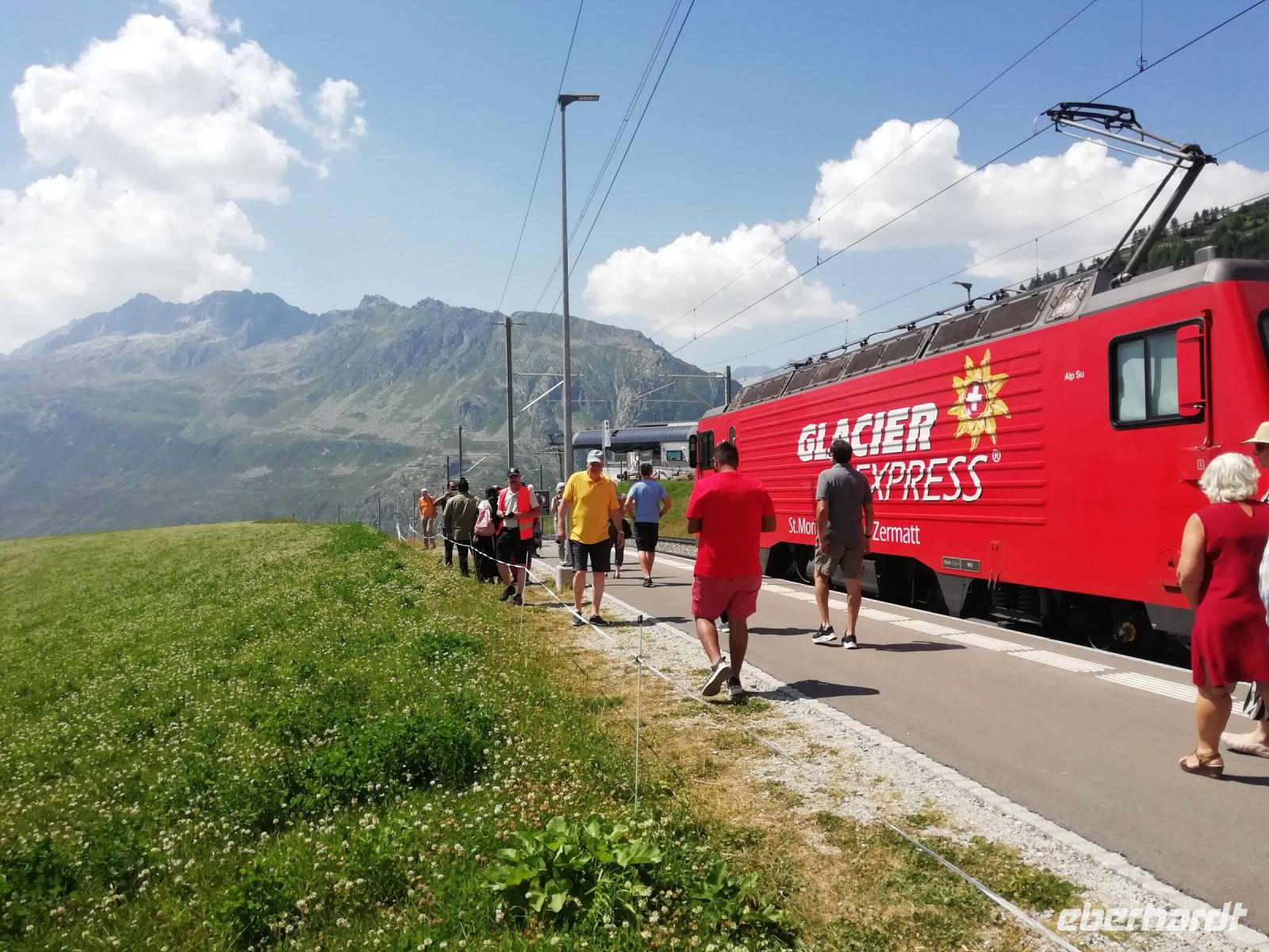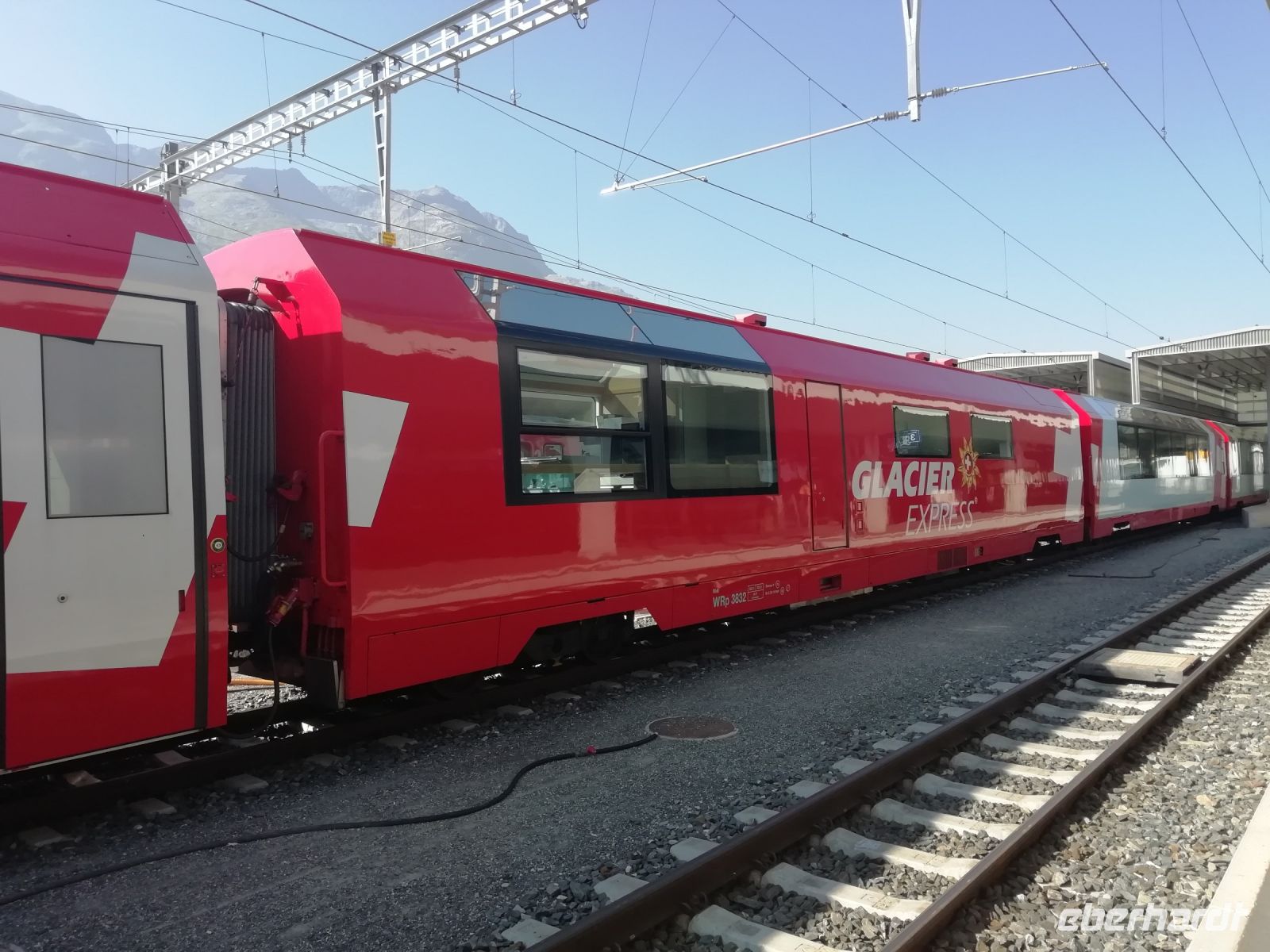 Heute freuen wir uns auf einen weiteren Höhepunkt der Reise: die Fahrt mit dem Glacier-Express von St. Moritz nach Zermatt. Wieder ist ein Panoramawagen der 1. Klasse für uns reserviert. Vor uns liegt eine über achtstündige Fahrt durch landschaftlich schöne Abschnitte der Schweiz. Dabei werden wir über 2000 Meter Höhenunterschied überwinden, was teilweise nur mit Hilfe von Zahnrädern möglich ist. Höhepunkte des ersten Abschnitts bis Disentis sind u.a. das Landwasserviadukt und die Rheinschlucht. Zum Mittagessen wird uns Züricher Geschnetzeltes serviert, so dass wir gut gestärkt den Anstieg zum 2033 m hohen Oberalppass in Angriff nehmen können. Nach dem Erreichen der Passhöhe geht es in weiten Schleifen den Steilhang hinunter in den bekannten Ferienort Andermatt und weiter durch das Urserental und durch den Furkatunnel. Nun setzen wir die Fahrt durch das Goms und das Rhonetal fort, biegen in Visp ab und erreichen 18.10 Uhr Zermatt. Während der gesamten Bahnreise gab es nicht nur immer wieder wunderschöne Ausblicke und zahlreiche Fotomotive, sondern auch interessante Informationen über Kopfhörer zur Strecke. Dabei sind wir über 291 Viadukte und durch 91 Tunnel gefahren.