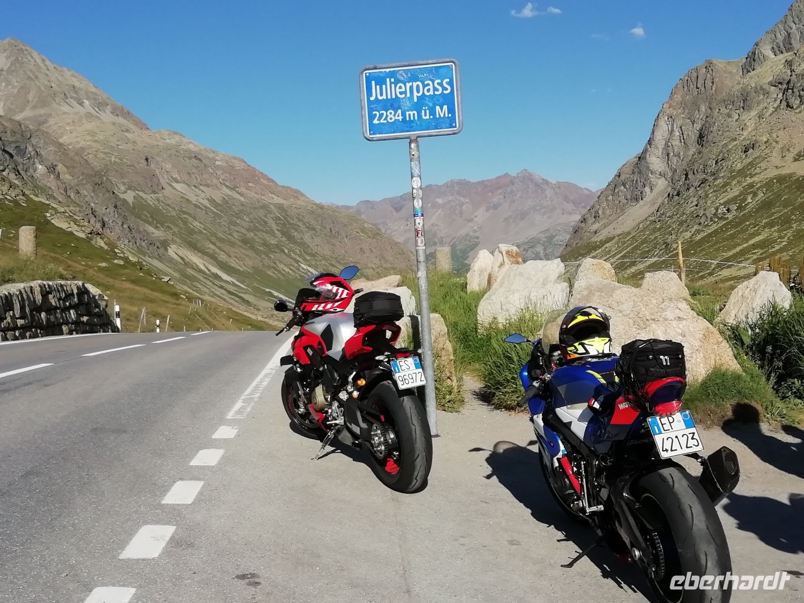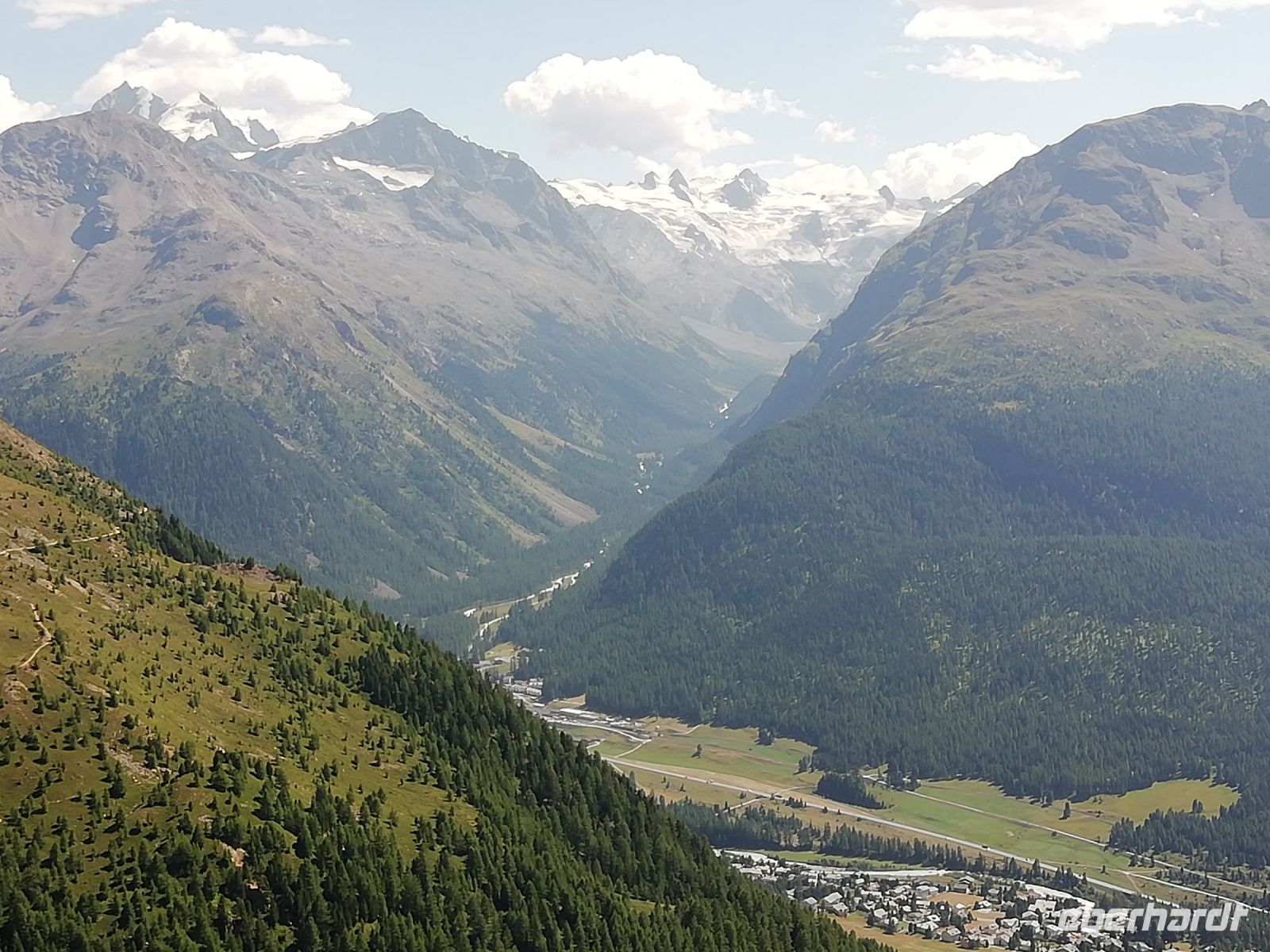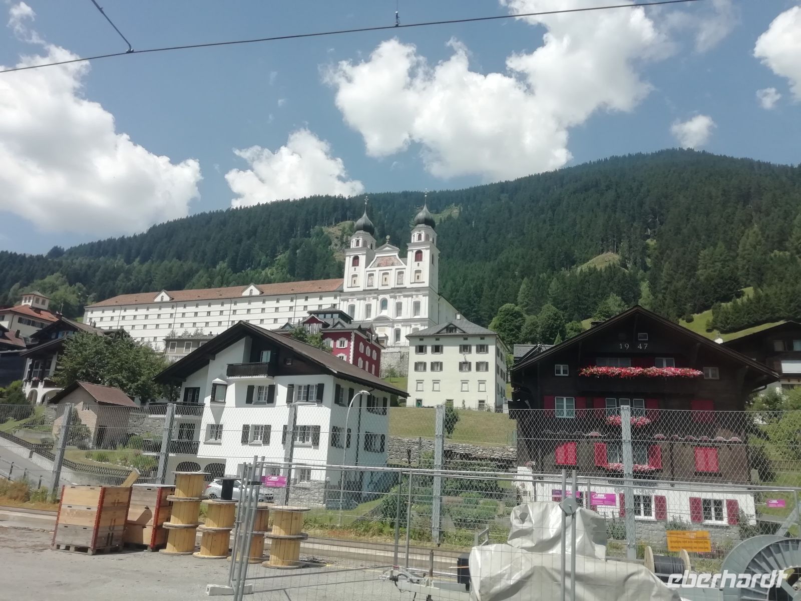 Pünktlich 6 Uhr am Morgen starten die ersten Eberhardt-Reisegäste im 5-Sterne-Bus in Dresden zur Premium-Reise in die Schweiz. In Kesselsdorf, Chemnitz und Zwickau steigen weitere Gäste zu. Trotz Ferienbeginn in Sachsen kommen wir gut voran. Gegen Mittag sind wir in Ansbach. Mit 20 Gästen ist unsere Reisegruppe hier nun komplett. Es geht vorbei an Nürnberg und Ulm Richtung Bodensee. Durch den Pfändertunnel erreichen wir Österreich und fahren bald danach am Grenzübergang Diepoldsau in die Schweiz. Hier machen wir eine letzte Pause an der Raststätte „Heidiland“. Wir kommen durch Chur, Thusis und Tiefencastel. Dann „klettern“ wir hinauf zum Julierpass. Hier legen wir einen Fotostopp ein, um das Passschild zu fotografieren. Nun trennen uns nur noch wenige Kilometer von Sils-Maria, wo sich unser 4-Sterne-Hotel „Edelweiß“ befindet. Es wurde bereits 1876 gegründet und ist noch ein Hotel der „guten alten Schule“. Schnell sind die Zimmer bezogen. Diese präsentieren sich im typisch Bündner Stil mit Arvenholzmöbeln. Als Willkommensgruß erhalten wir eine kleine Engadiner Nusstorte. Dann erwartet man uns zum 5-Gang-Menü im benachbarten Hotel „Post“. Bei Vorspeise, Suppe, Hauptgang und Dessert können wir sogar noch aus zwei verschiedenen Angeboten wählen.