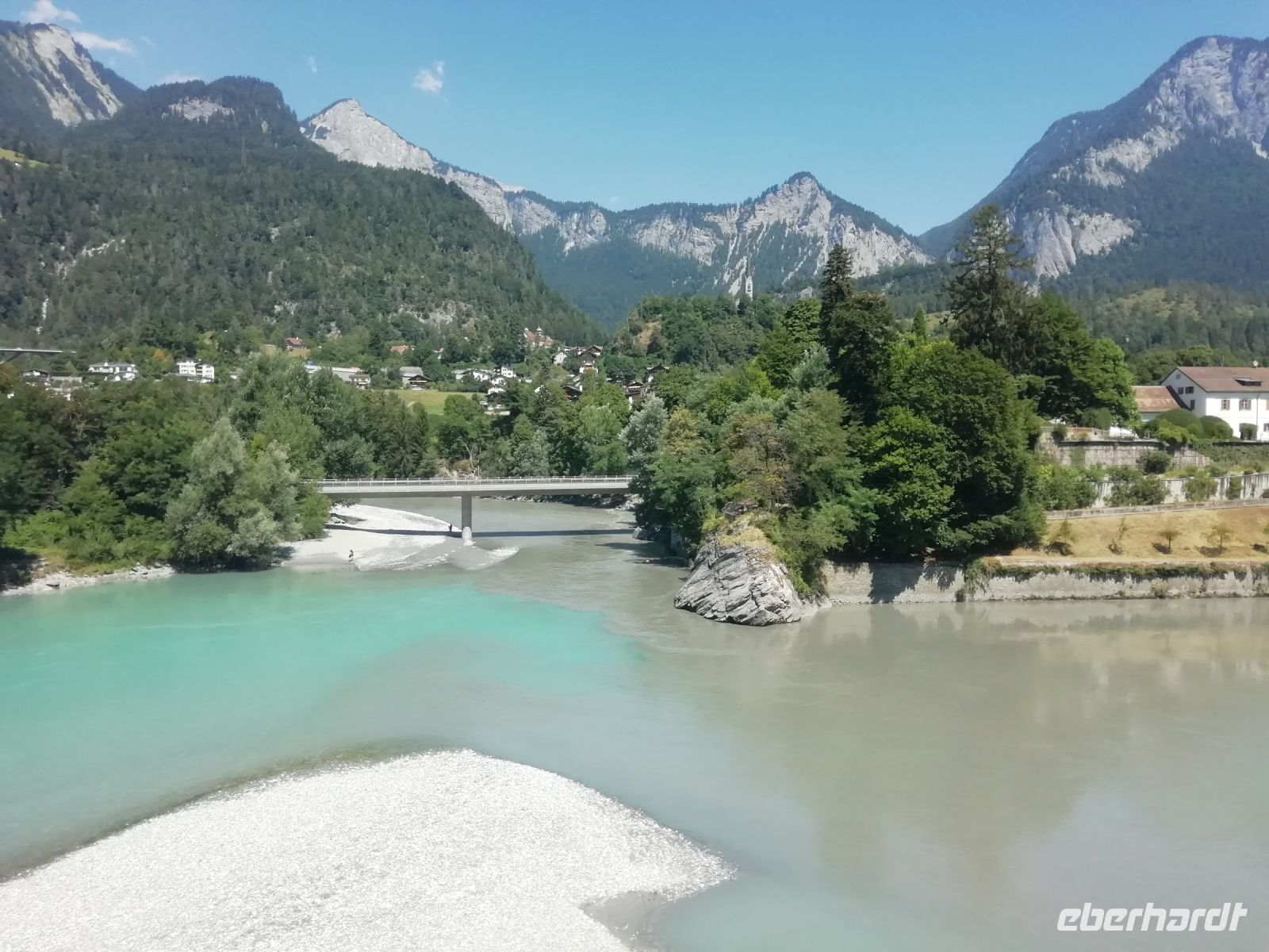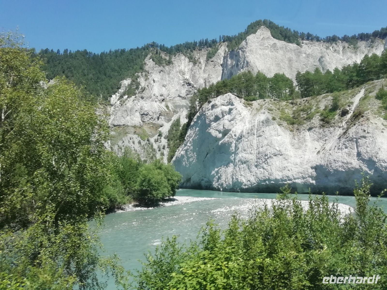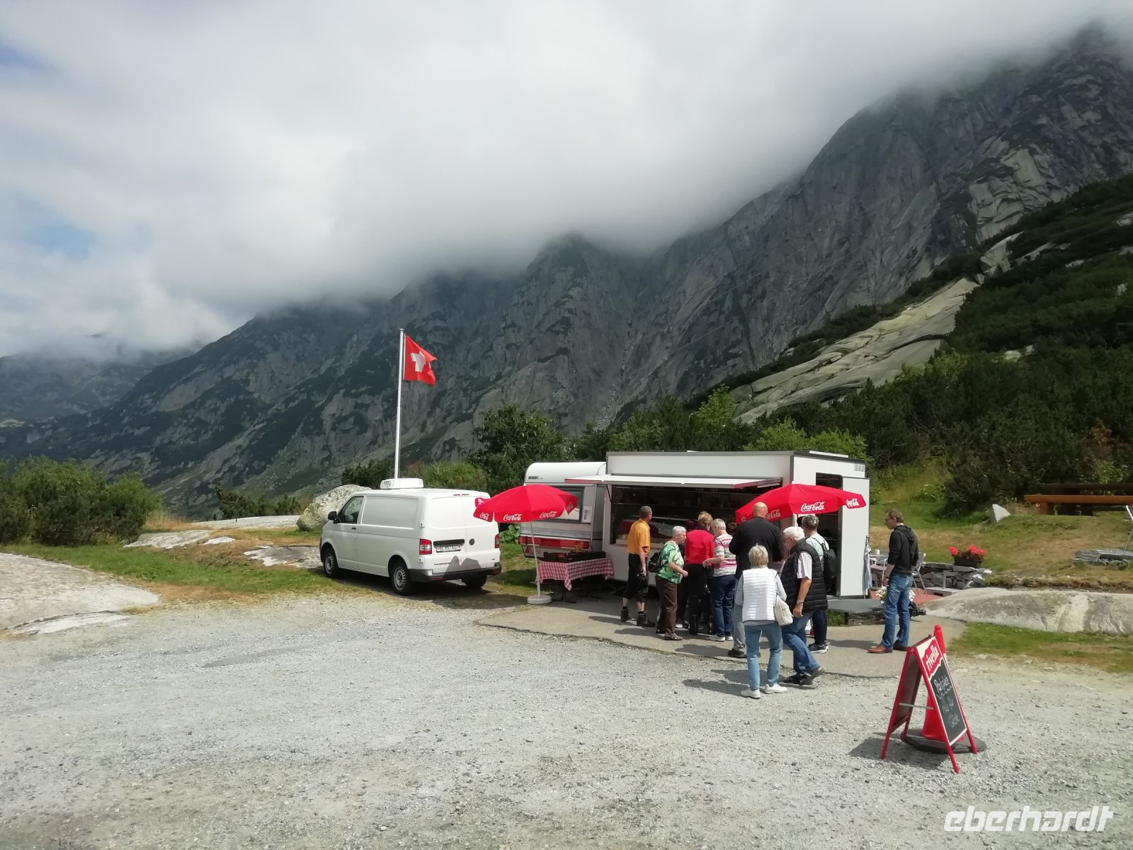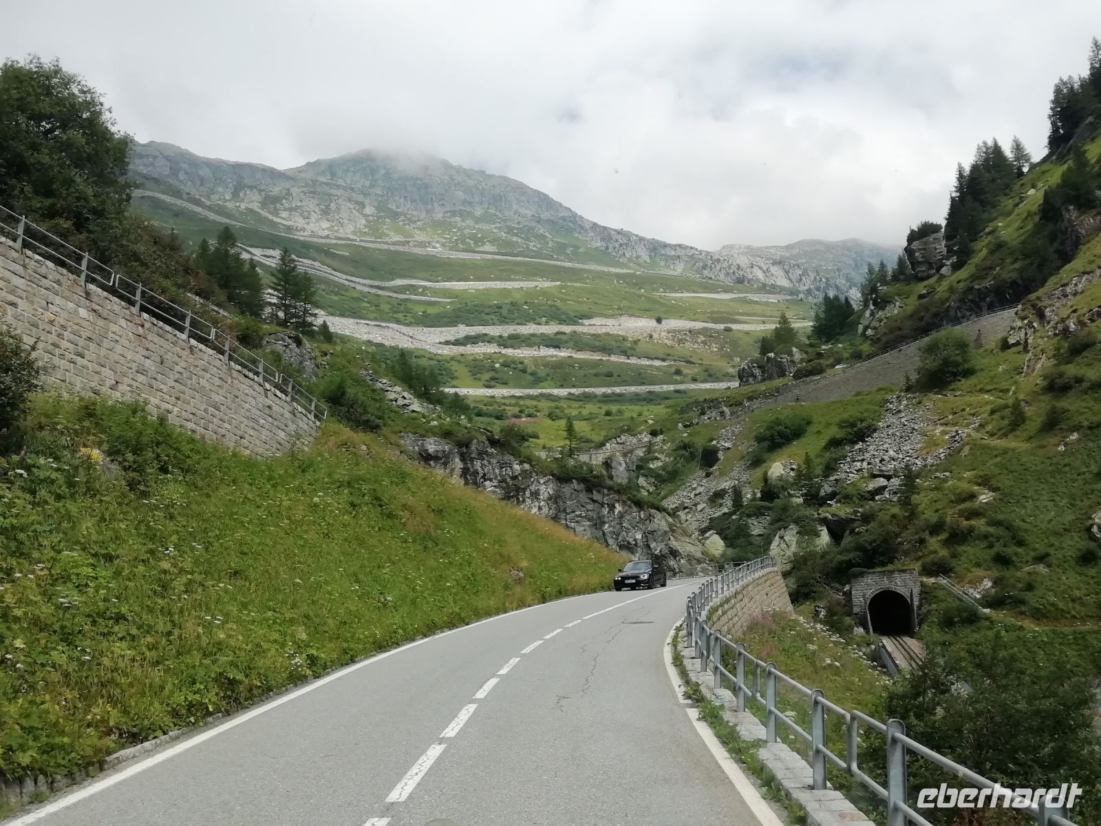 Pünktlich 6 Uhr am Morgen starten die ersten Eberhardt-Reisegäste im 5-Sterne-Bus in Dresden zur Premium-Reise in die Schweiz. In Kesselsdorf, Chemnitz und Zwickau steigen weitere Gäste zu. Trotz Ferienbeginn in Sachsen kommen wir gut voran. Gegen Mittag sind wir in Ansbach. Mit 20 Gästen ist unsere Reisegruppe hier nun komplett. Es geht vorbei an Nürnberg und Ulm Richtung Bodensee. Durch den Pfändertunnel erreichen wir Österreich und fahren bald danach am Grenzübergang Diepoldsau in die Schweiz. Hier machen wir eine letzte Pause an der Raststätte „Heidiland“. Wir kommen durch Chur, Thusis und Tiefencastel. Dann „klettern“ wir hinauf zum Julierpass. Hier legen wir einen Fotostopp ein, um das Passschild zu fotografieren. Nun trennen uns nur noch wenige Kilometer von Sils-Maria, wo sich unser 4-Sterne-Hotel „Edelweiß“ befindet. Es wurde bereits 1876 gegründet und ist noch ein Hotel der „guten alten Schule“. Schnell sind die Zimmer bezogen. Diese präsentieren sich im typisch Bündner Stil mit Arvenholzmöbeln. Als Willkommensgruß erhalten wir eine kleine Engadiner Nusstorte. Dann erwartet man uns zum 5-Gang-Menü im benachbarten Hotel „Post“. Bei Vorspeise, Suppe, Hauptgang und Dessert können wir sogar noch aus zwei verschiedenen Angeboten wählen.