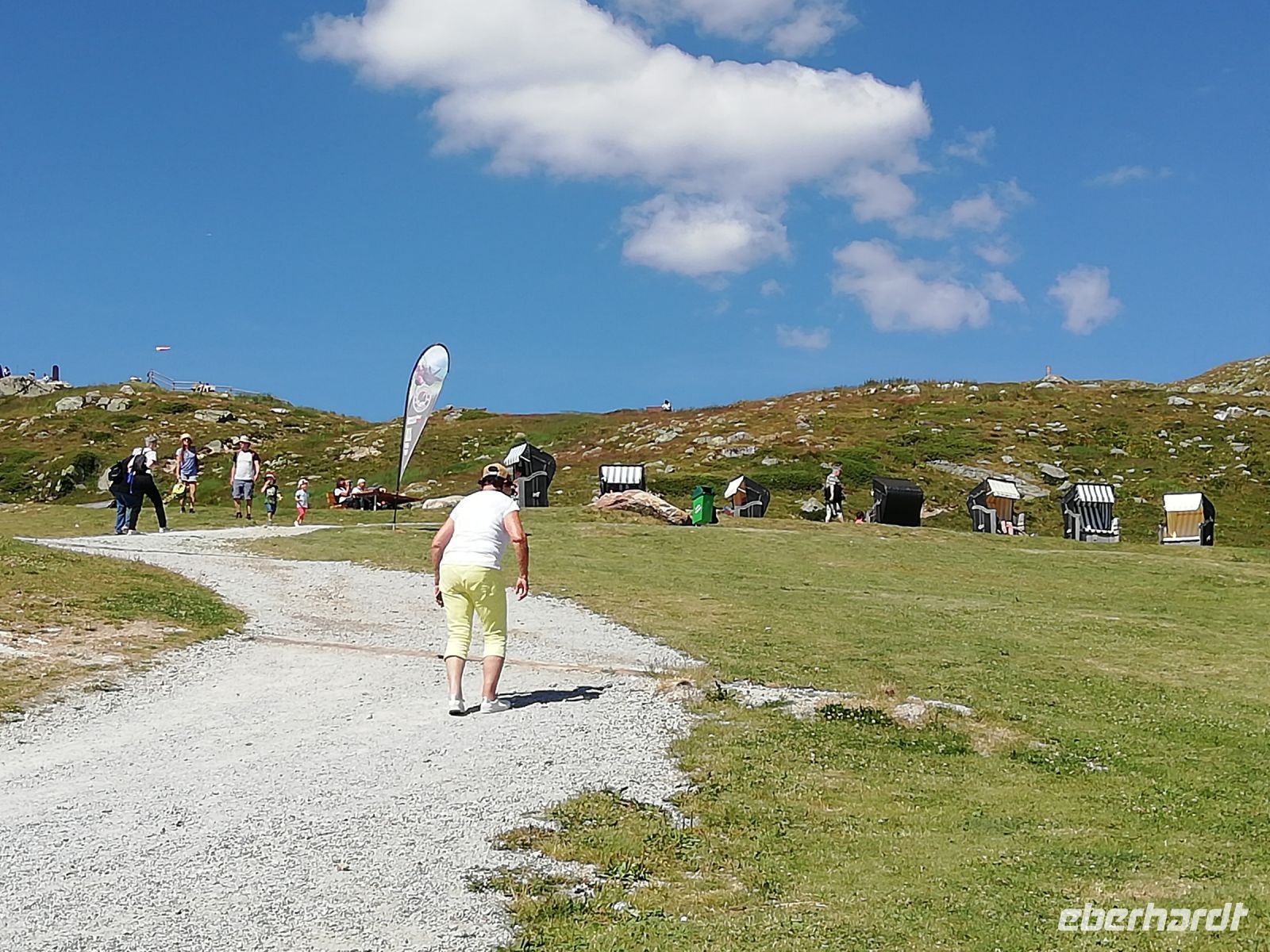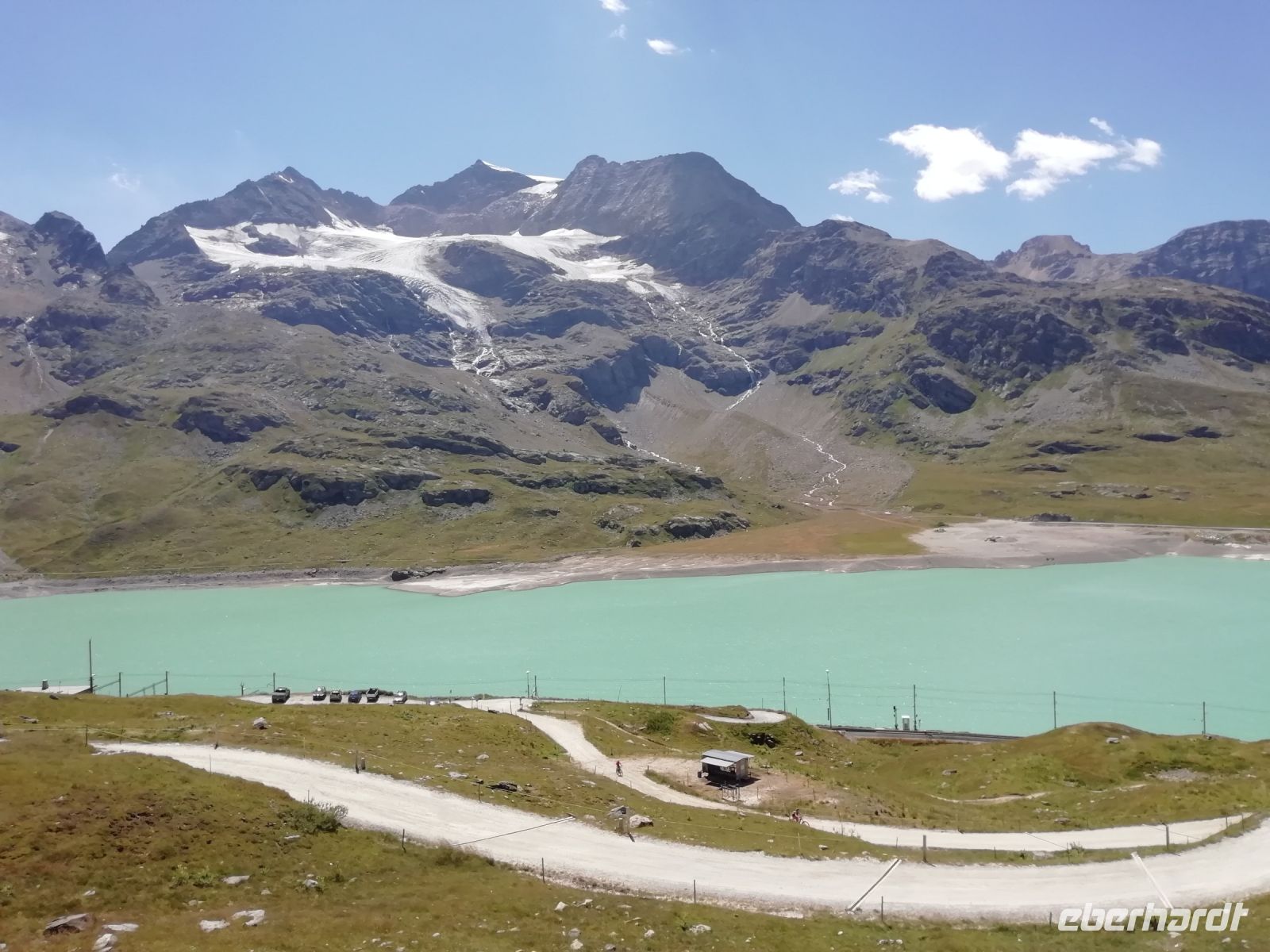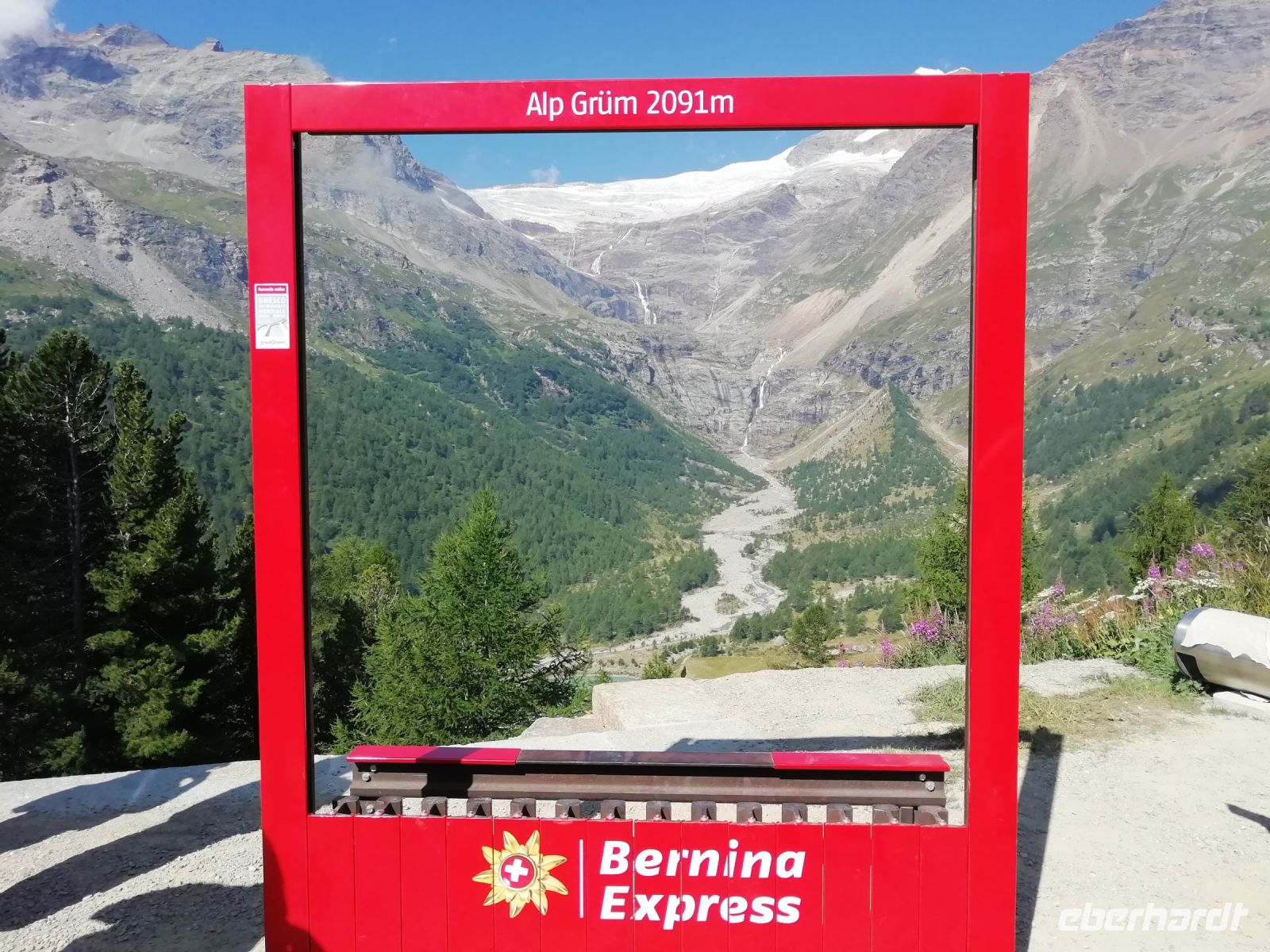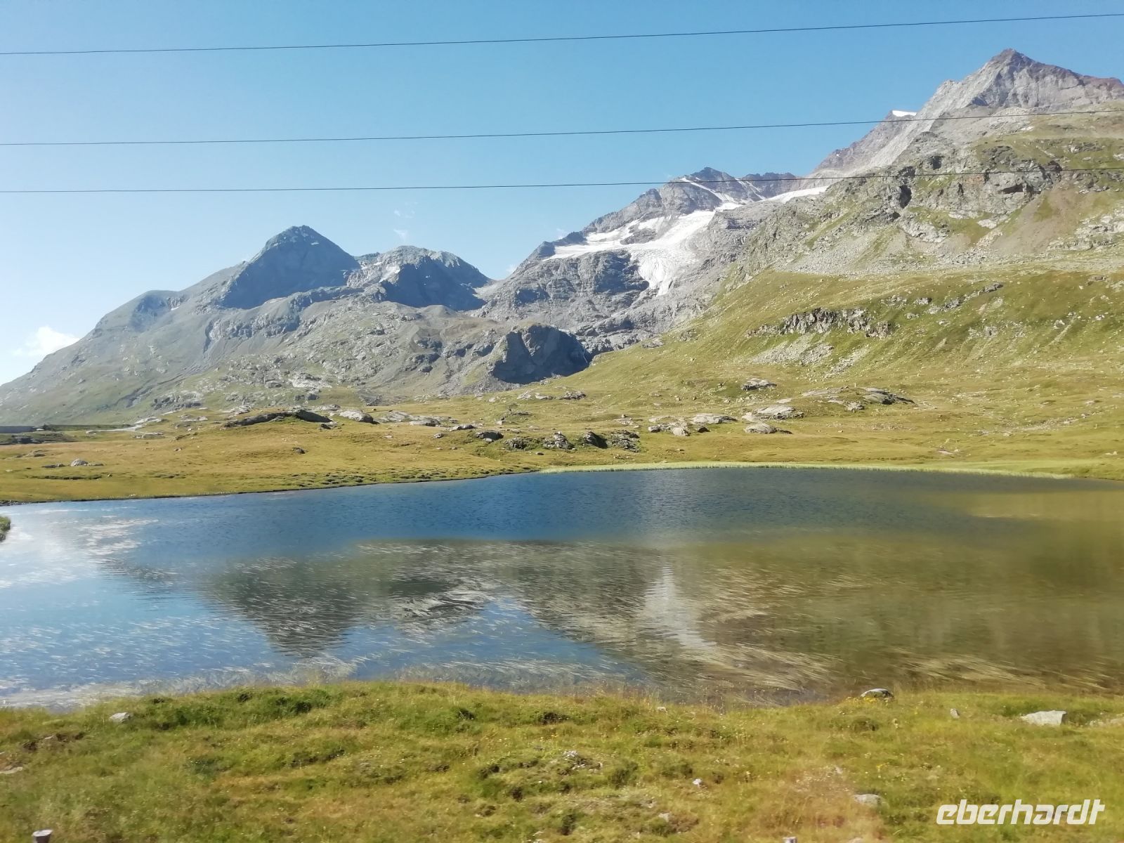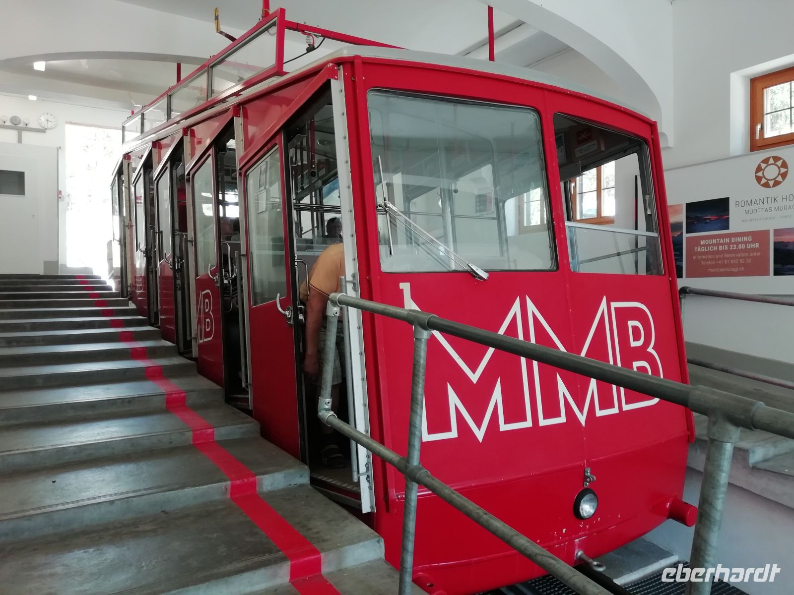 Auch heute geht es mit dem Bus und dem fröhlichen „Guten-Morgen-Lied“ nach dem Frühstück wieder nach St. Moritz. Es steht unsere erste Bahnfahrt auf dem Programm. Im Bernina-Express können wir unsere reservierten Plätze im Panoramawagen der 1. Klasse einnehmen. Pünktlich auf die Minute fährt der Zug ab. Die Berninastrecke gilt als Meisterwerk der Ingenieurbaukunst. Über Pontresina geht es mit schönem Blick auf den Morteratschgletscher hinauf zur Station Ospizio Bernina. Mit 2253 m.ü.M. ist es die höchstgelegene Station auf dem Netz der Rhätischen Bahn. Wir erhalten als Andenken an diese Fahrt ein besonders Souvenir: einen kleinen Bernina-Waggon mit süßer Füllung. Vorbei am Aussichtspunkt Alp Grüm, wo wir für einen Fotostopp aussteigen, fahren wir weiter durch das Puschlav, drehen mit dem Zug eine Schleife auf dem Kreisviadukt von Brusio und erreichen schließlich Tirano in Italien. Hier empfangen uns fast tropische Temperaturen. Deshalb lassen sich die meisten Gäste erstmal ein Eis schmecken. Einige laufen zur Basilika Madonna di Tirano mit den reich verzierten Fresken und der aus Kiefernholz geschnitzten Orgel, andere machen einen Spaziergang durch die Altstadt. Dann fährt uns Frank mit dem Bus wieder zurück. Dabei können wir vieles, was wir vom Zug aus gesehen haben, nun aus einer anderen Perspektive betrachten. Am Kreisviadukt von Brusio, auf dem Berninapass und am Morteratschgletscher machen wir einen Fotostopp. Da wir mit der Gästekarte einige Bergbahnen kostenlos nutzen können, halten wir an der Talstation vom Punt Muragl an. Mit der Standseilbahn fahren wir hinauf auf eine Höhe von 2454 m. Hier unternehmen wir einen kleinen Spaziergang oder sonnen uns in den Strandkörben.