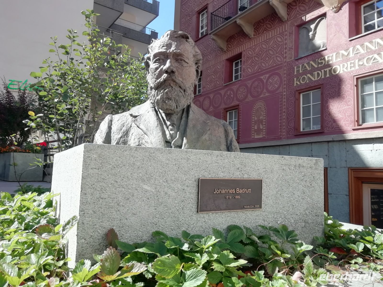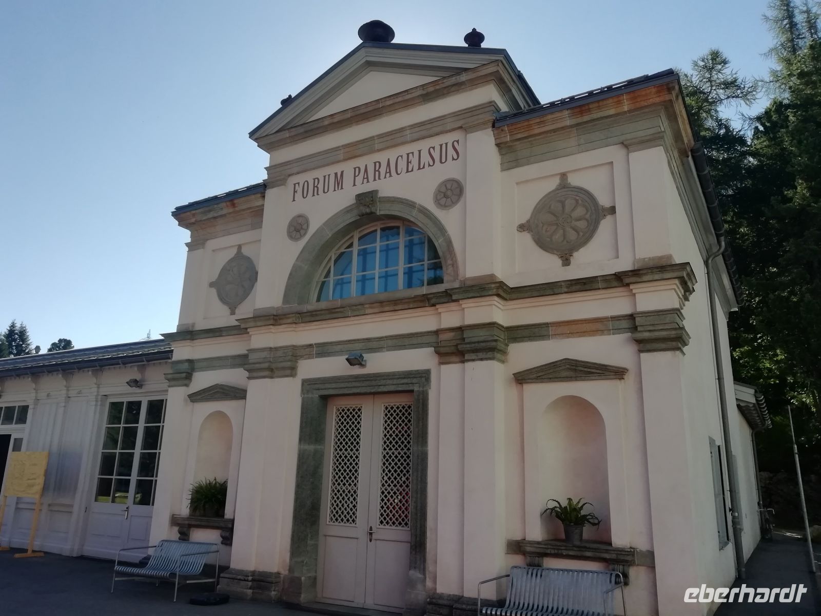 Unser heutiges Ziel ist St. Moritz, einer der berühmtesten Kurorte der Alpen und nur 15 Fahrminuten von Sils entfernt. Mit Stadtführerin Susi treffen wir uns am Bahnhof. Zunächst fahren wir nach St. Moritz Bad. Hier liegt der Ursprung der Berühmtheit als Kurort. Wir erfahren im Forum Paracelsus viel über die Anfänge und kosten natürlich auch das gesunde Wasser der Heilquellen. Es soll ja u.a. den Magen und die Gedärme stärken, bei Kopfschmerzen, Migräne und Sausen in den Ohren helfen, das Blut roter machen und die Neigung zu Blähungen mindern.